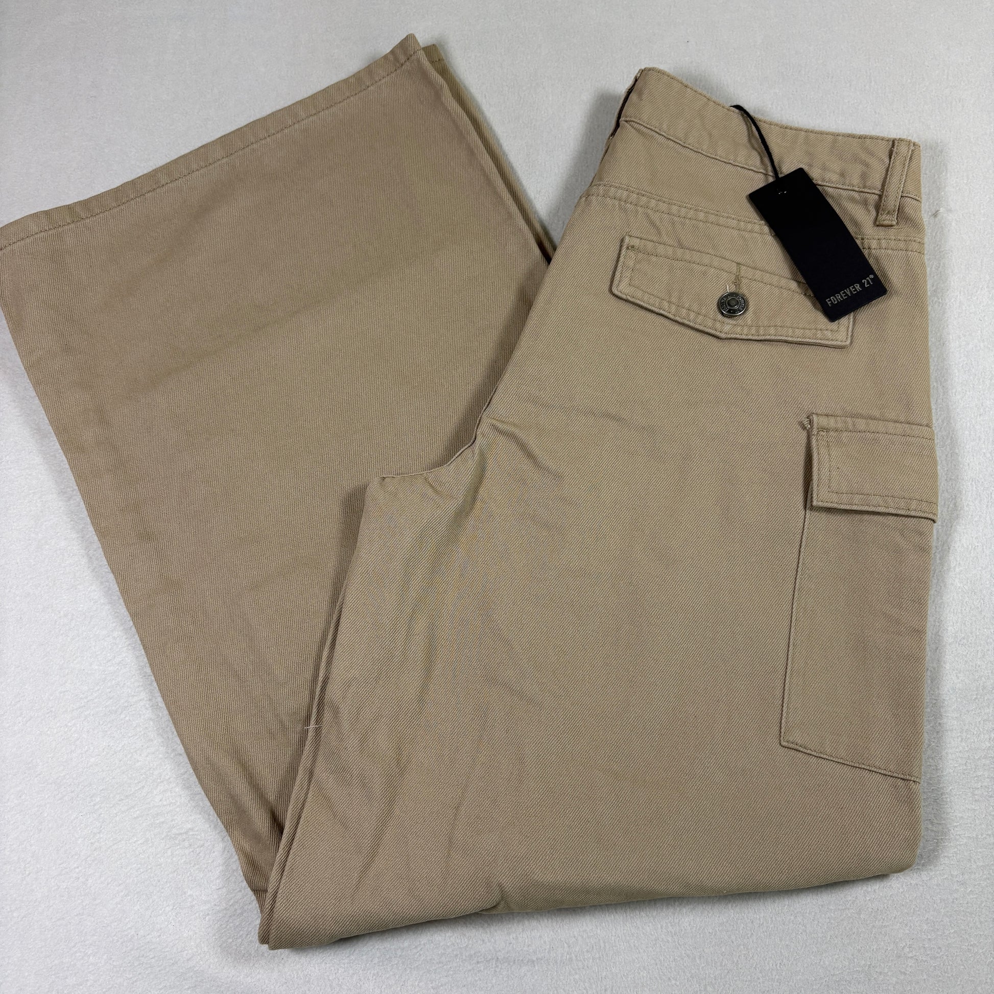Forever 21 Womens Tan Cargo Pants Size Large NWT Baggy Y2K Utility Grunge