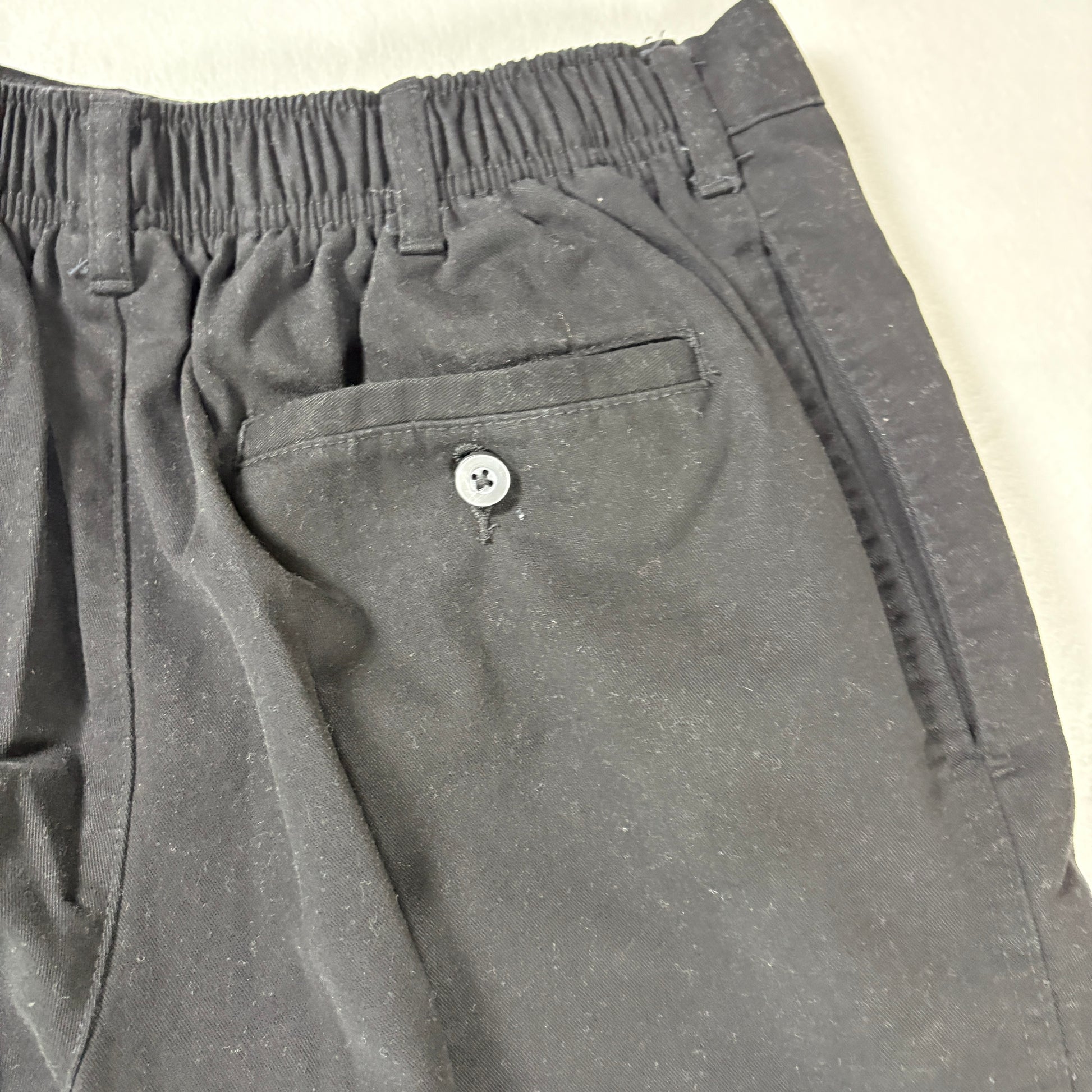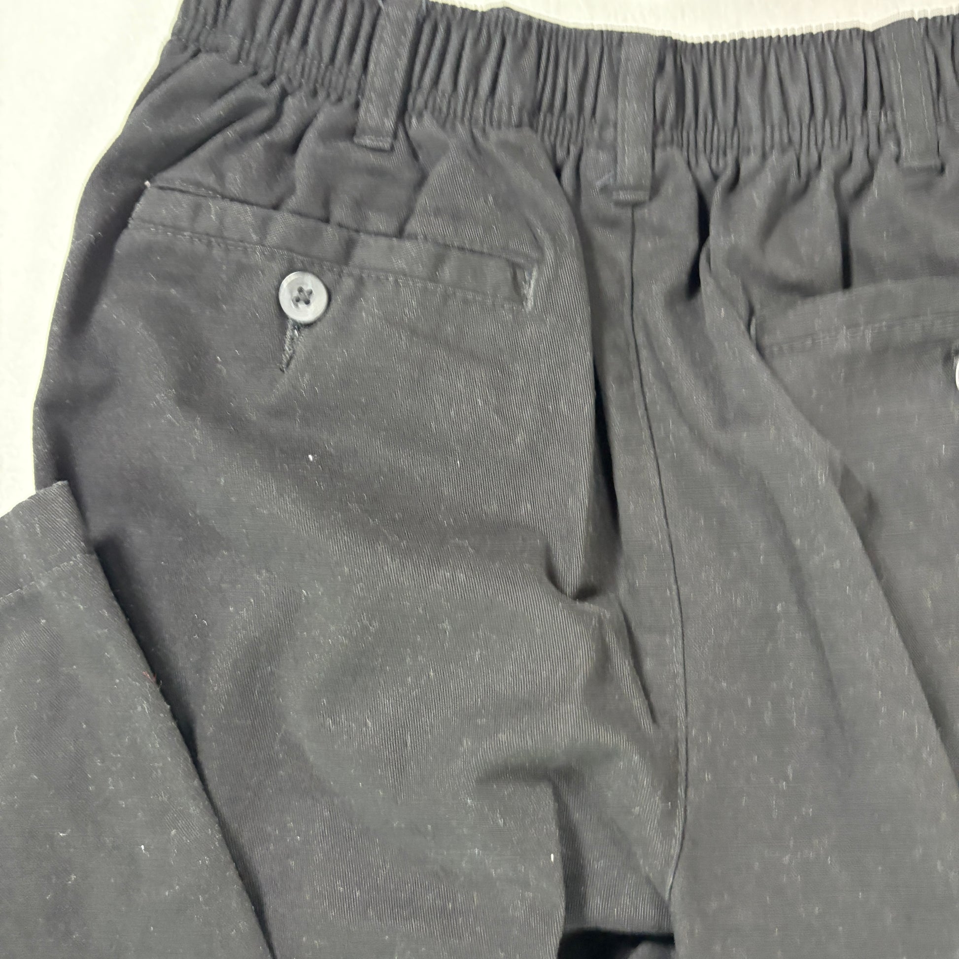 Stay comfortable and stylish with these George men’s pants in classic black. Designed with a baggy relaxed fit, flat front, and versatile straight leg, they’re perfect for work, casual wear, or everyday use. Lightweight cotton-poly blend fabric offers durability with comfort, and the elastic waistband at the back adds flexibility for all-day wear. Tagged size 32x30.