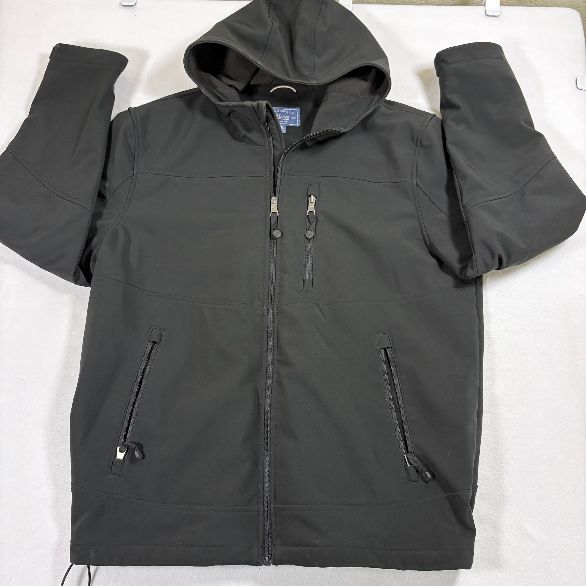 GH Bass Mens Softshell Jacket XL Black Hooded Zip Up Windbreaker Outdoor Hiking