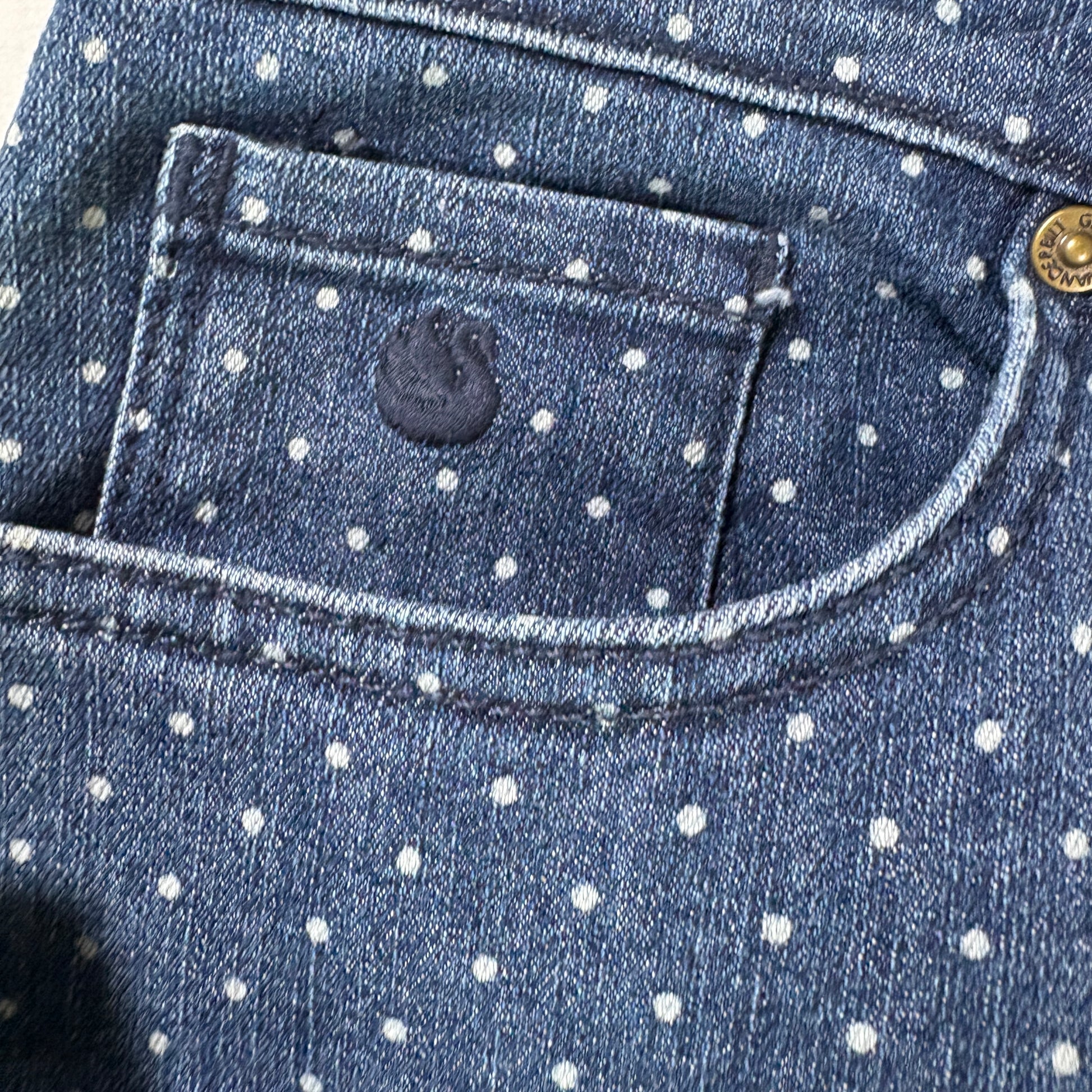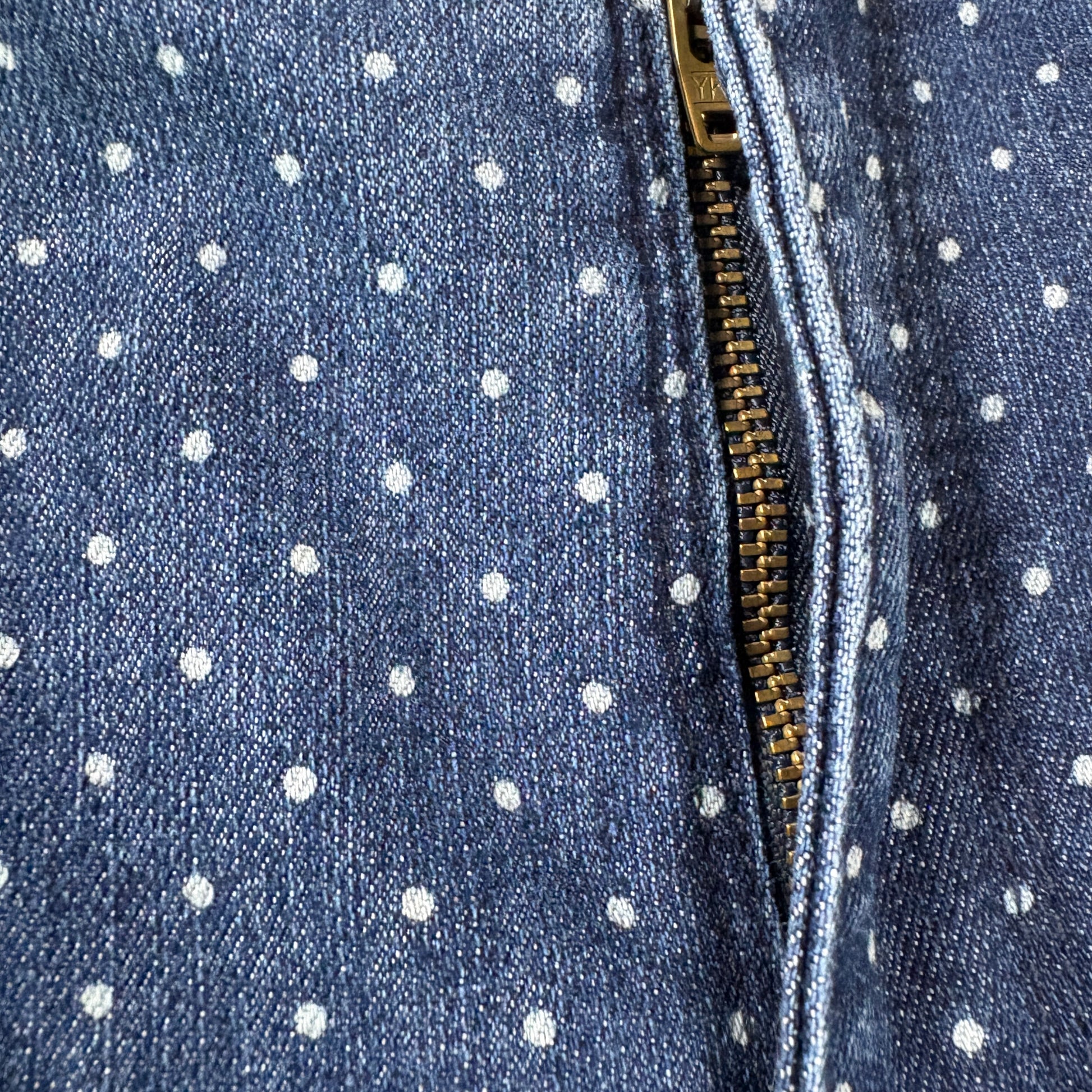 ✓ Blue denim with polka dot print