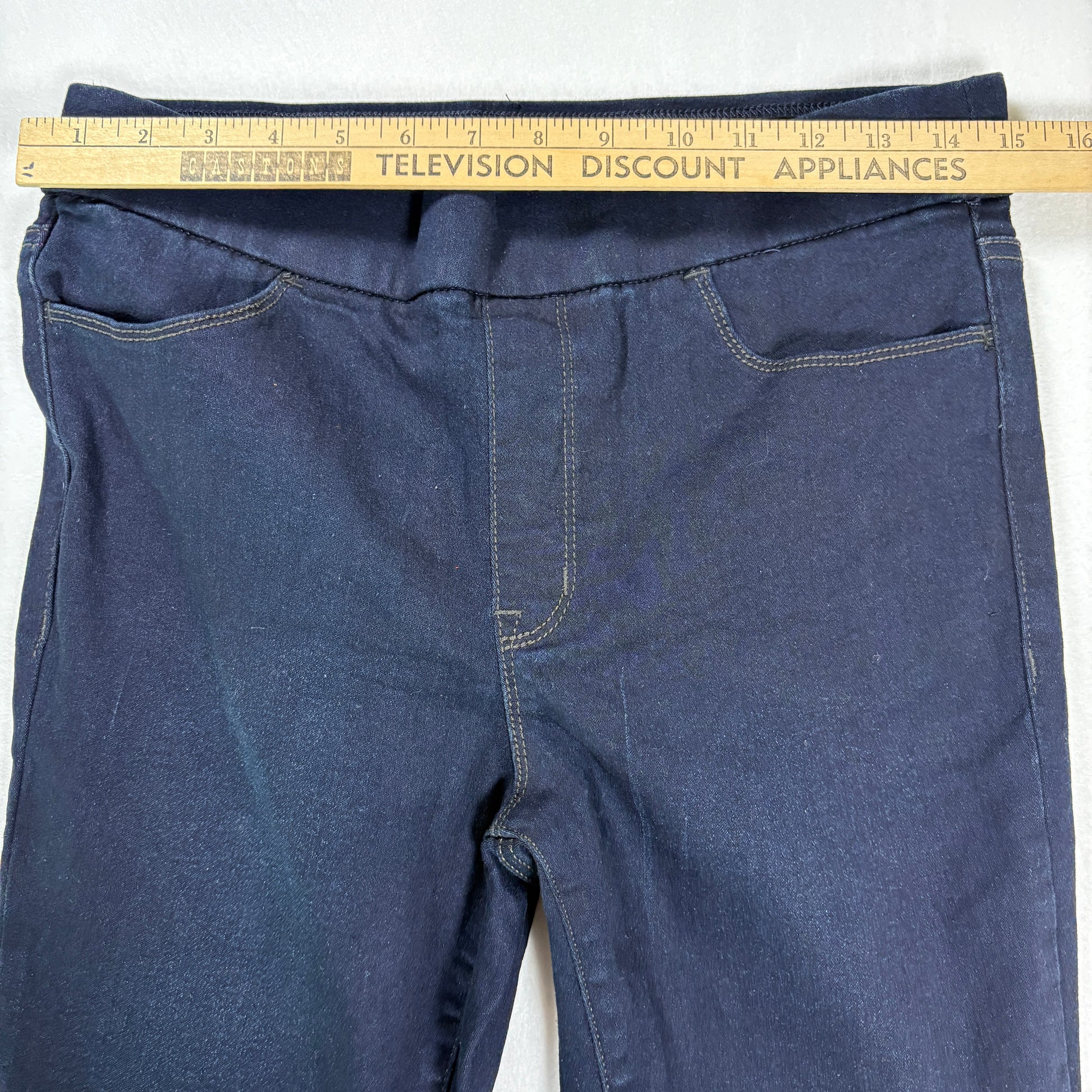 These Gloria Vanderbilt jegging-style jeans are designed with comfort and style in mind. Featuring a flattering All-Around Slimming Effect waistband, dark wash finish, and pull-on style, they combine the look of jeans with the ease of leggings. Perfect for dressing up or down, these versatile jeggings are a closet essential. Tagged women’s size 6.