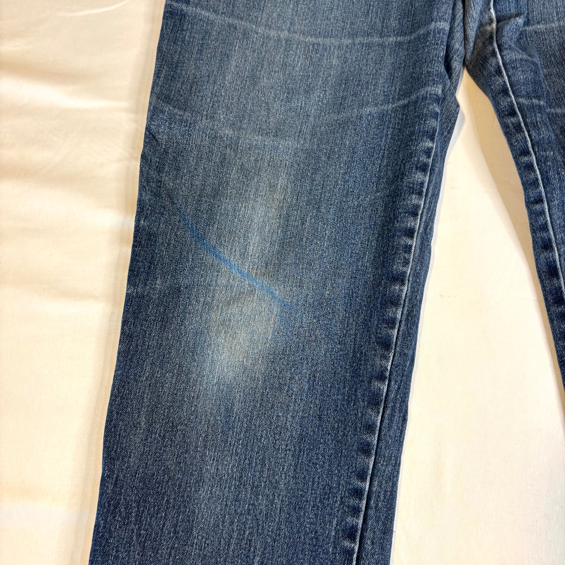 These blue denim jeans feature a flattering mid-rise waist and a comfortable straight leg cut, perfect for everyday wear.