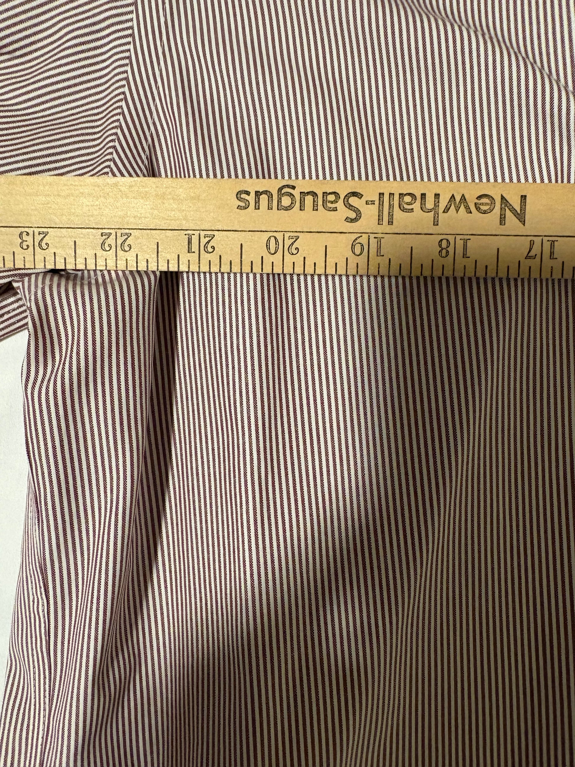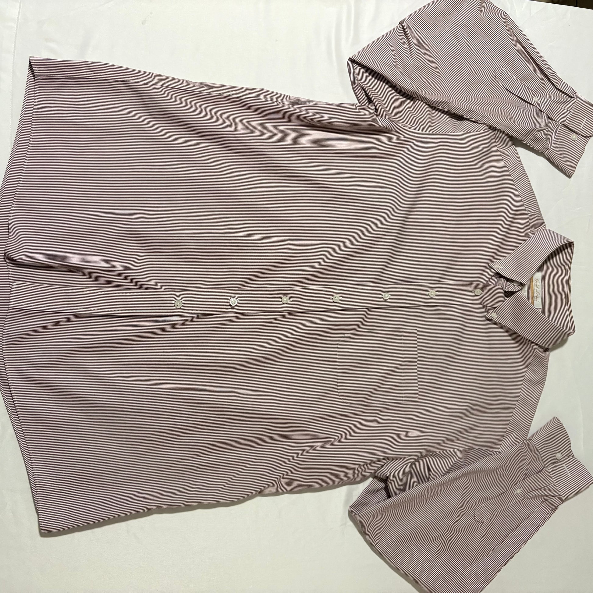 Upgrade your wardrobe with this Gold Label Roundtree & Yorke men’s dress shirt, size 17 neck with 35-inch sleeves. Crafted from 100% cotton pinpoint fabric, this shirt offers a premium feel with the convenience of Non-Iron EZ Wash technology—keeping you looking polished without the hassle of ironing. The fine maroon and white stripe pattern provides a timeless, versatile look that transitions easily from business meetings to evening events.