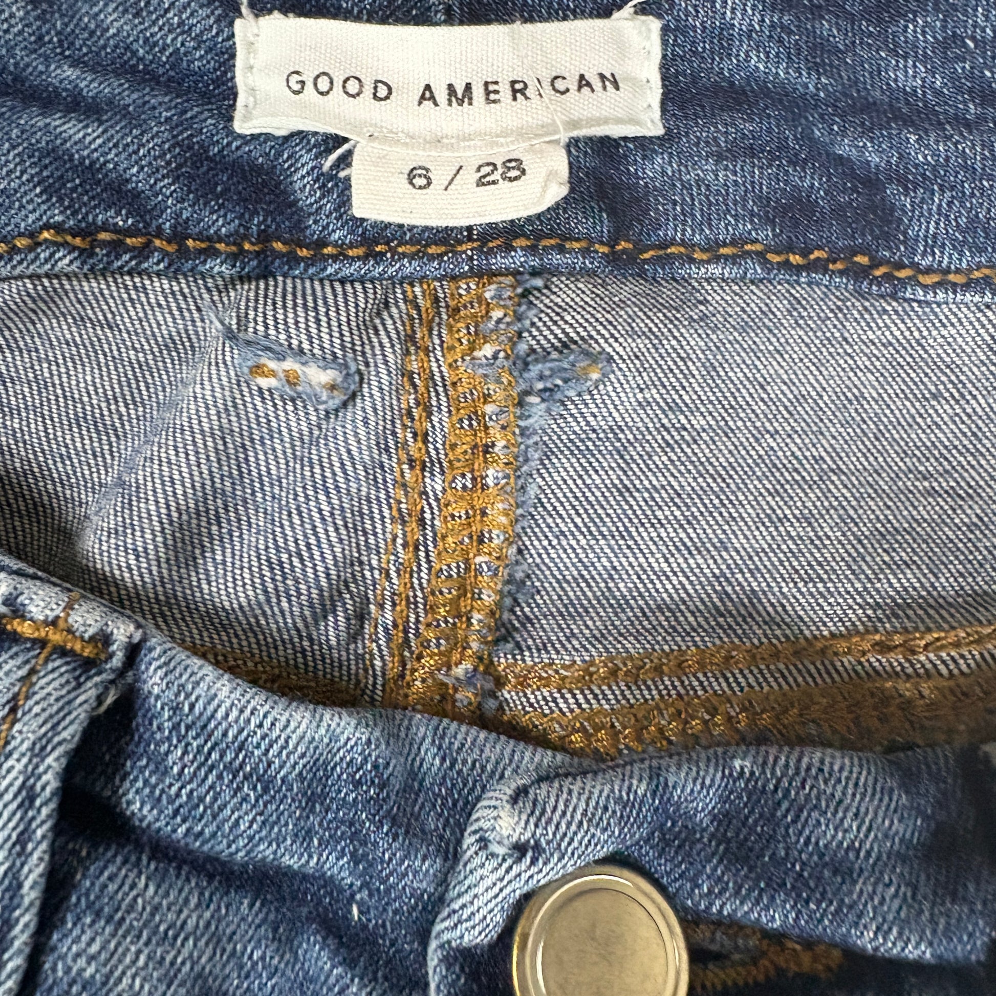 Good American jeans womens 6 28, bootcut stretch denim, blue high rise jeans, premium everyday pants