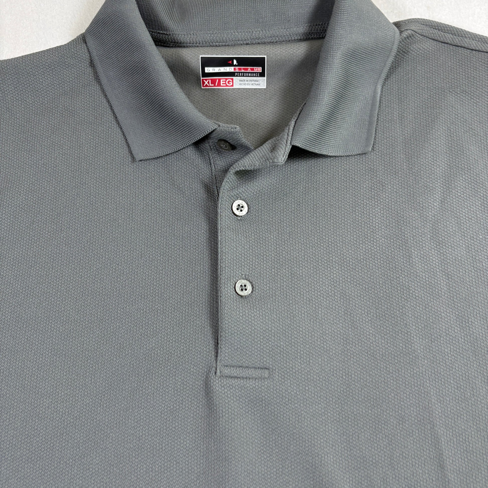 grand slam polo, mens xl golf shirt, performance polo gray, activewear top, golf polo moisture wicking, short sleeve polo, casual menswear, athletic polo shirt