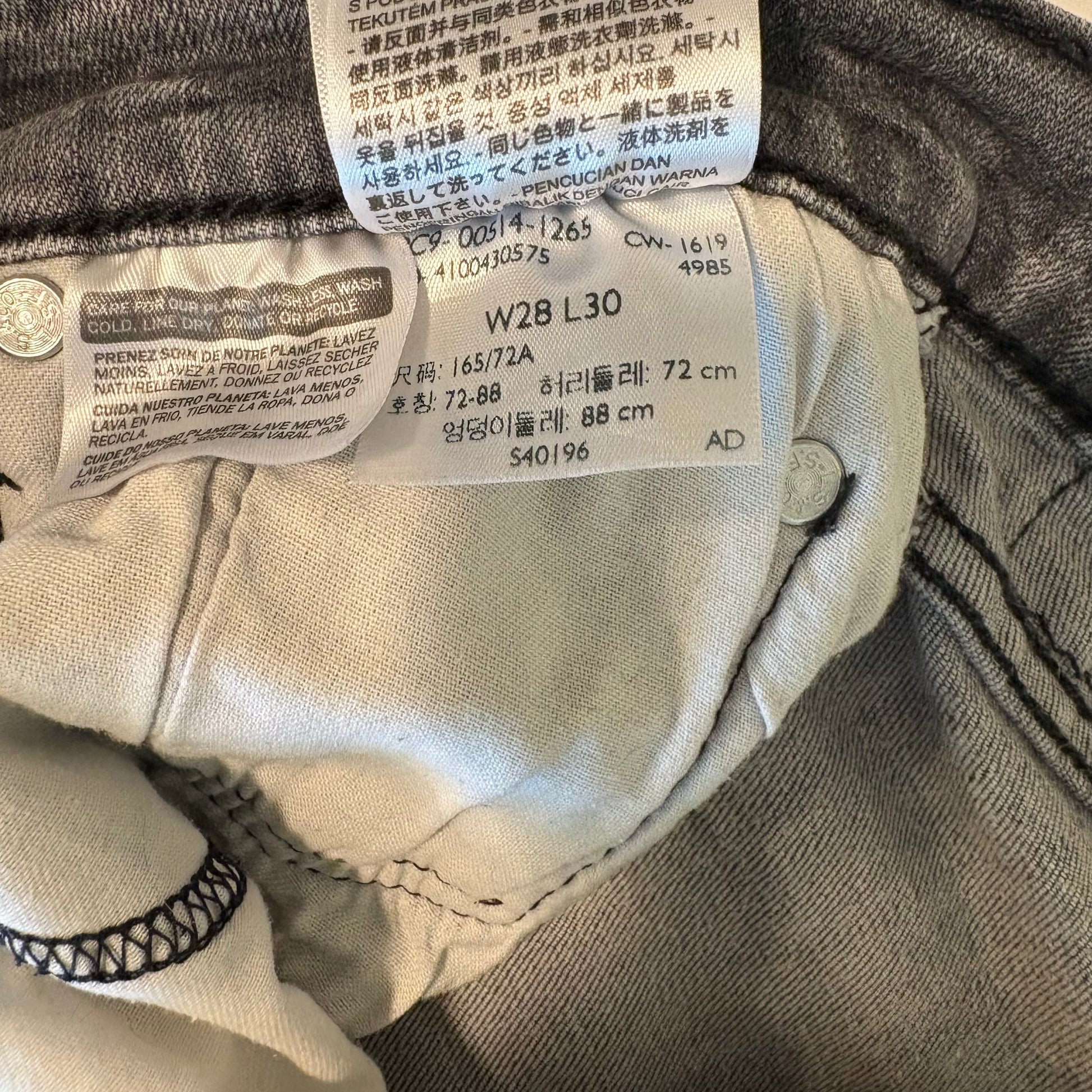 Levi's Mens Jeans W28 L30 Gray Slim Fit Denim Distressed Wash Tapered Leg