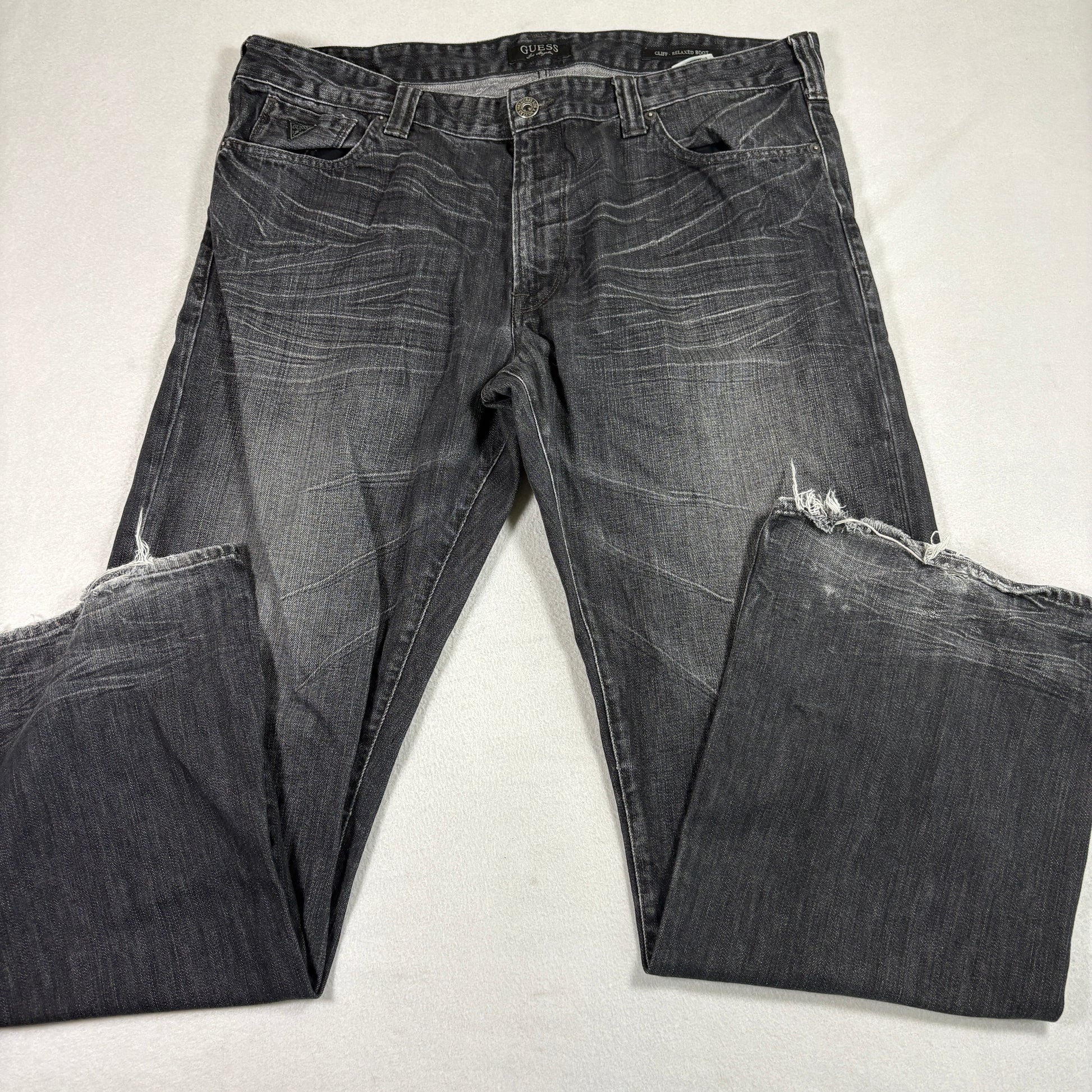Guess Jeanoot Cut Distressed Grunges Mens 40x32 Black Denim Cliff Relaxed B