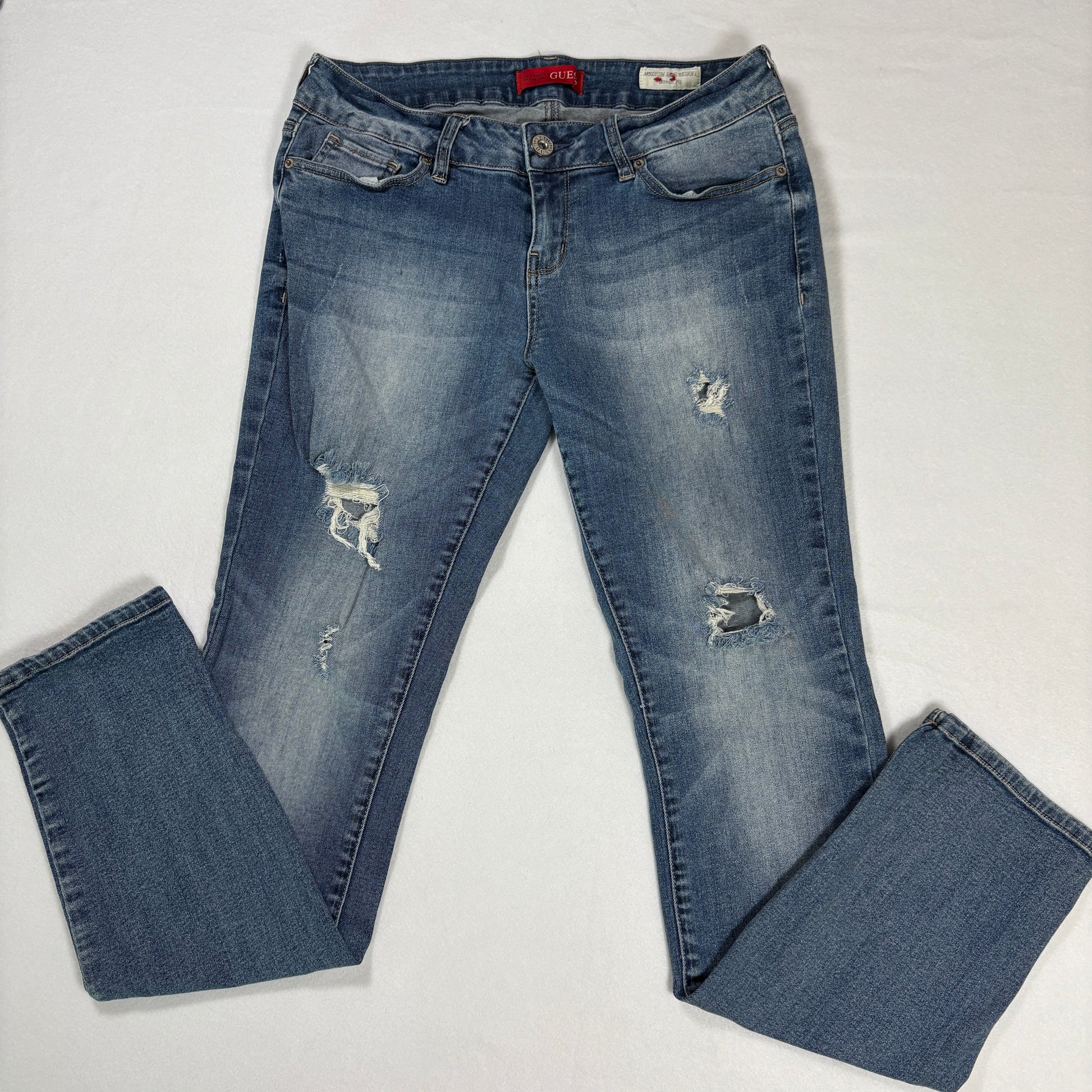 Guess Jeans Women’s Distressed Skinny Medium Rise Stretch Blue Denim Size 31