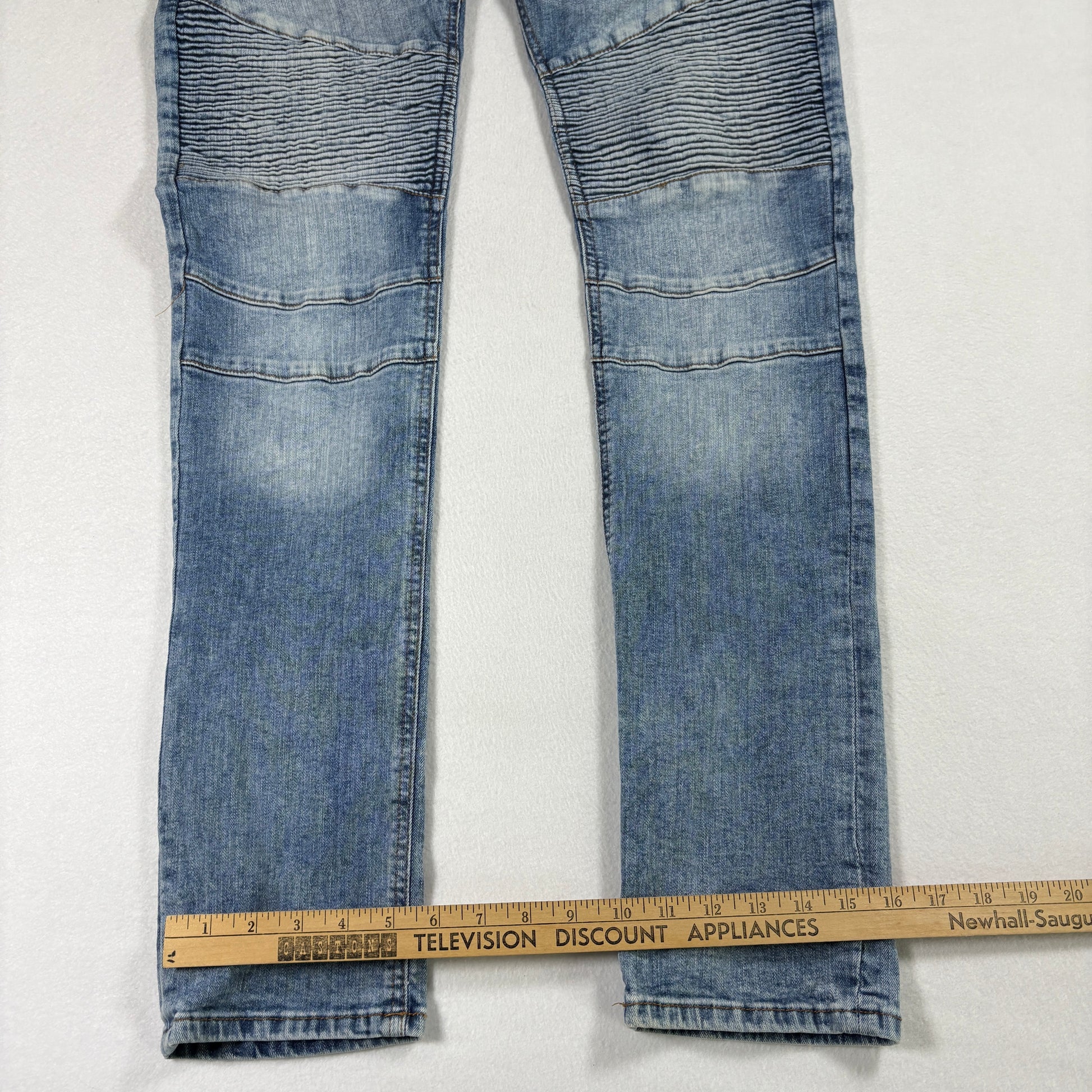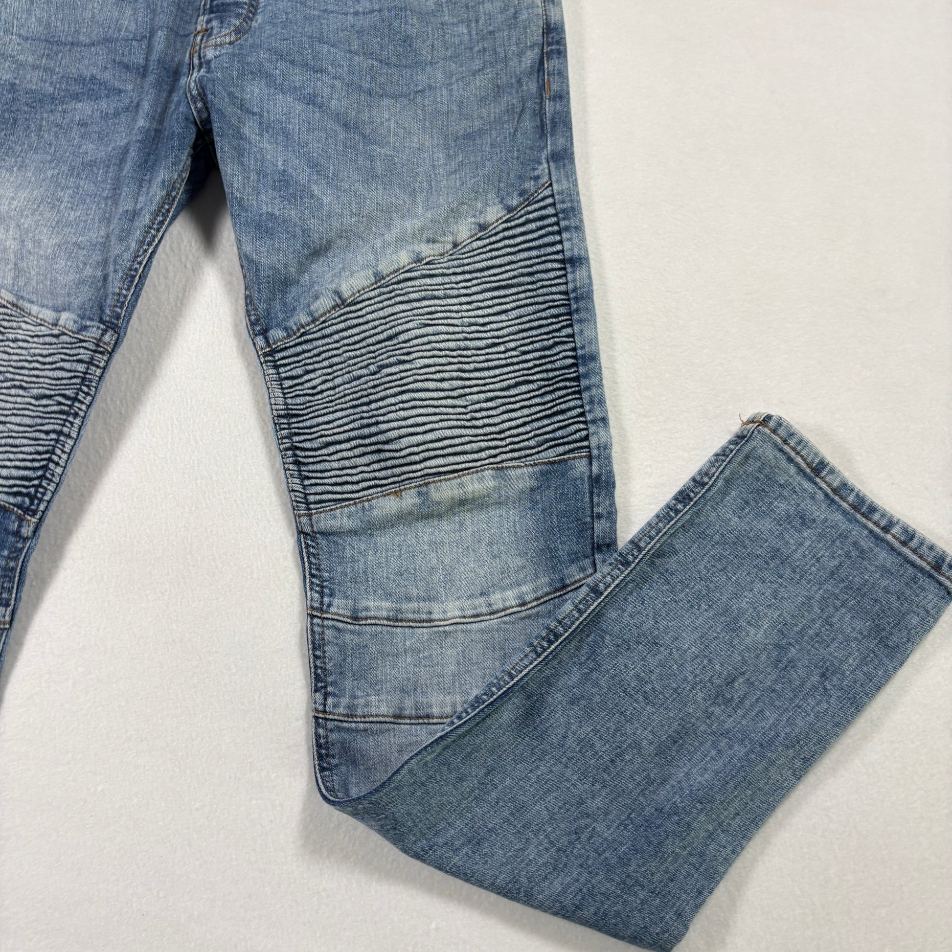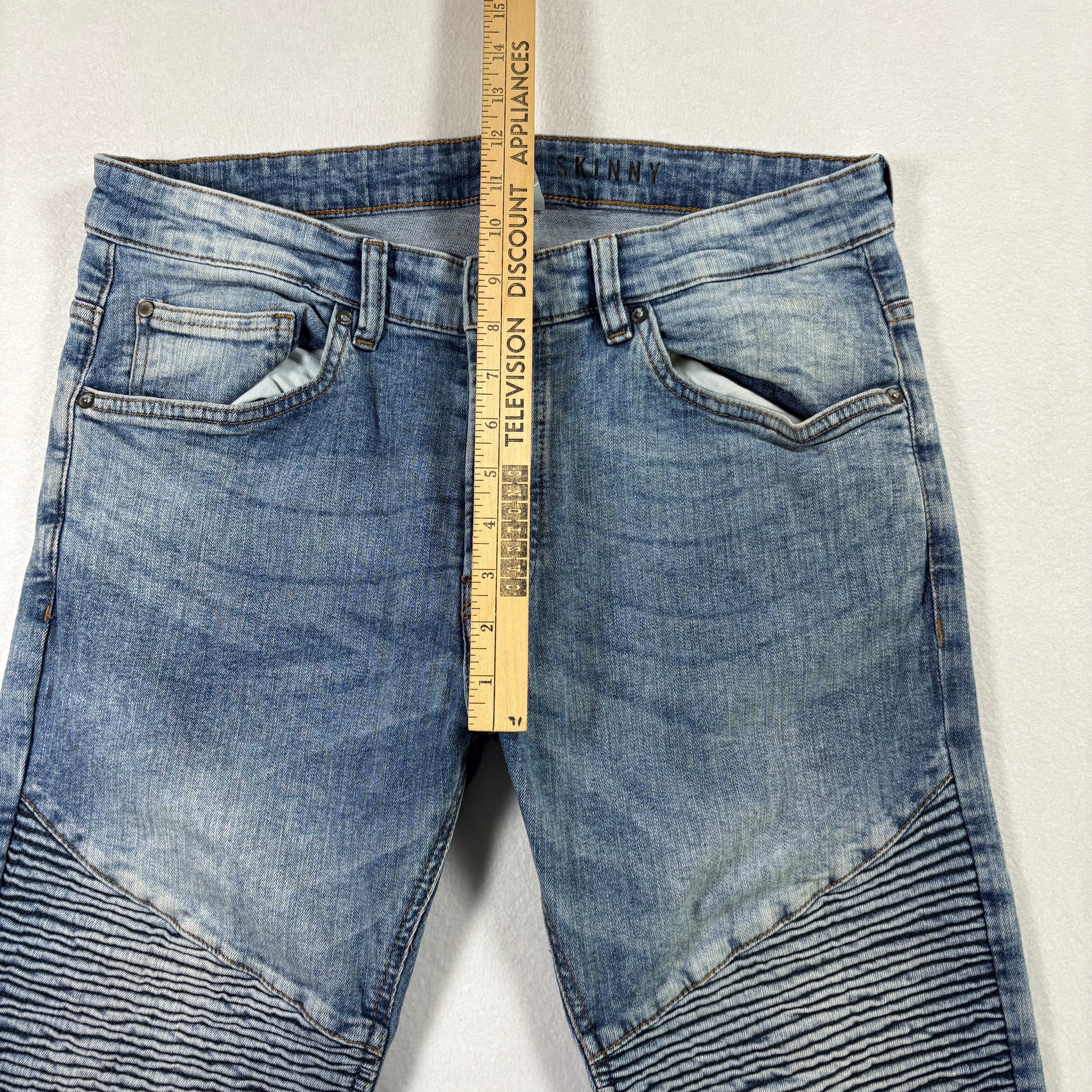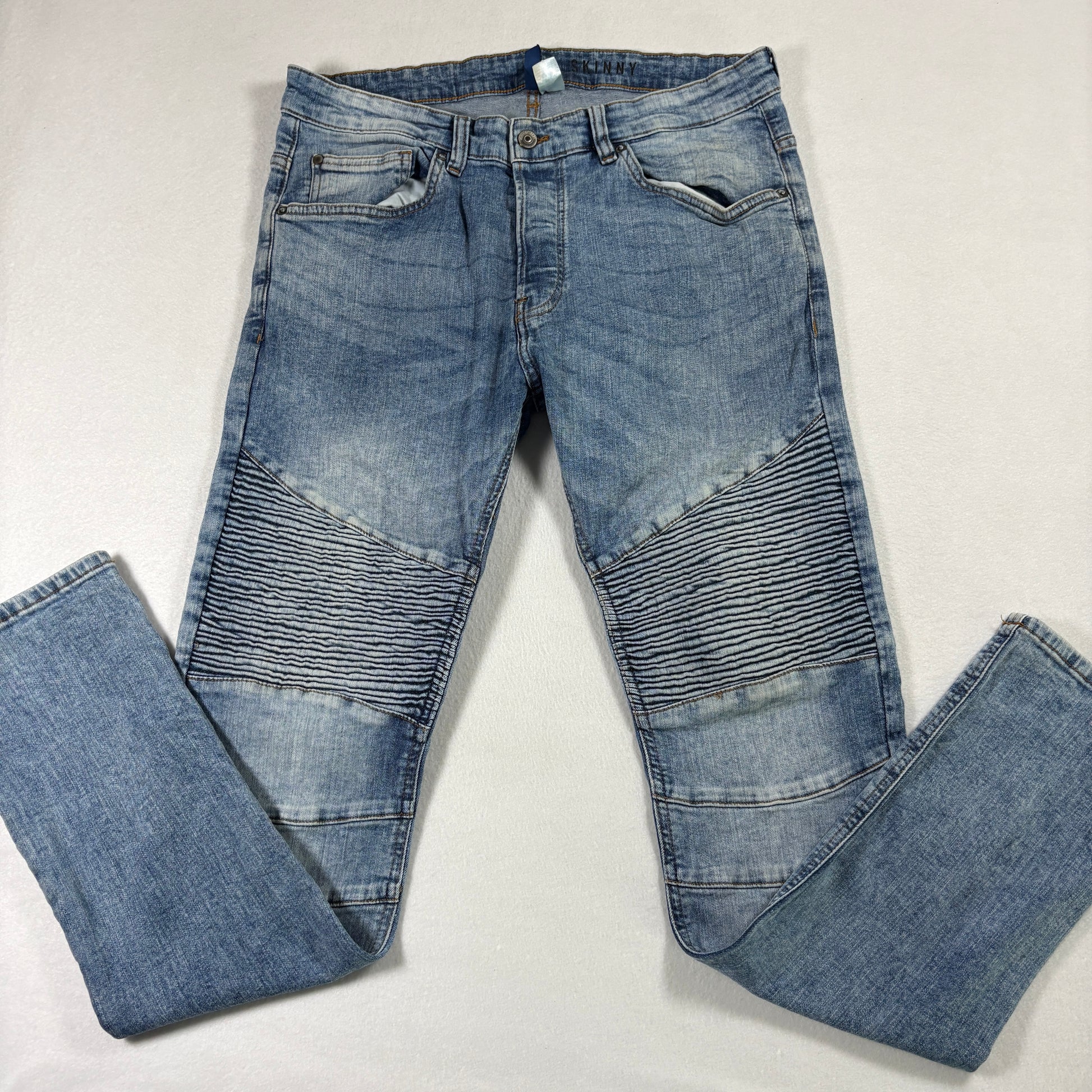 H&M Divided Mens Jeans 34 Skinny Fit Blue Biker Moto Denim Y2K 90s Grunge Vintage