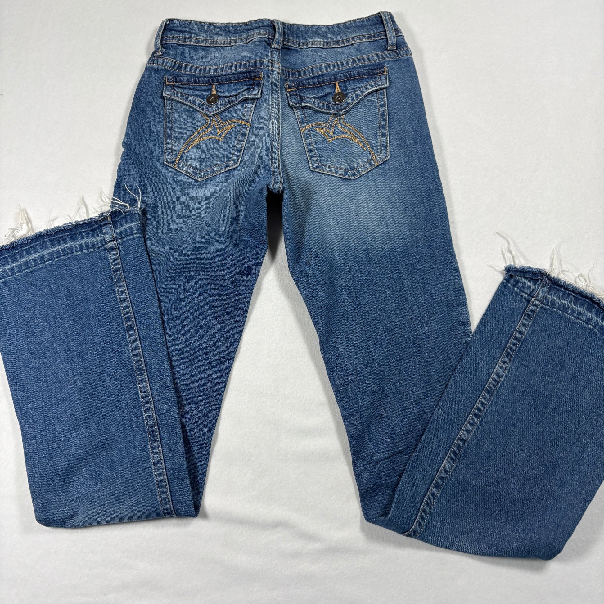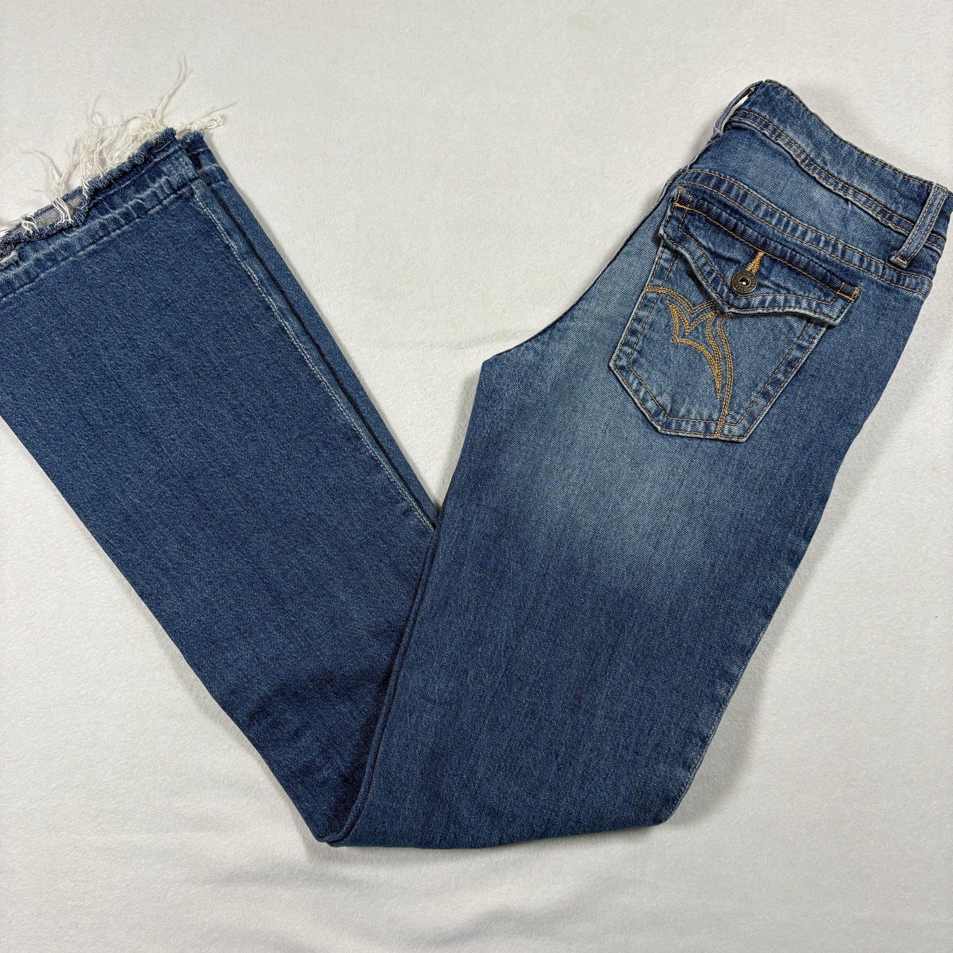 H&M Womens Jeans 20 Flare Low Rise Raw Hem Y2K 90s Grunge Plus Size Vintage Denim