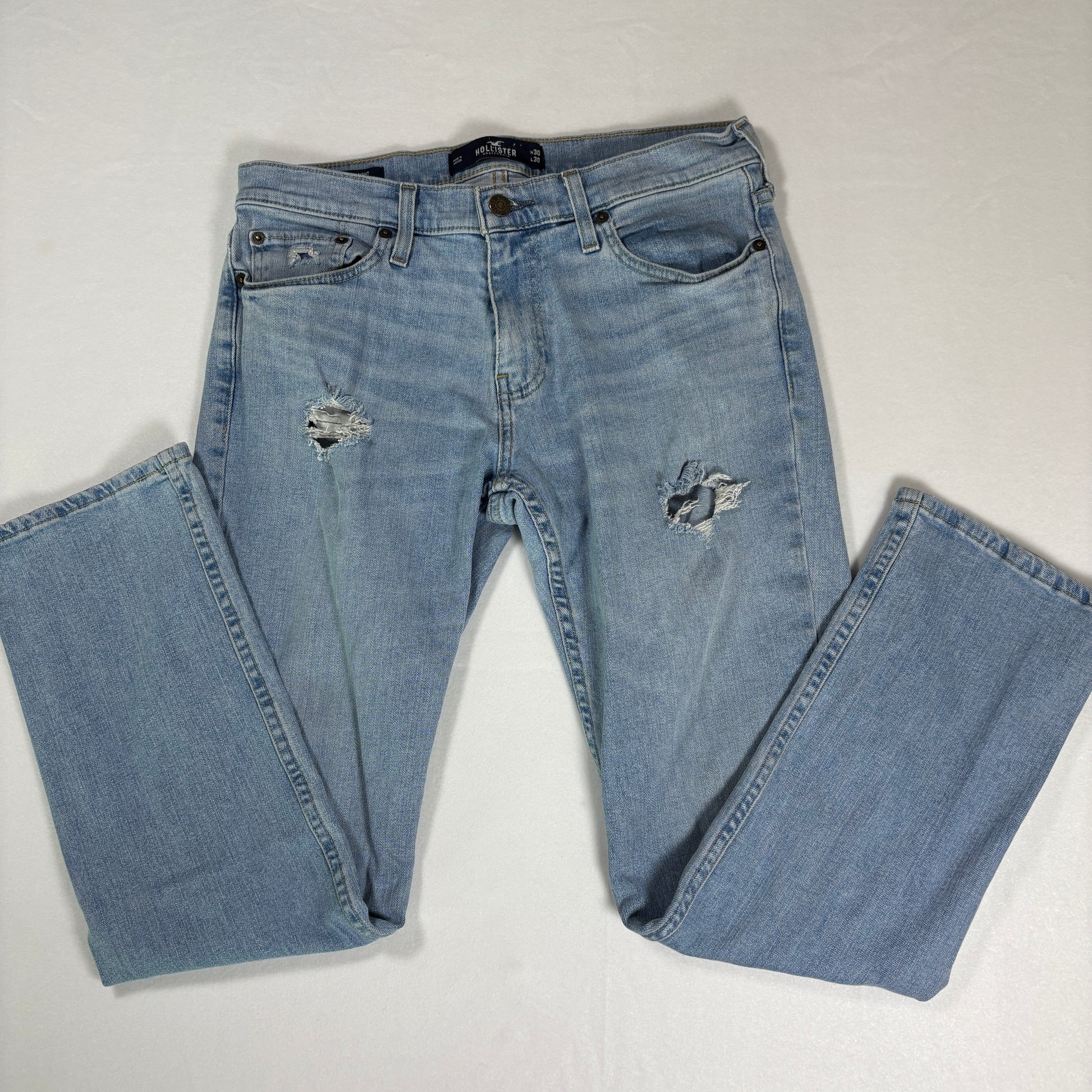 Hollister Men’s 30x30 Light Wash Distressed Jeans Ripped Denim Straight Fit