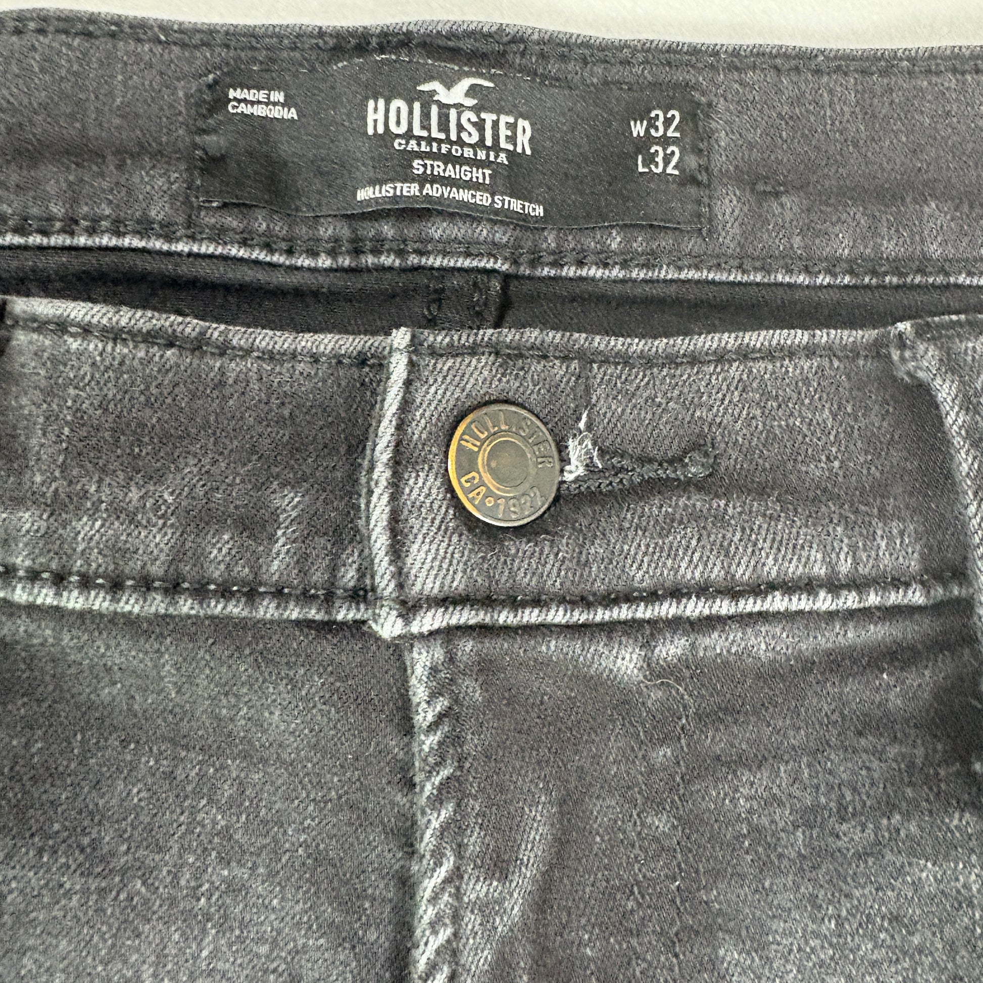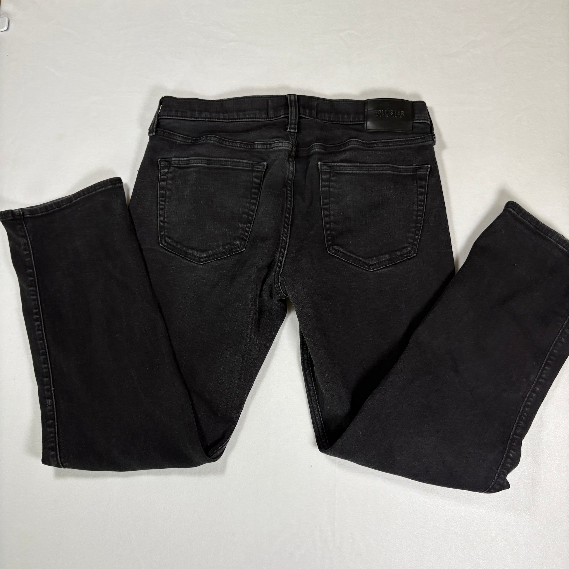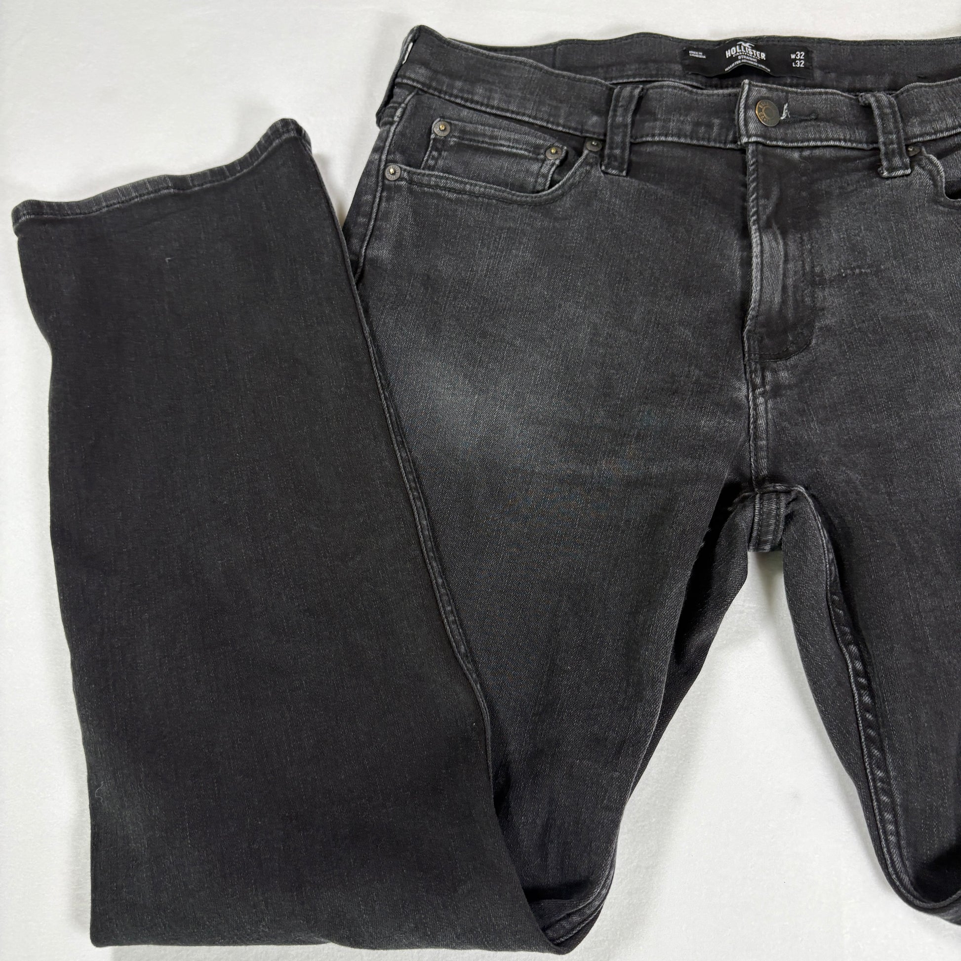 Hollister jeans, men’s black stretch jeans, straight leg denim, 32x32 jeans, dark wash denim, casual everyday jeans, baggy straight fit