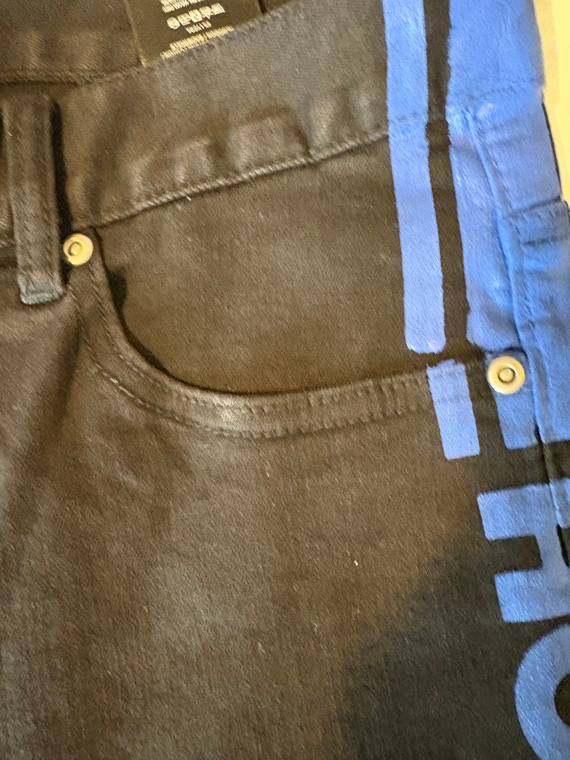 Homme + Femme Black Skinny Jeans Mens 32 – Distressed Blue Stripe Logo Pants