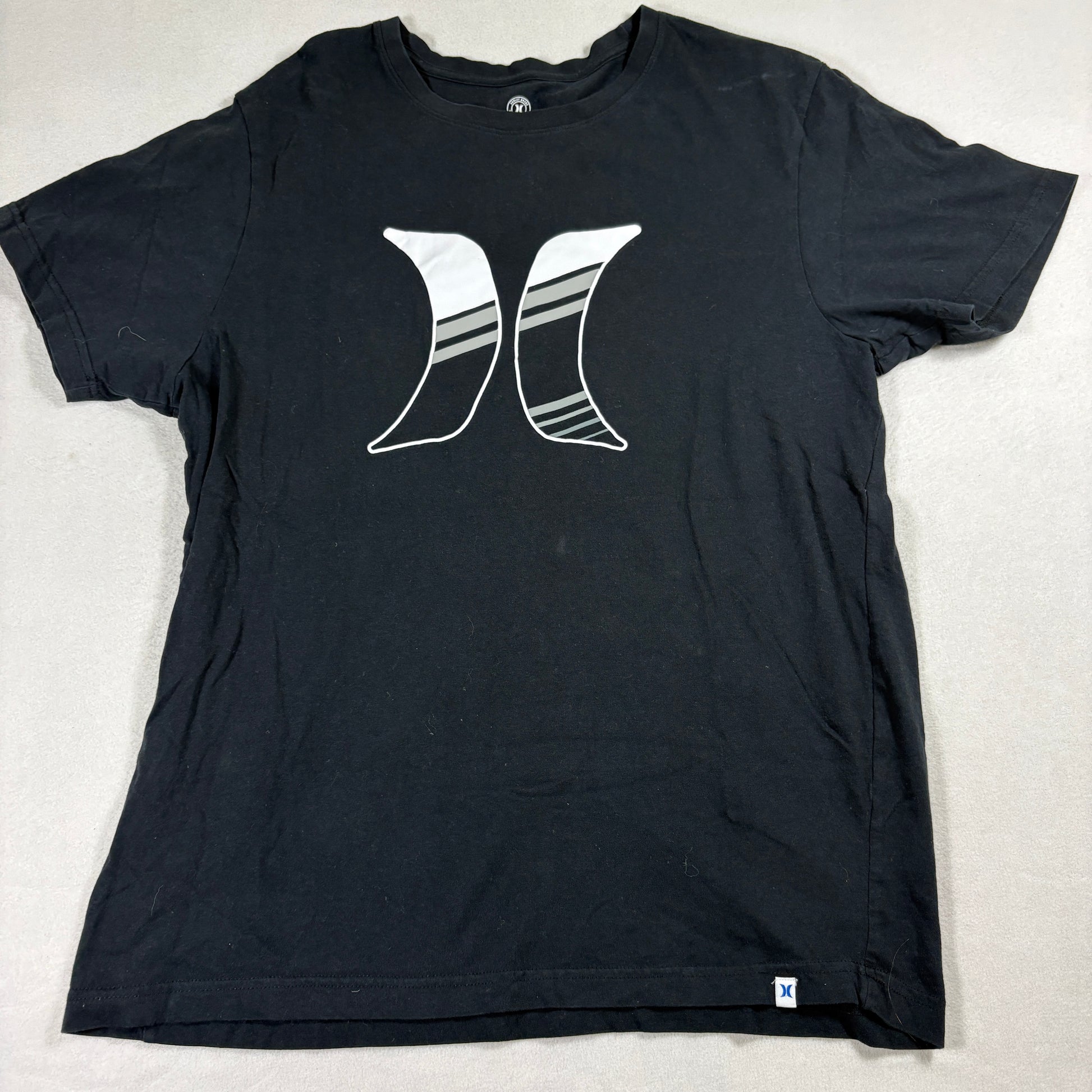 Hurley T Shirt Mens Large Black Striped Logo Graphic Tee Surf Skate Streetwear
