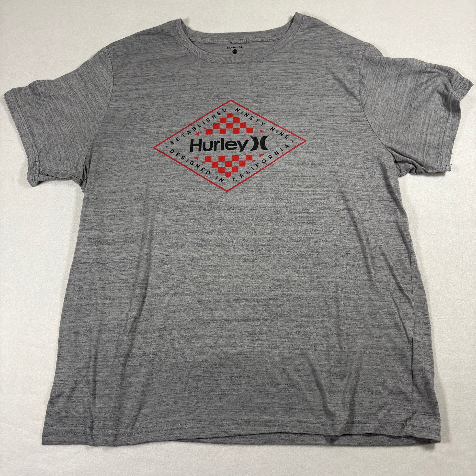 Hurley T Shirt Mens XL Gray Red Checkered Logo Graphic Tee Surf Skate Style
