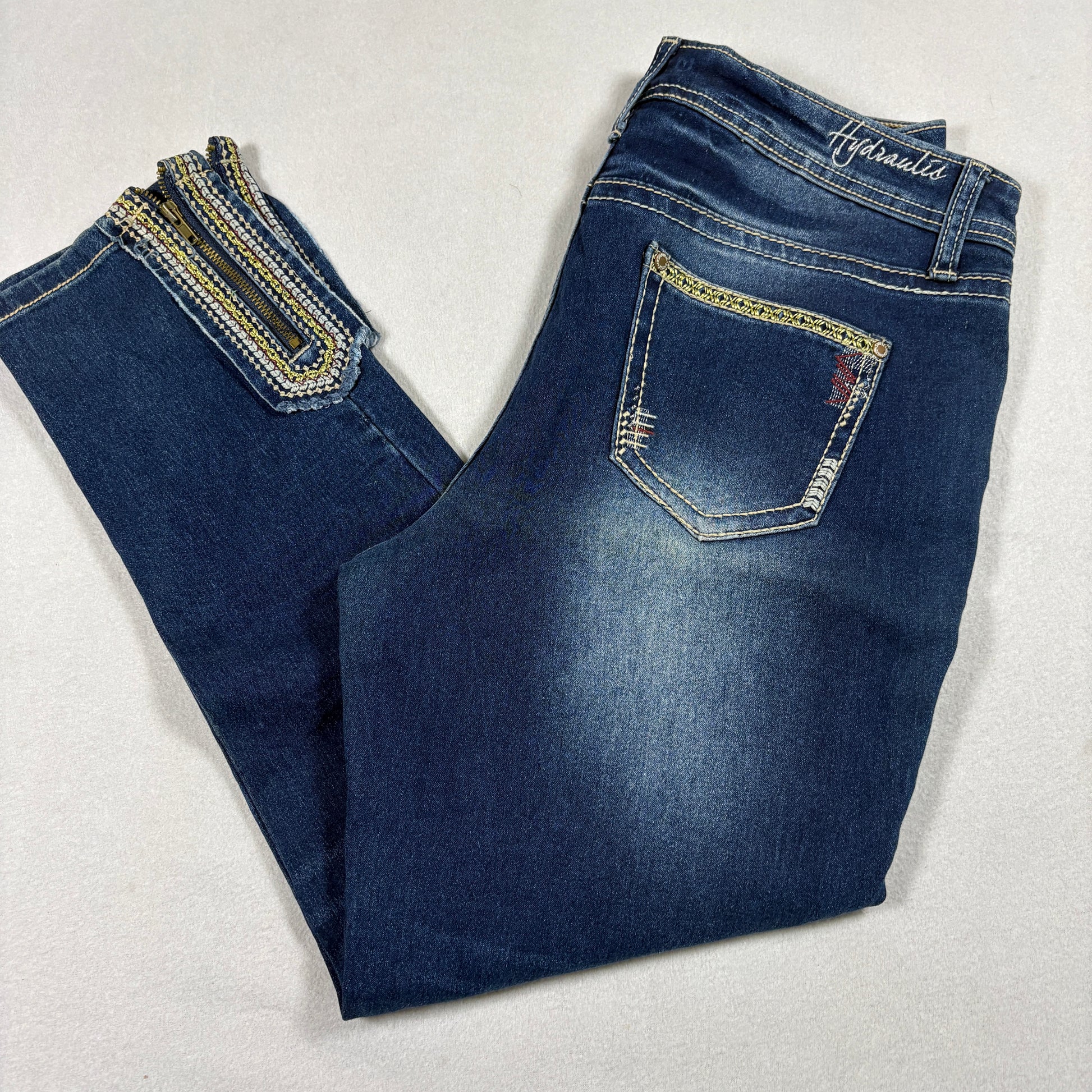 Hydraulic, Womens Jeans, Blue, Skinny, Zip Hem, Embellished, Stretch, Denim, Size 8, Y2K, Grunge