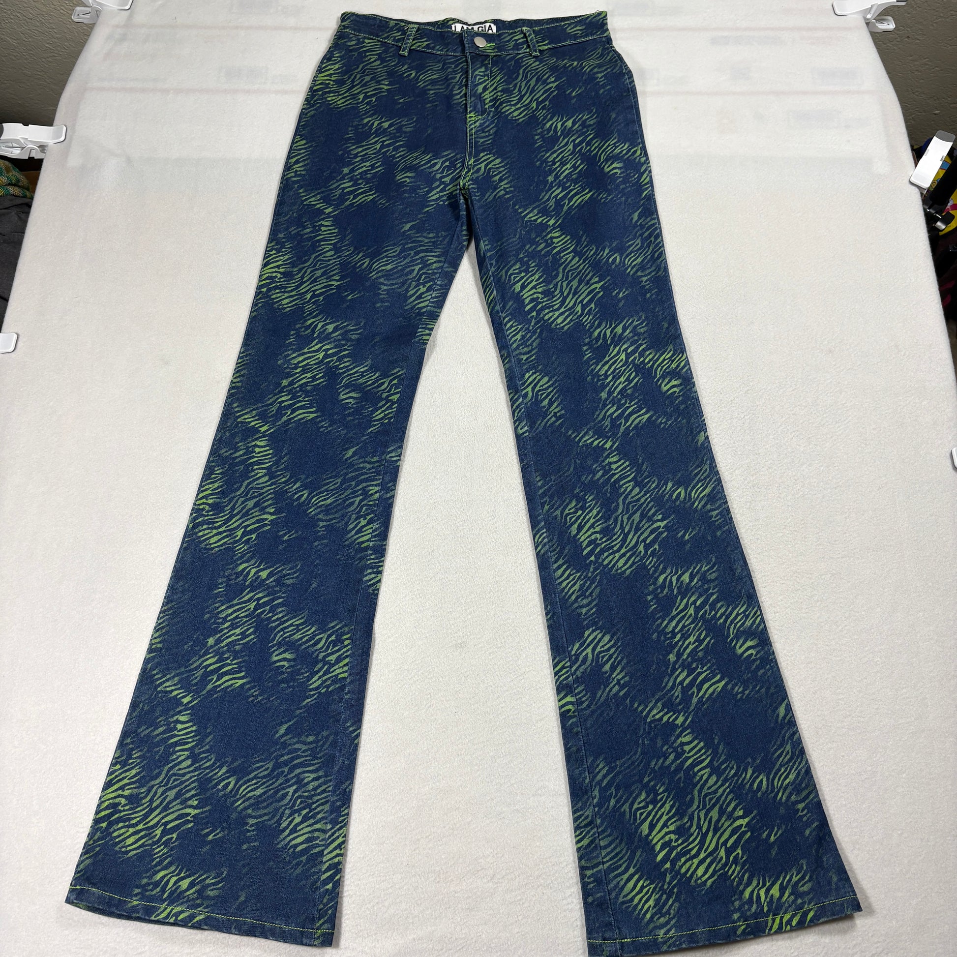 I AM GIA Womens Flare Jeans Blue Green Zebra Print Y2K Low Rise Pants Size S