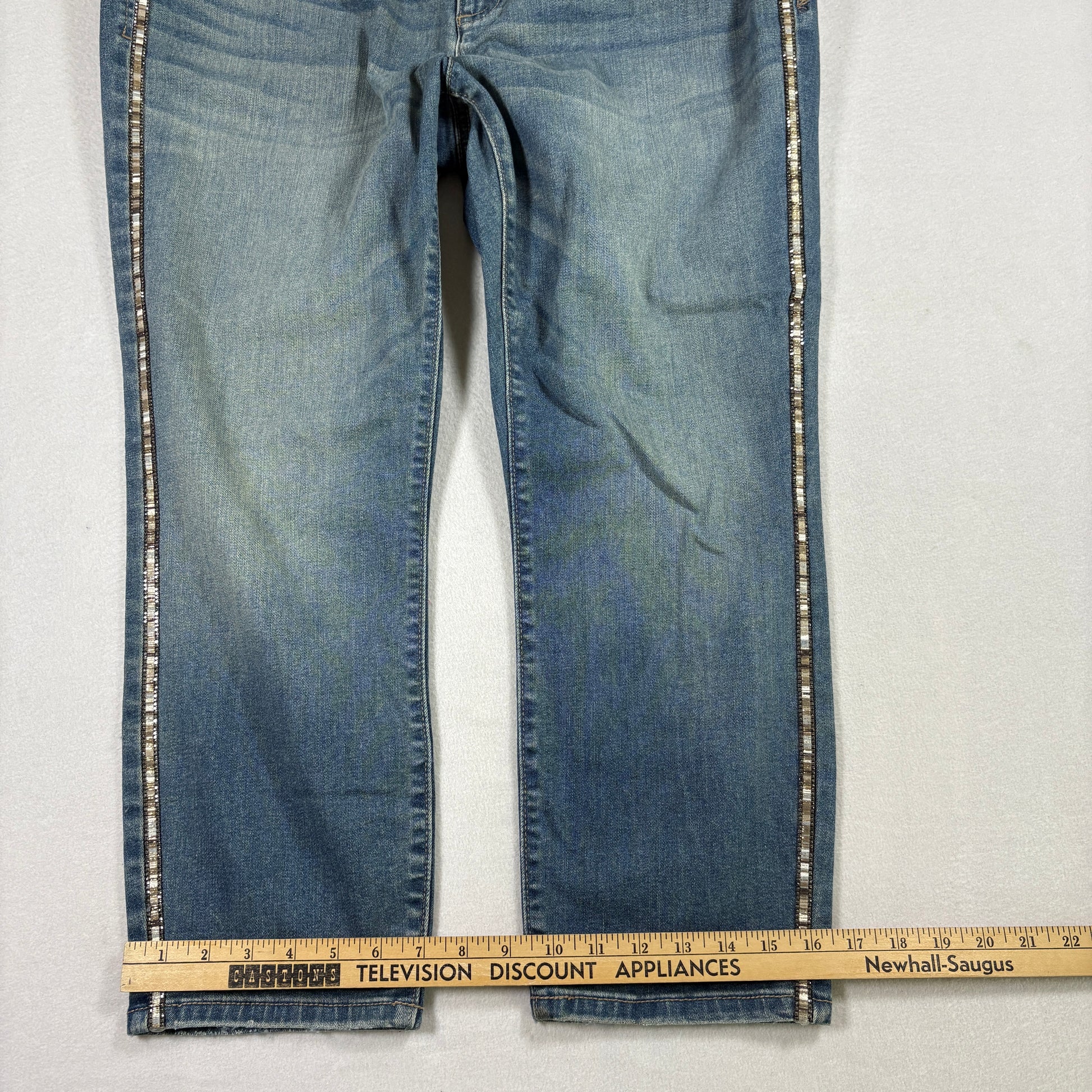 inc, womens jeans, size 14, skinny, stretch, blue denim, sequin stripe, y2k, vintage, grunge