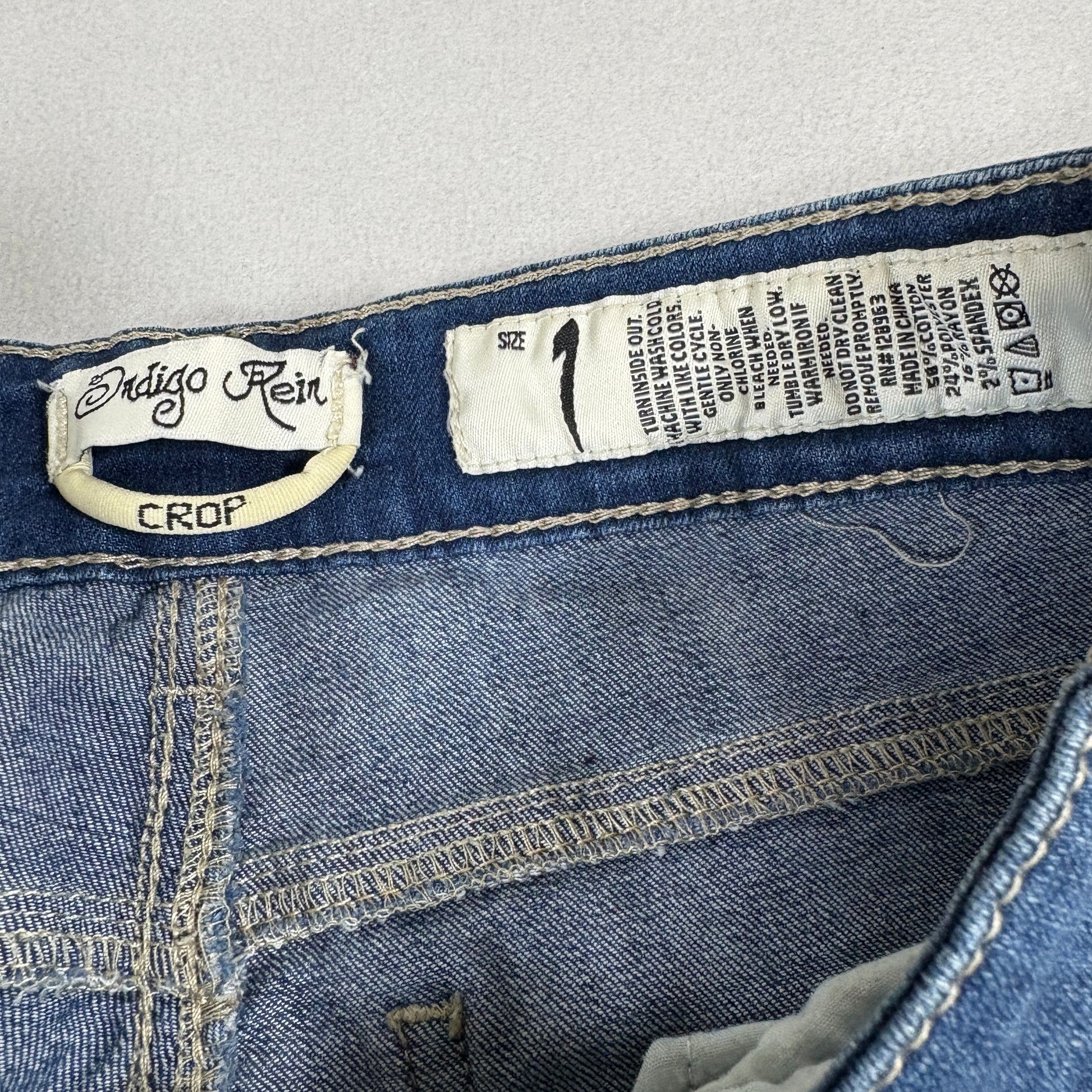 indigo rein jeans, crop jeans, y2k jeans, distressed denim, cuffed jeans, womens jeans, stretch jeans