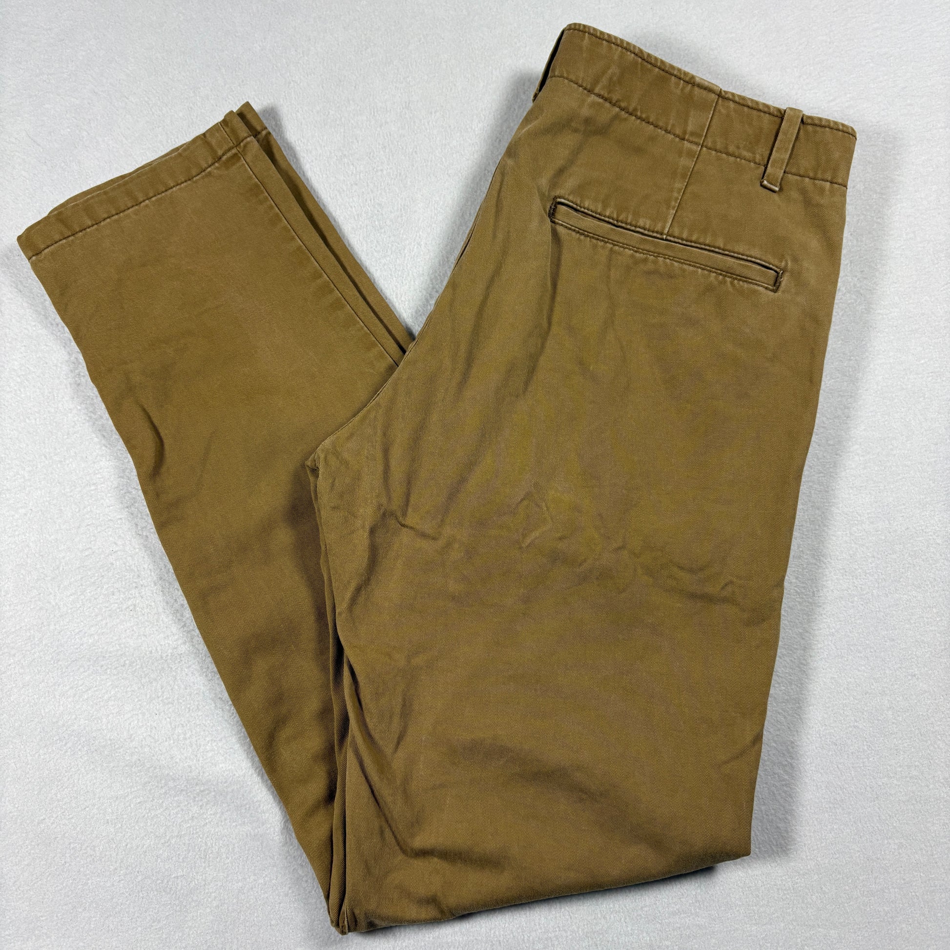 These J.Crew chinos offer a timeless everyday essential with a refined slim fit and durable cotton twill construction. Perfect for casual office wear or weekend outfits, their warm khaki tone pairs effortlessly with button-downs or tees for a clean, polished look.