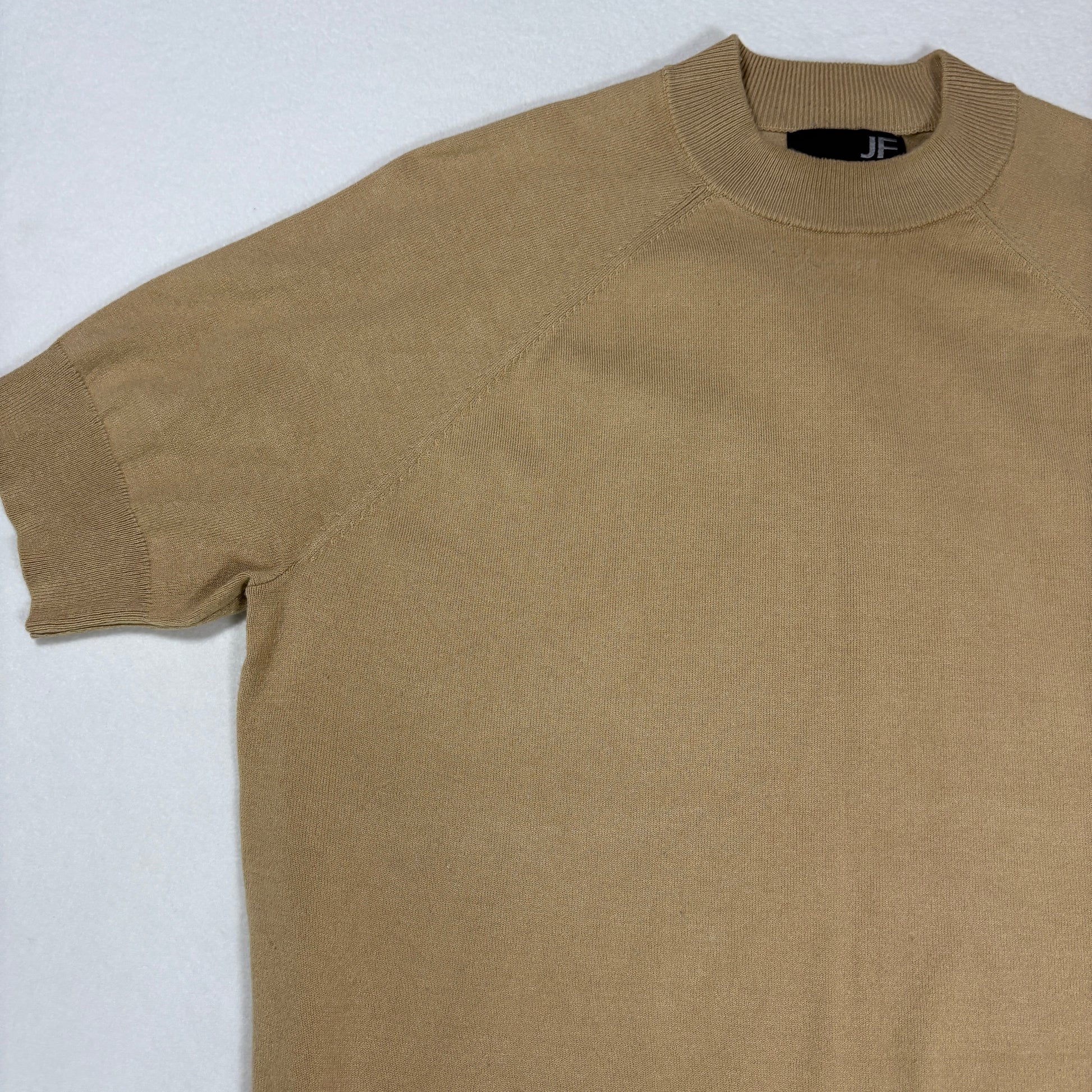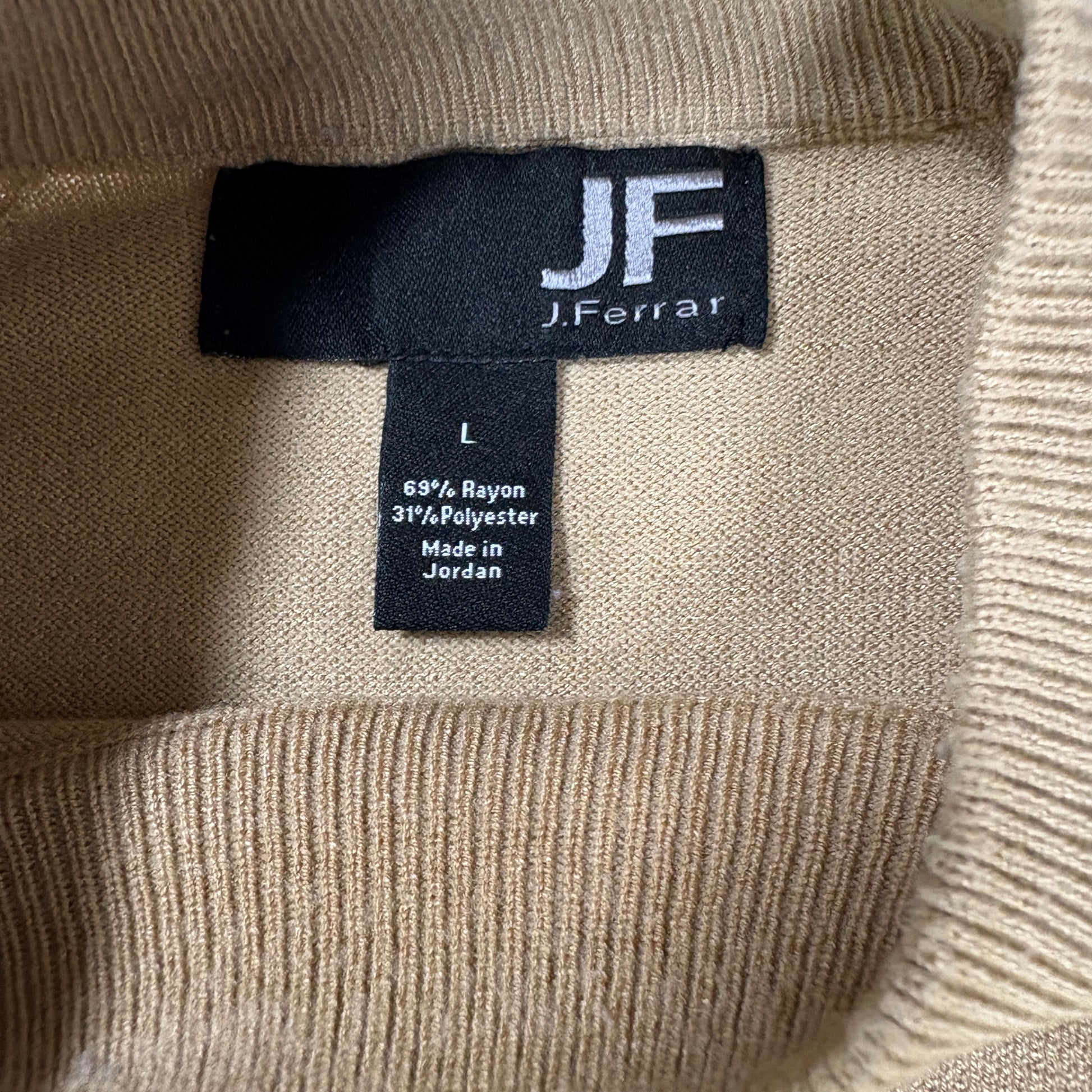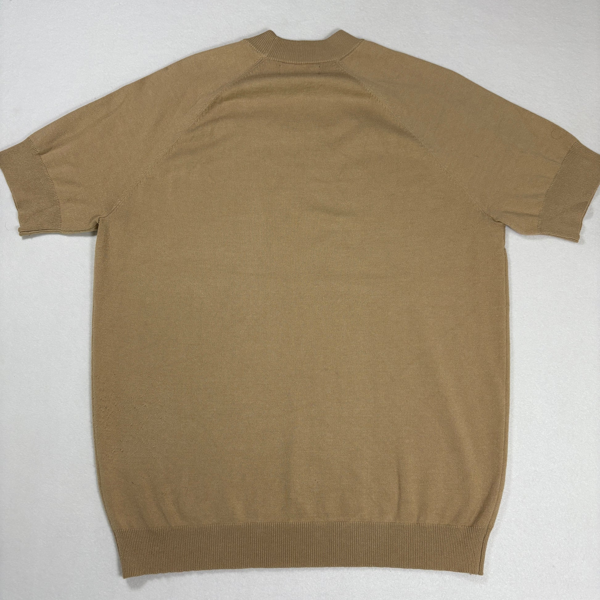 JF J Ferrar Mens Sweater Size L Tan Short Sleeve Knit Pullover Retro Y2K Minimal
