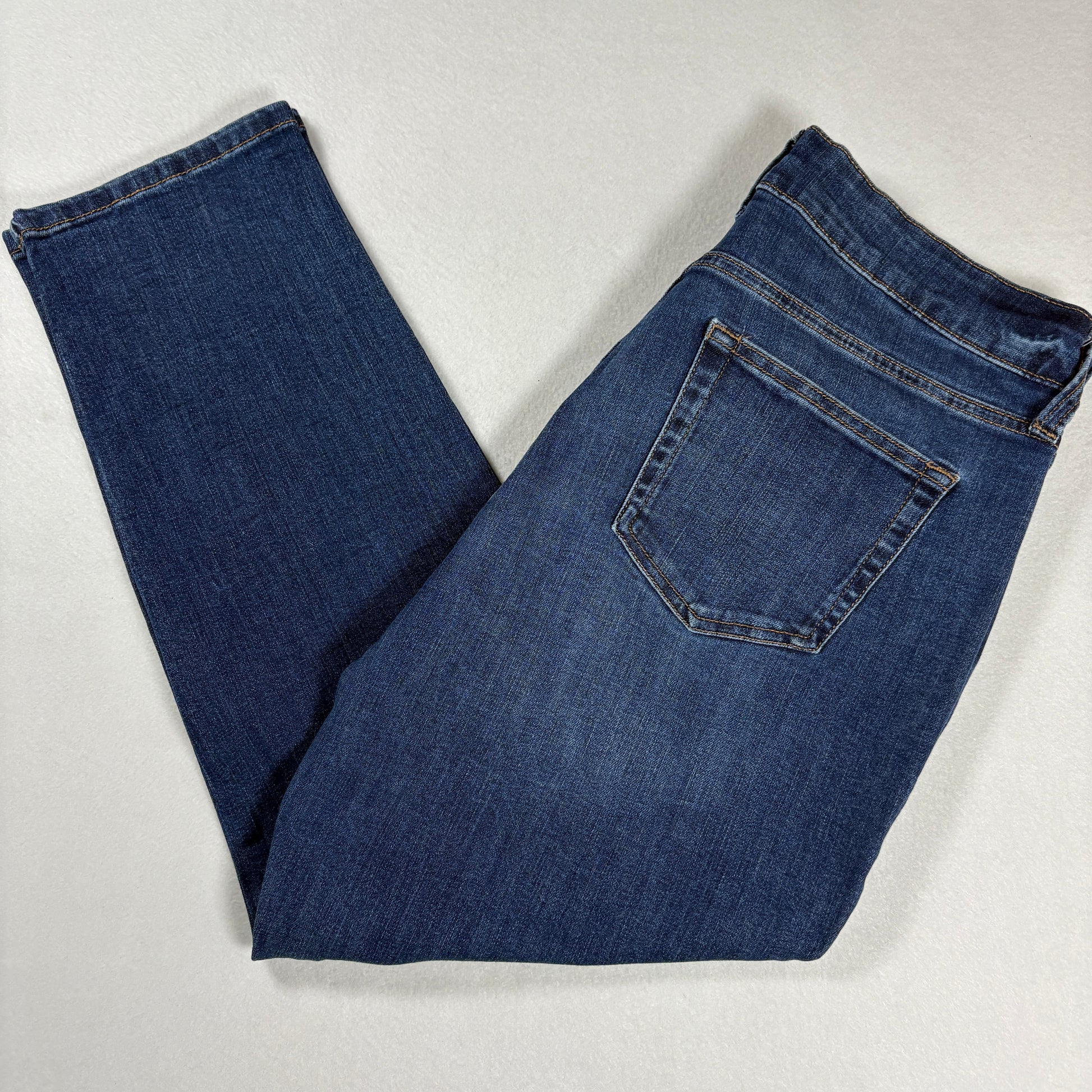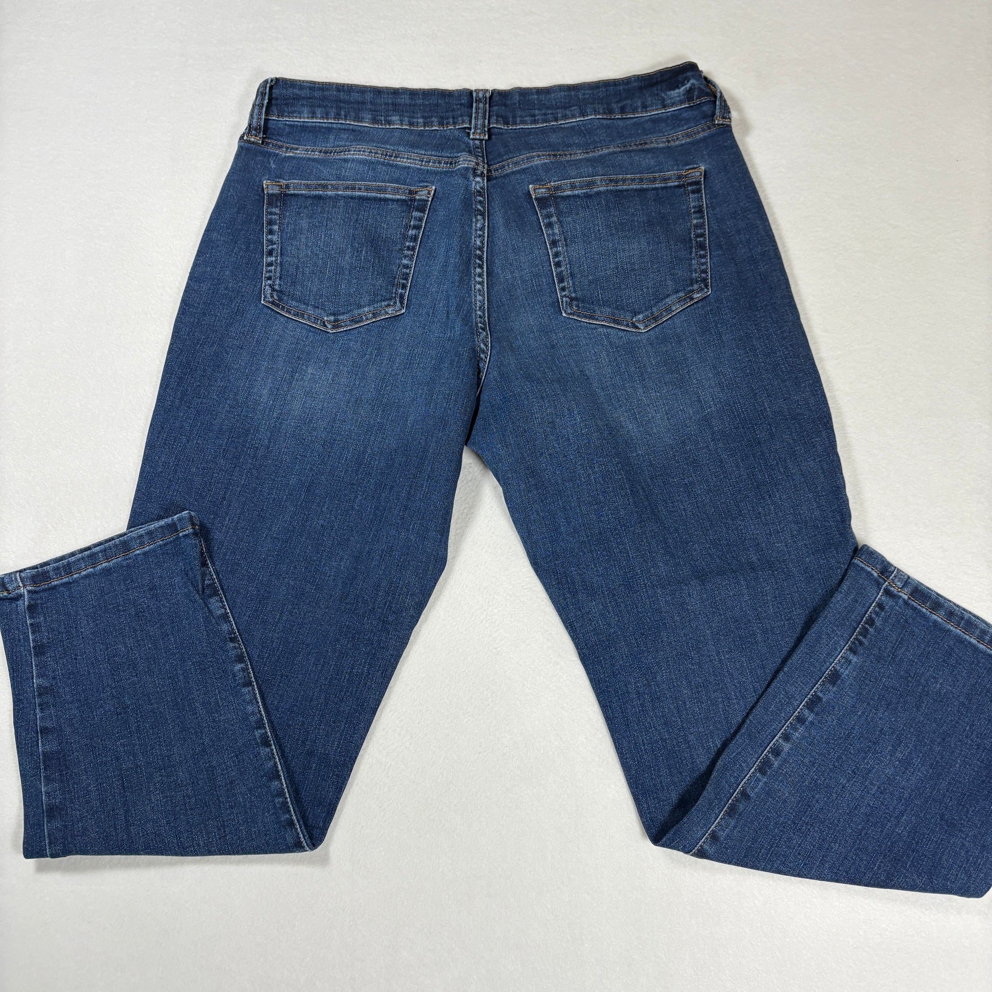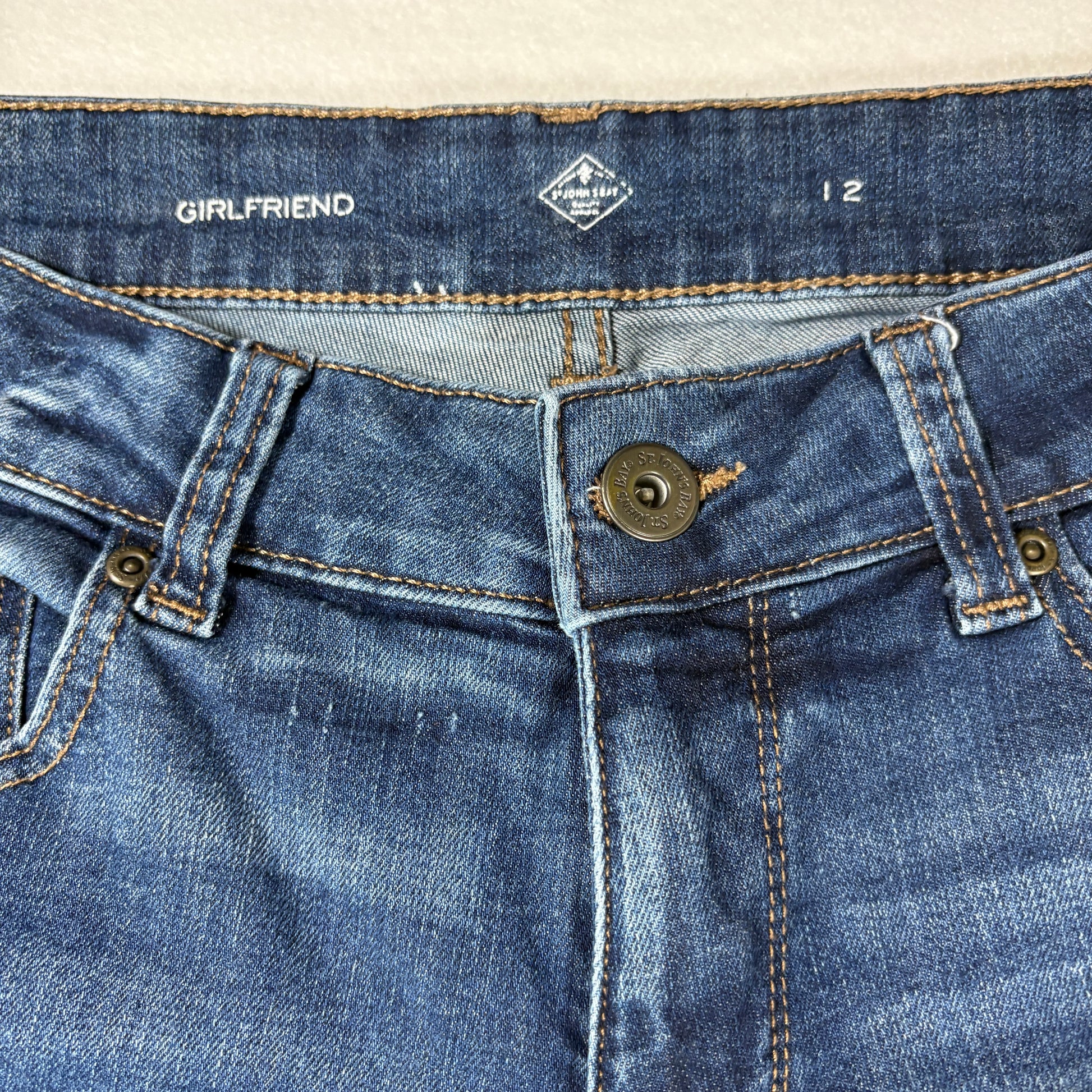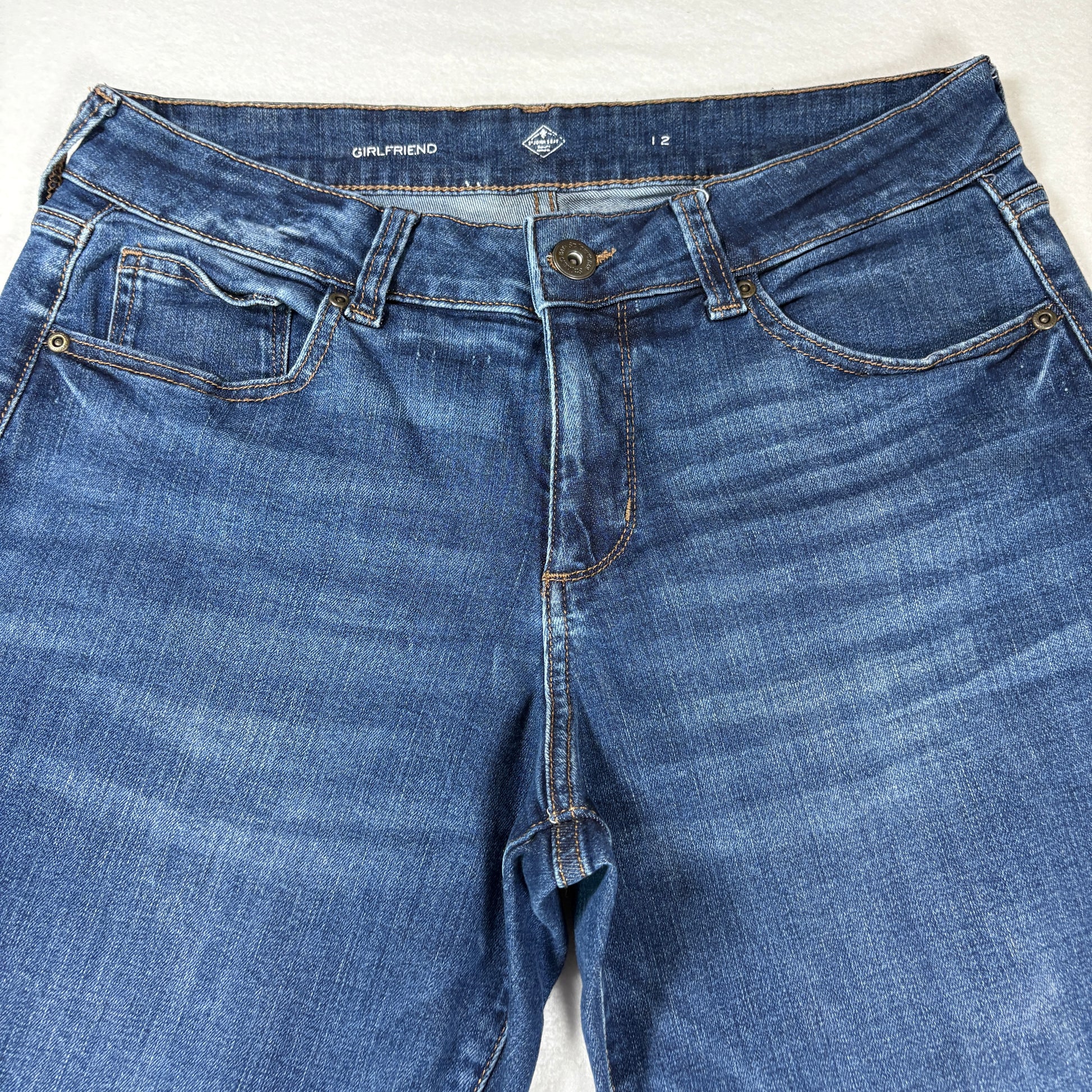 womens girlfriend jeans, size 12 denim, straight leg jeans, high rise casual denim