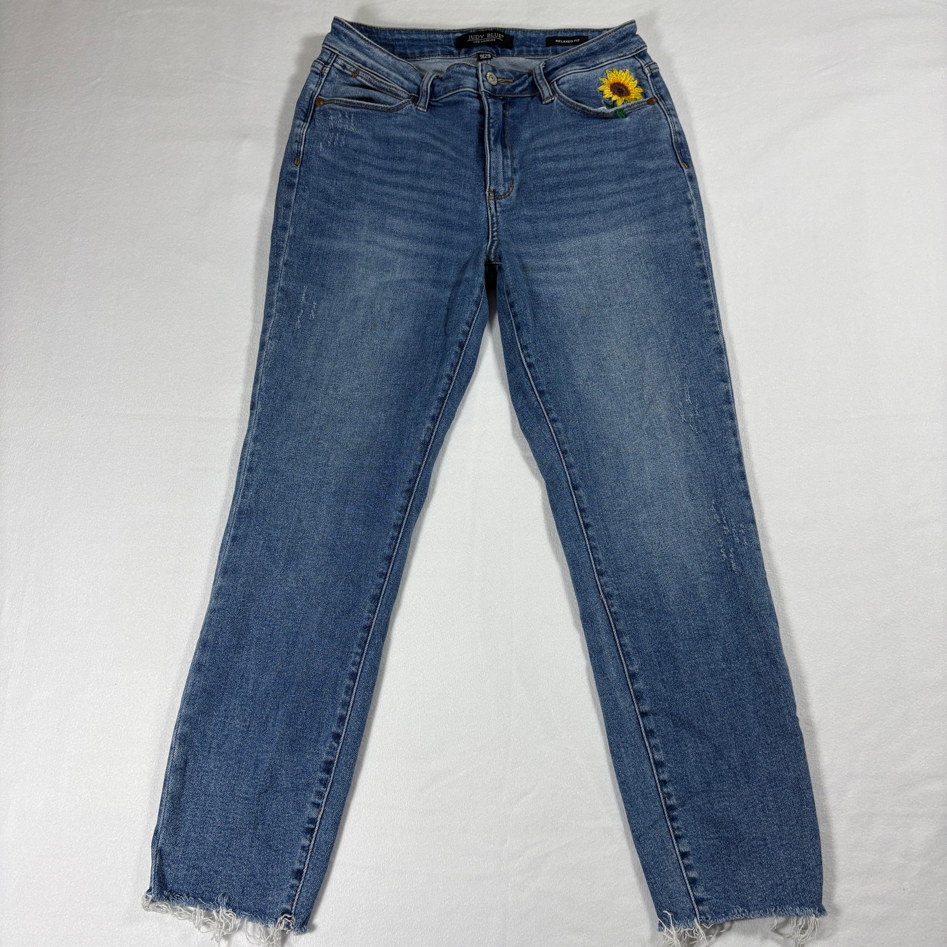 Judy Blue Relaxed Fit Jeans Womens 9/29 Sunflower Embroidered Frayed Hem Y2K Retro