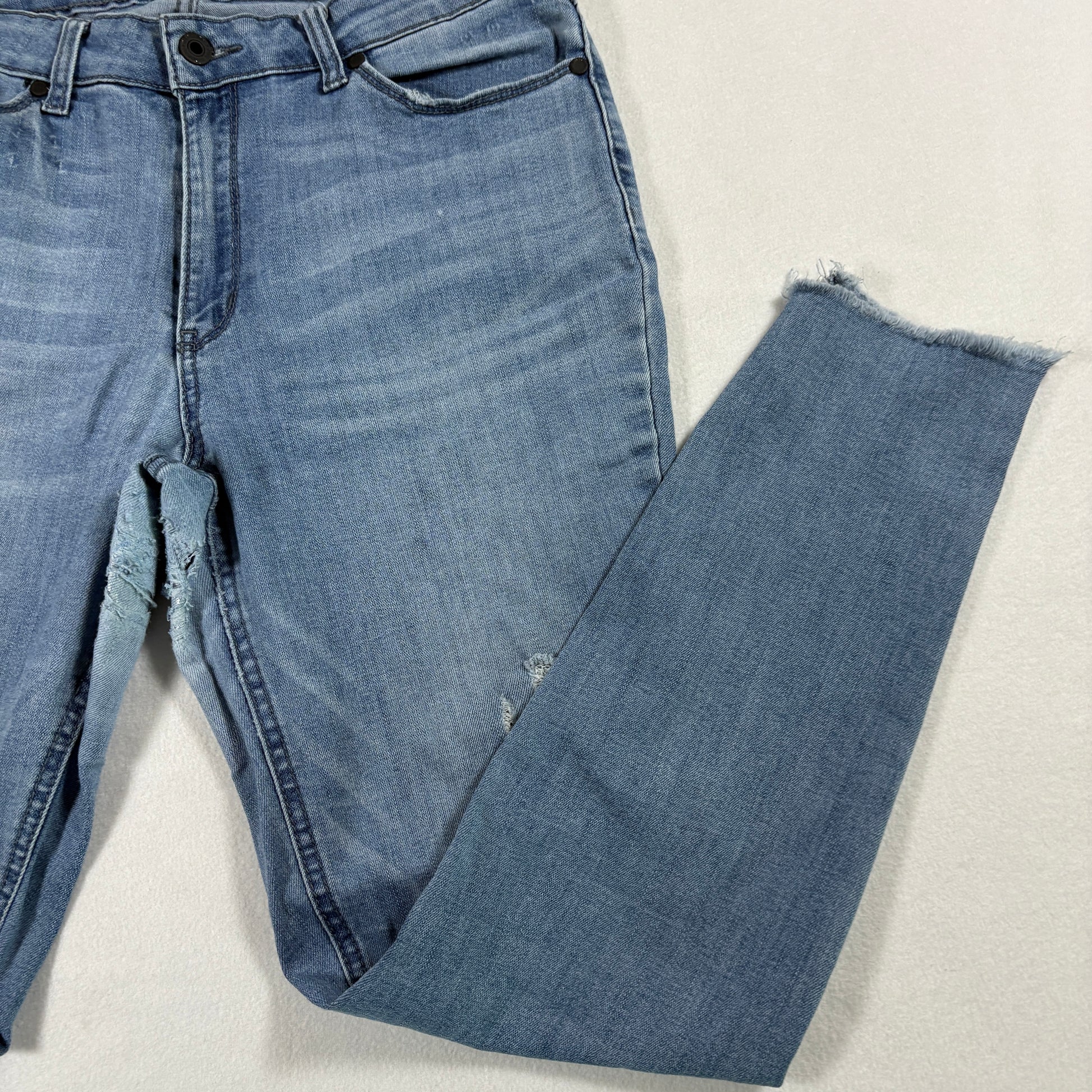 kenneth cole jeans, womens skinny jeans, y2k denim, distressed jeans, repair project, size 10 light wash