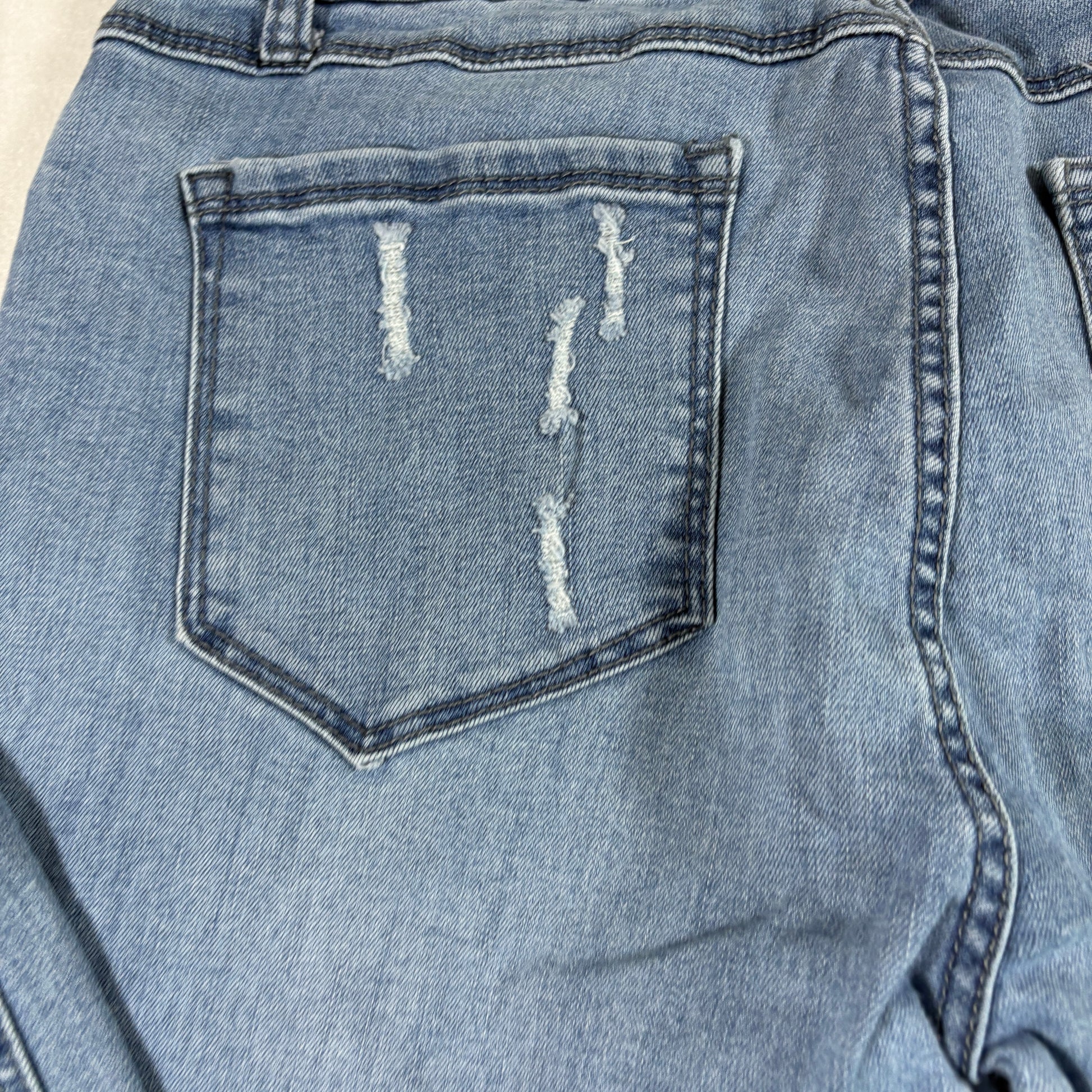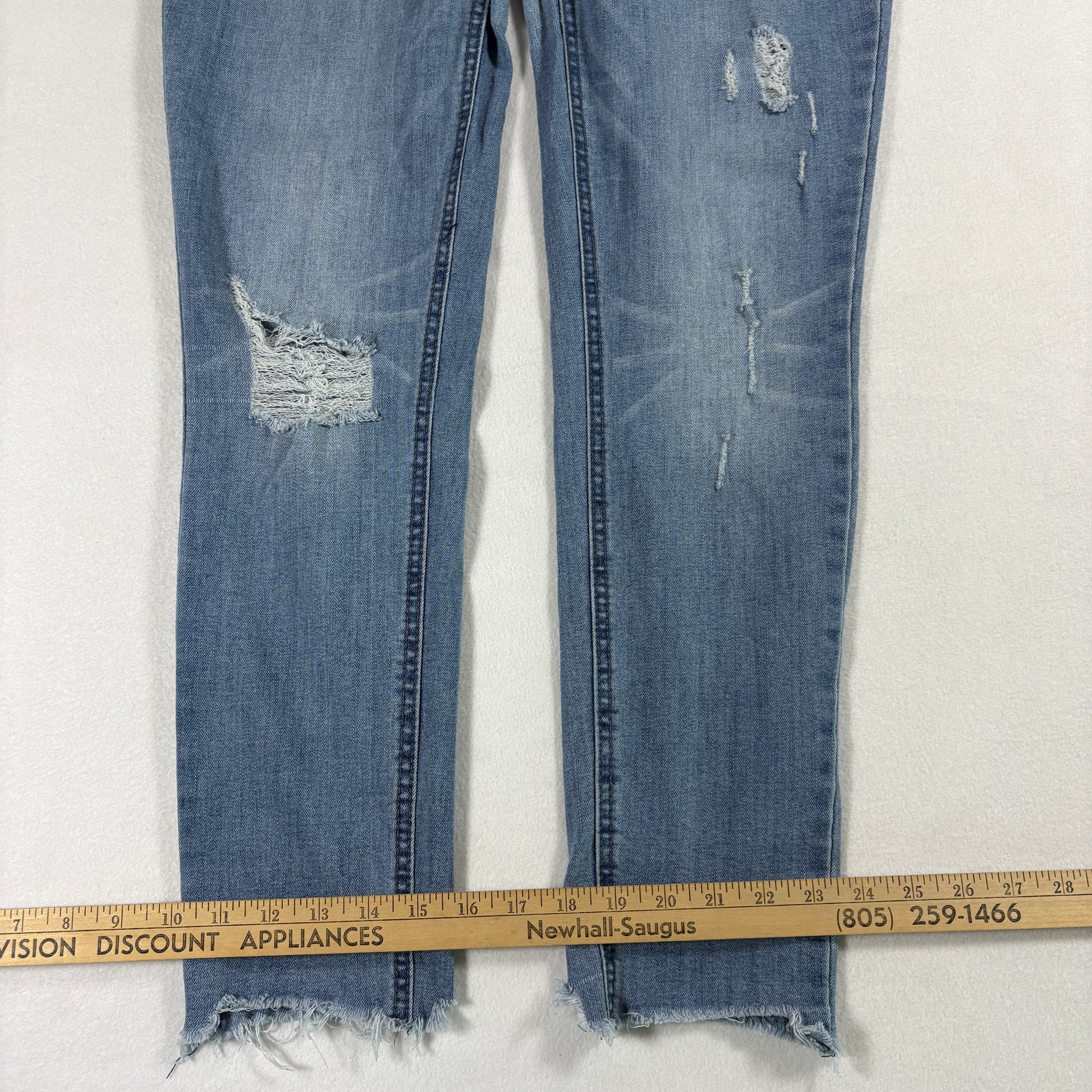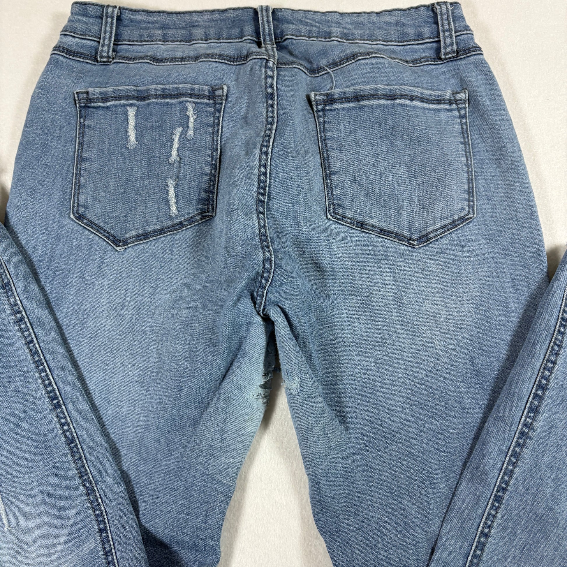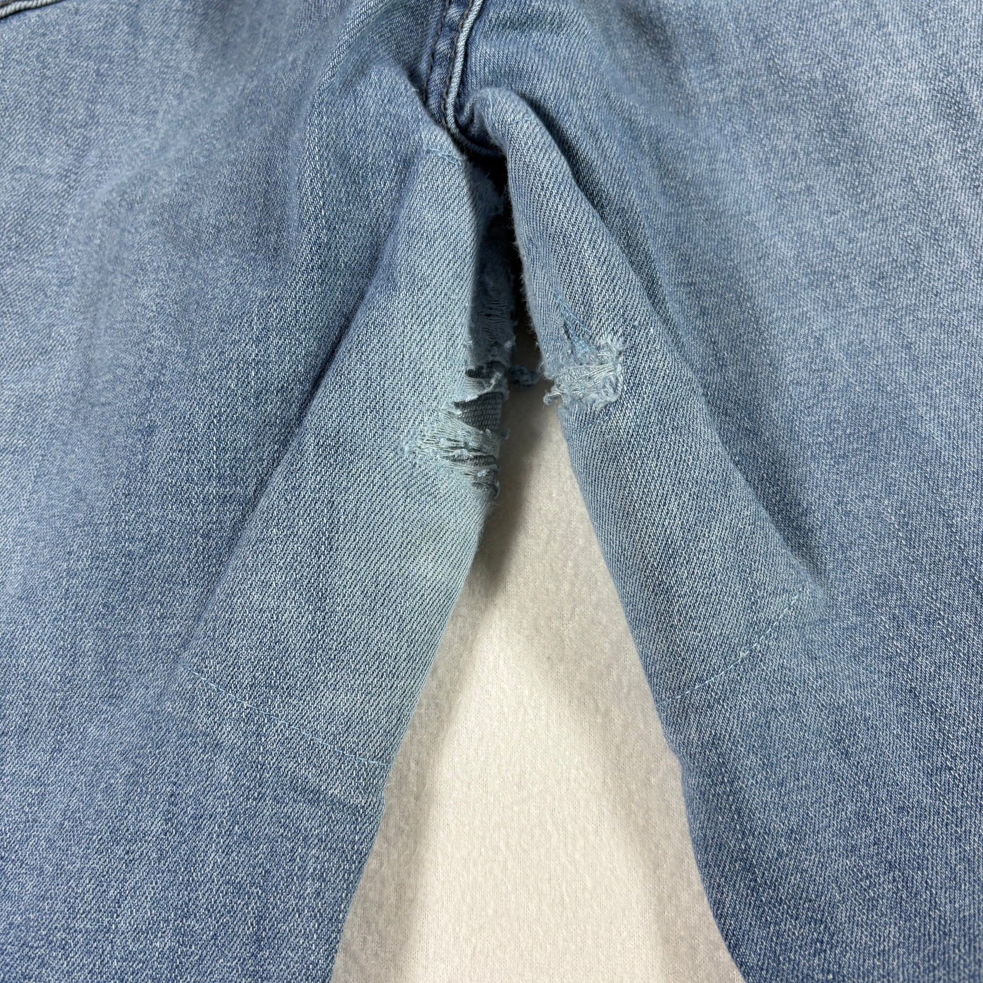 These jeans offer a trendy light wash skinny silhouette, perfect for DIY repair or repurposing into cutoff shorts. Priced accordingly due to the crotch distressing. We strive to ship same or next business day depending on order time. USPS Ground Advantage unless a better option is available. Free 30 day returns. Please see all pictures for condition. We combine shipping, so check our store for more denim options.