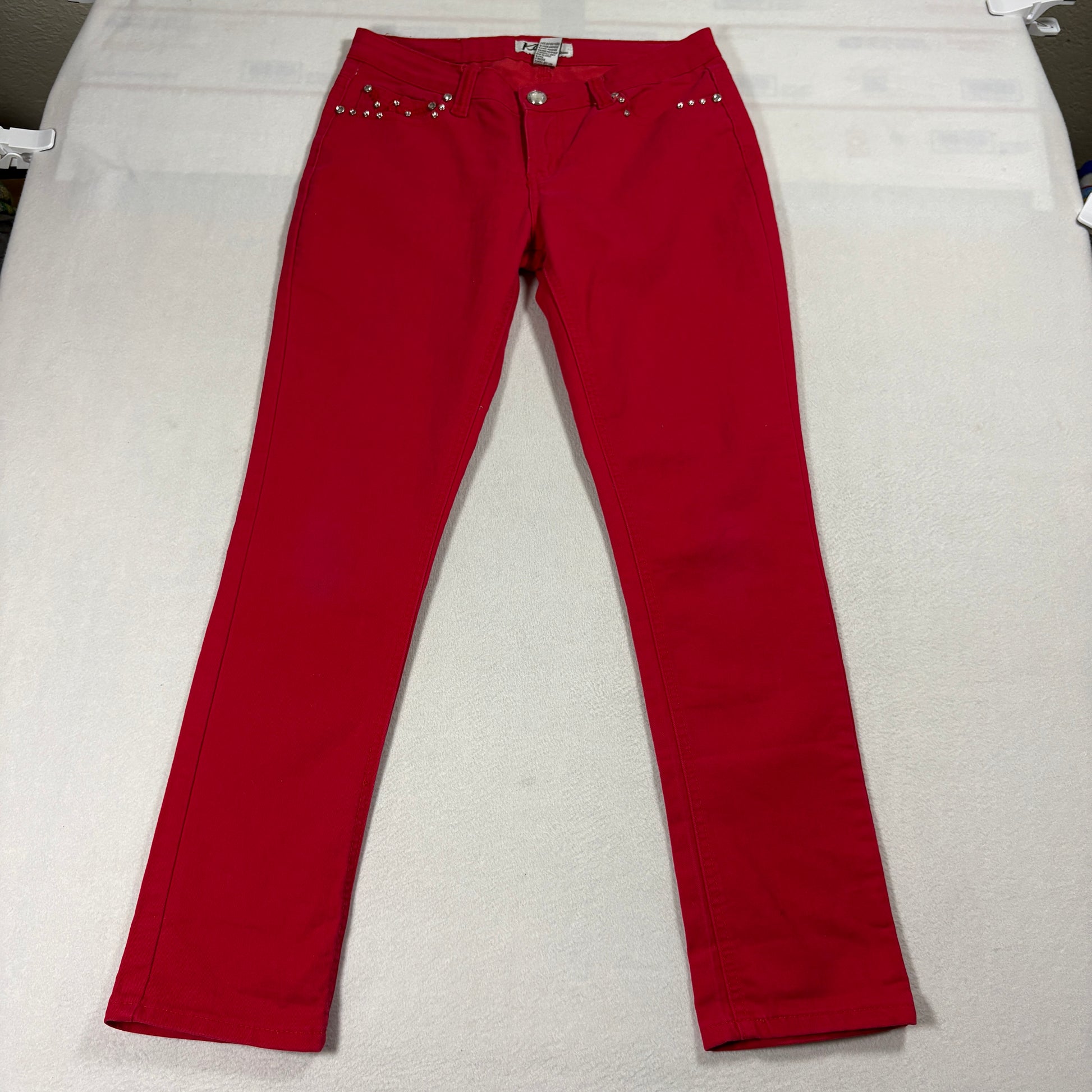 Klip Jeans Womens Red Skinny Jeans Size 11 Studded Pockets Stretch Denim Pants