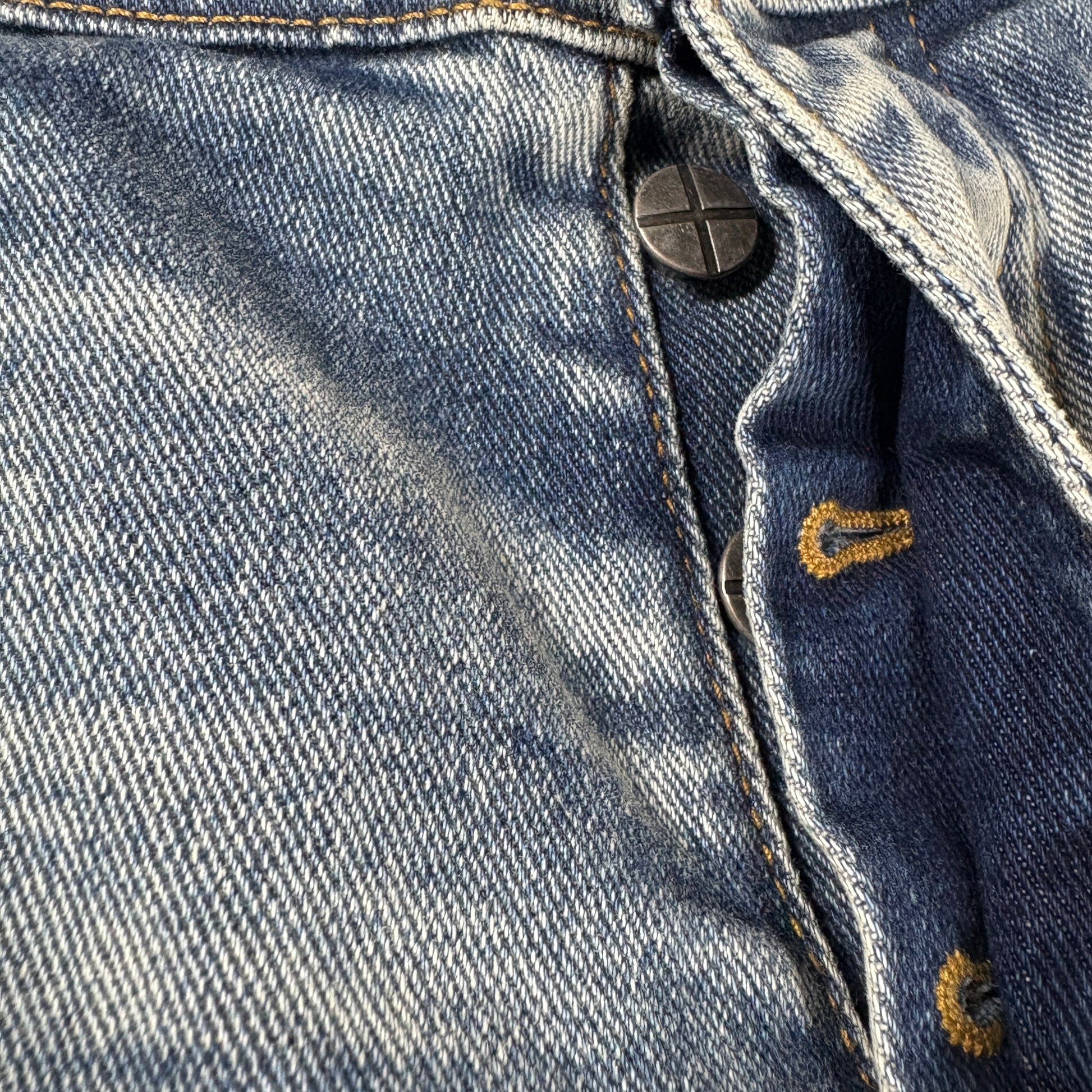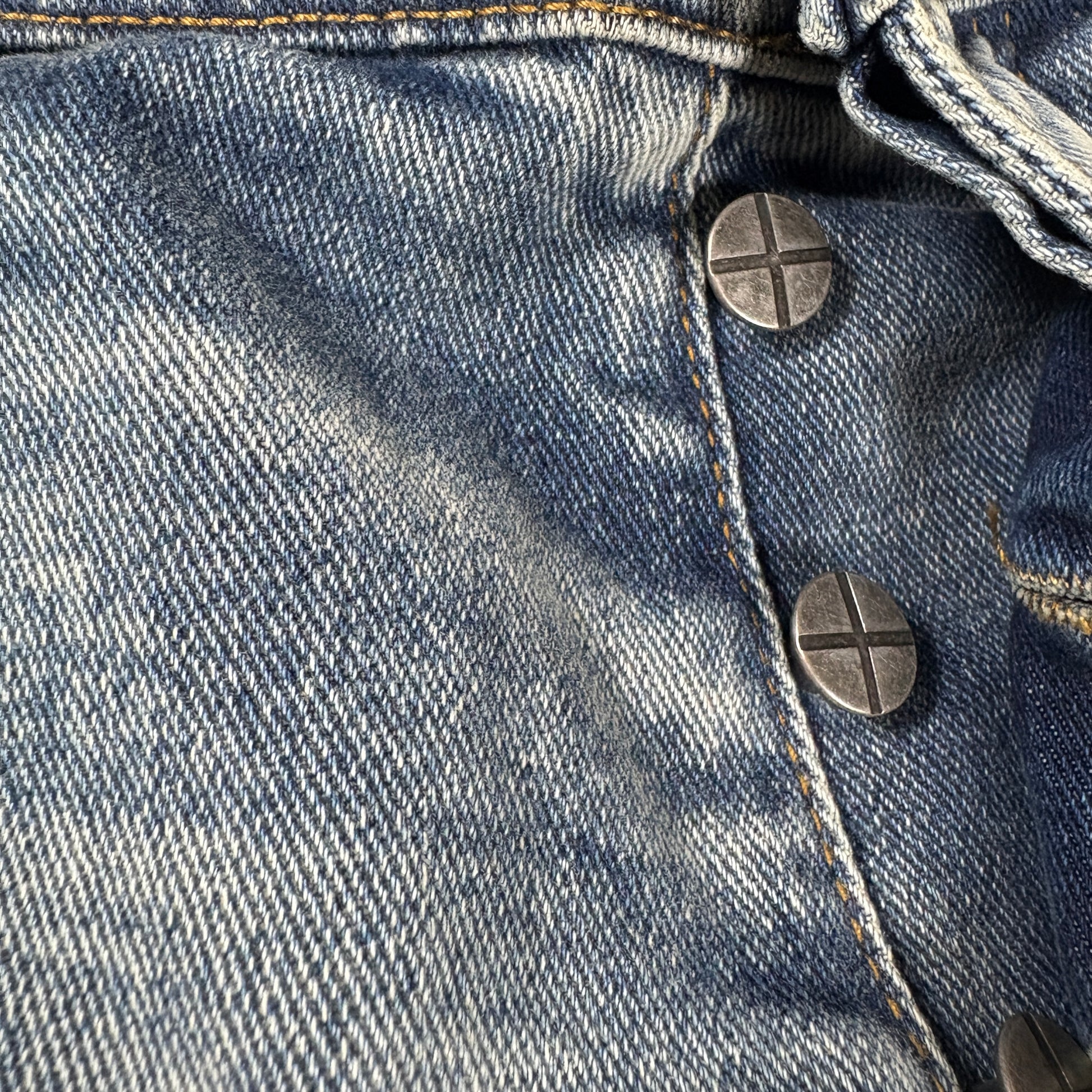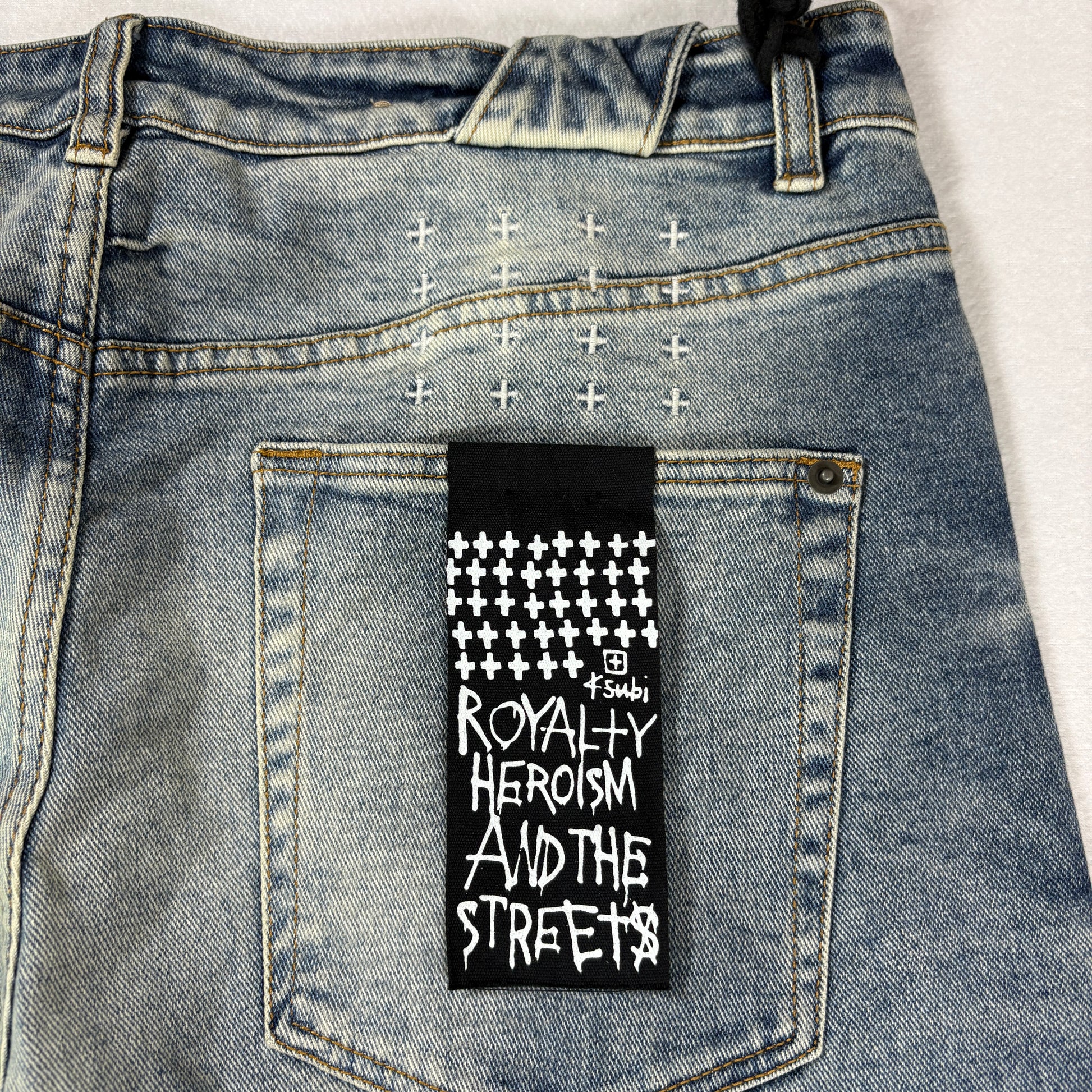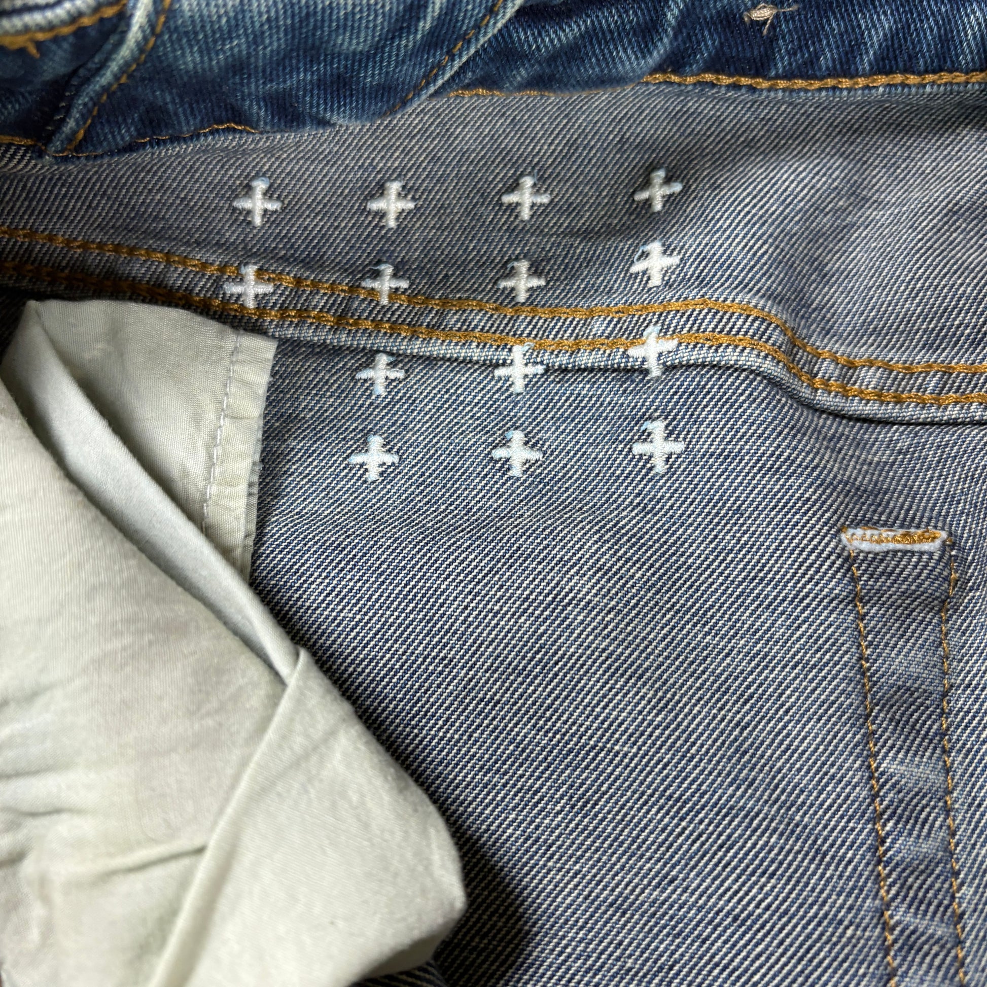 ✓ Ksubi brand, ✓ Mens size 36, ✓ Chitch Pure Dynamite model, ✓ Slim tapered fit, ✓ Light blue wash, ✓ Distressed fading, ✓ Signature rear patch + cross embroidery, ✓ NWT with hang tag, ✓ Premium streetwear denim.