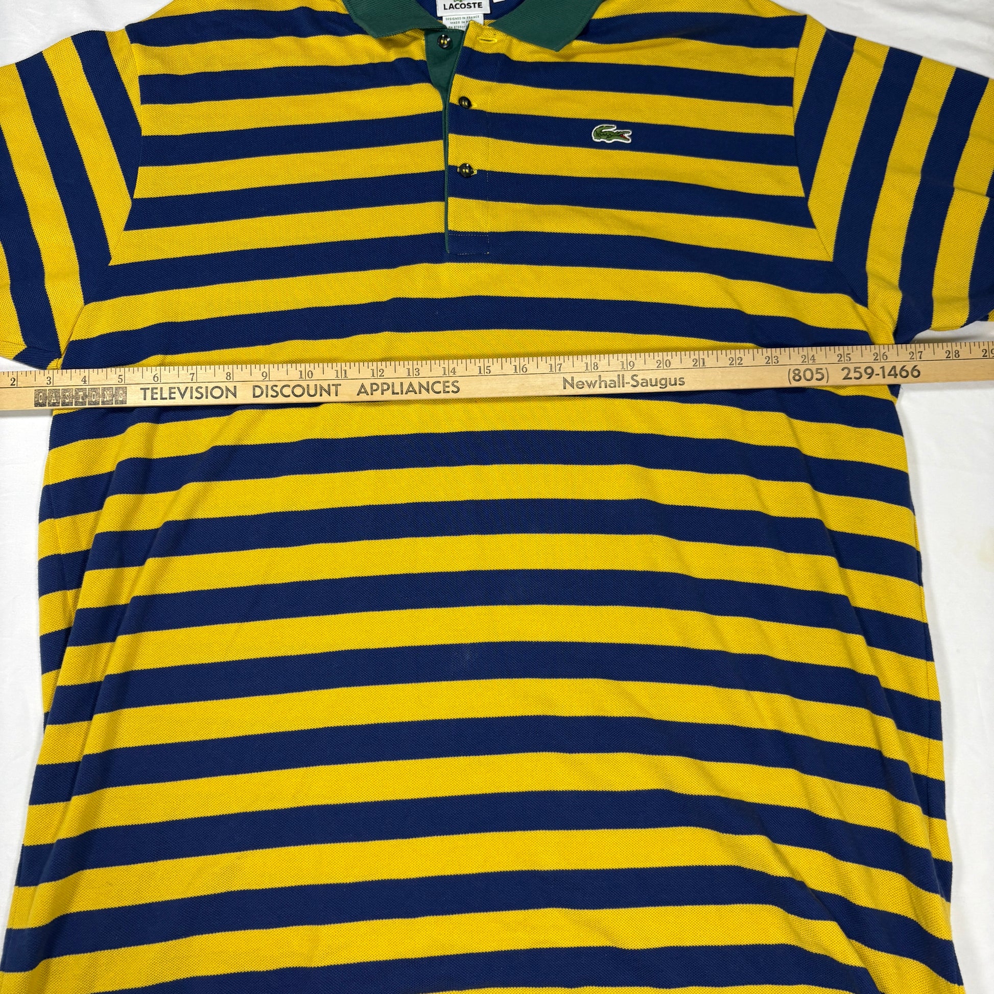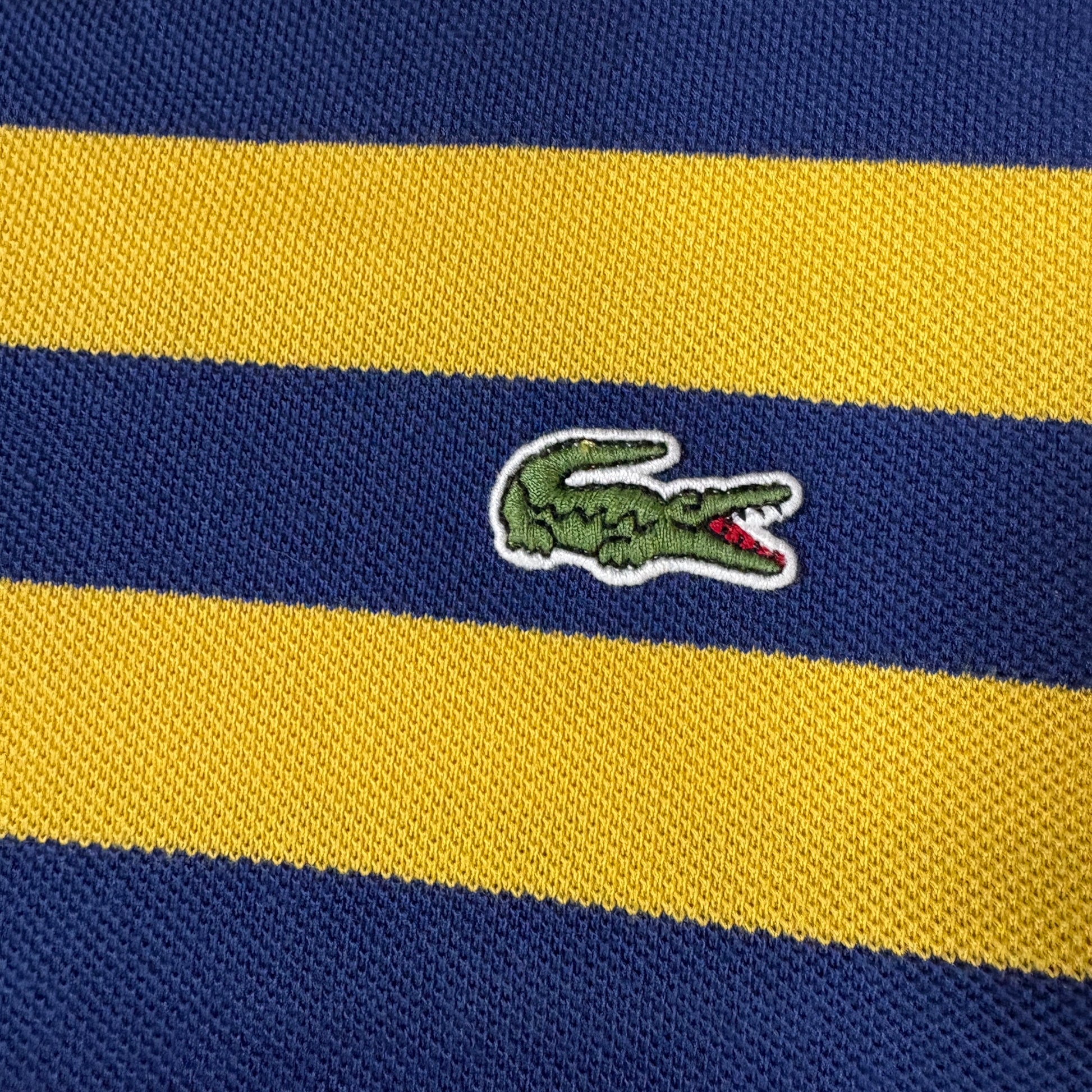 lacoste striped polo, men’s lacoste shirt 8l, preppy casual polo, yellow blue stripe lacoste, vintage style lacoste shirt, lacoste croc logo polo, classic fit men’s polo