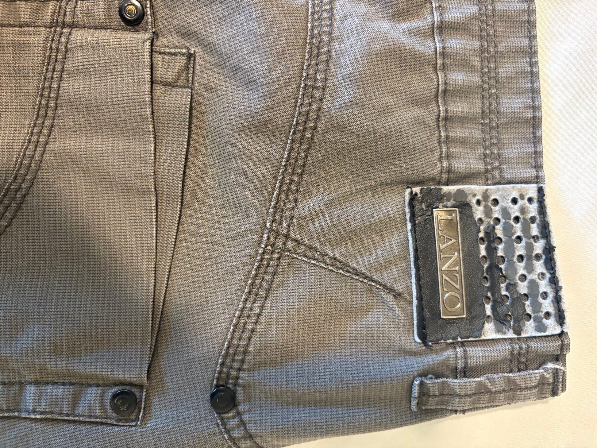 Lanzo men’s gray pants 34x30 casual streetwear modern straight leg jeans stretch cotton blend designer style embossed patch unique detailing durable