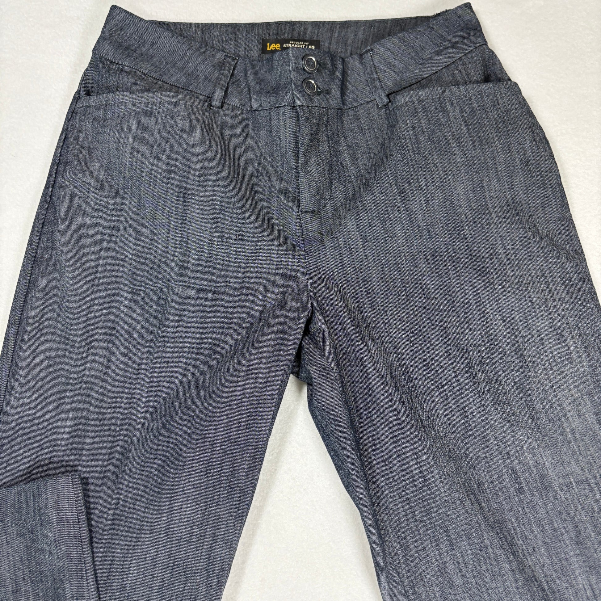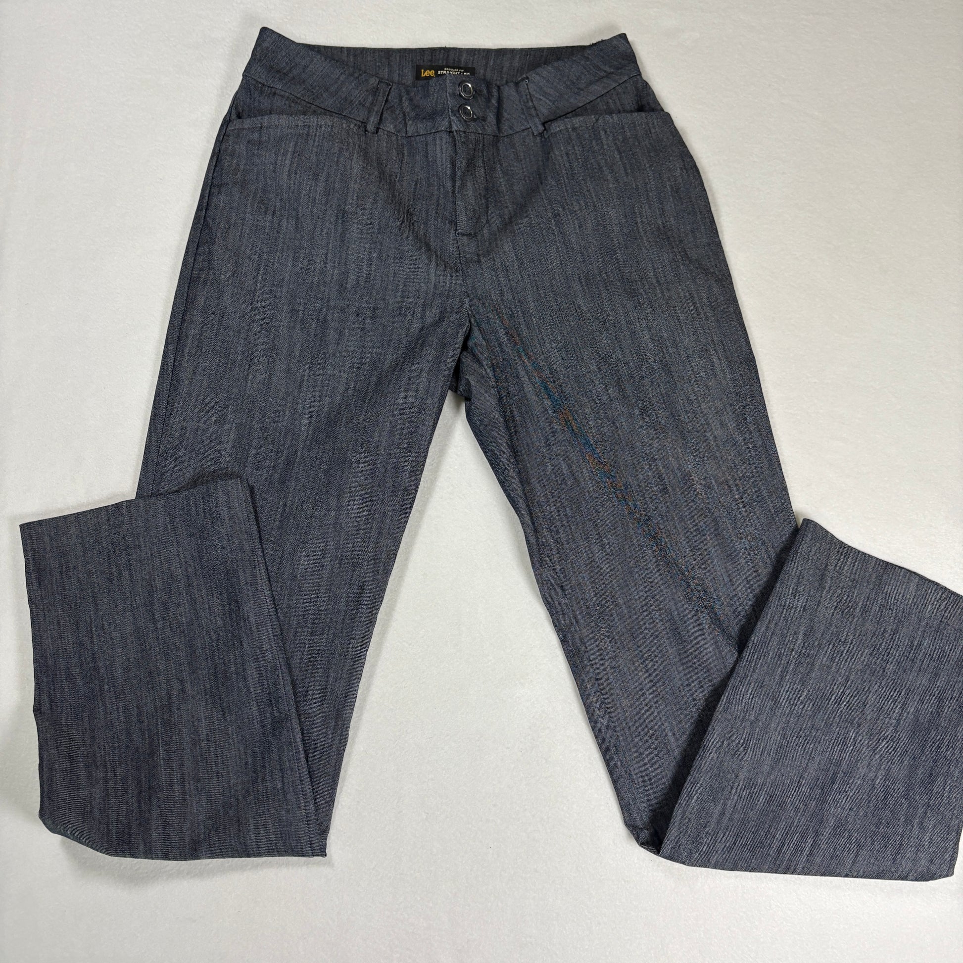 Lee, womens jeans, size 6 short, gray denim, straight leg, stretch, mid rise, slimming, classic