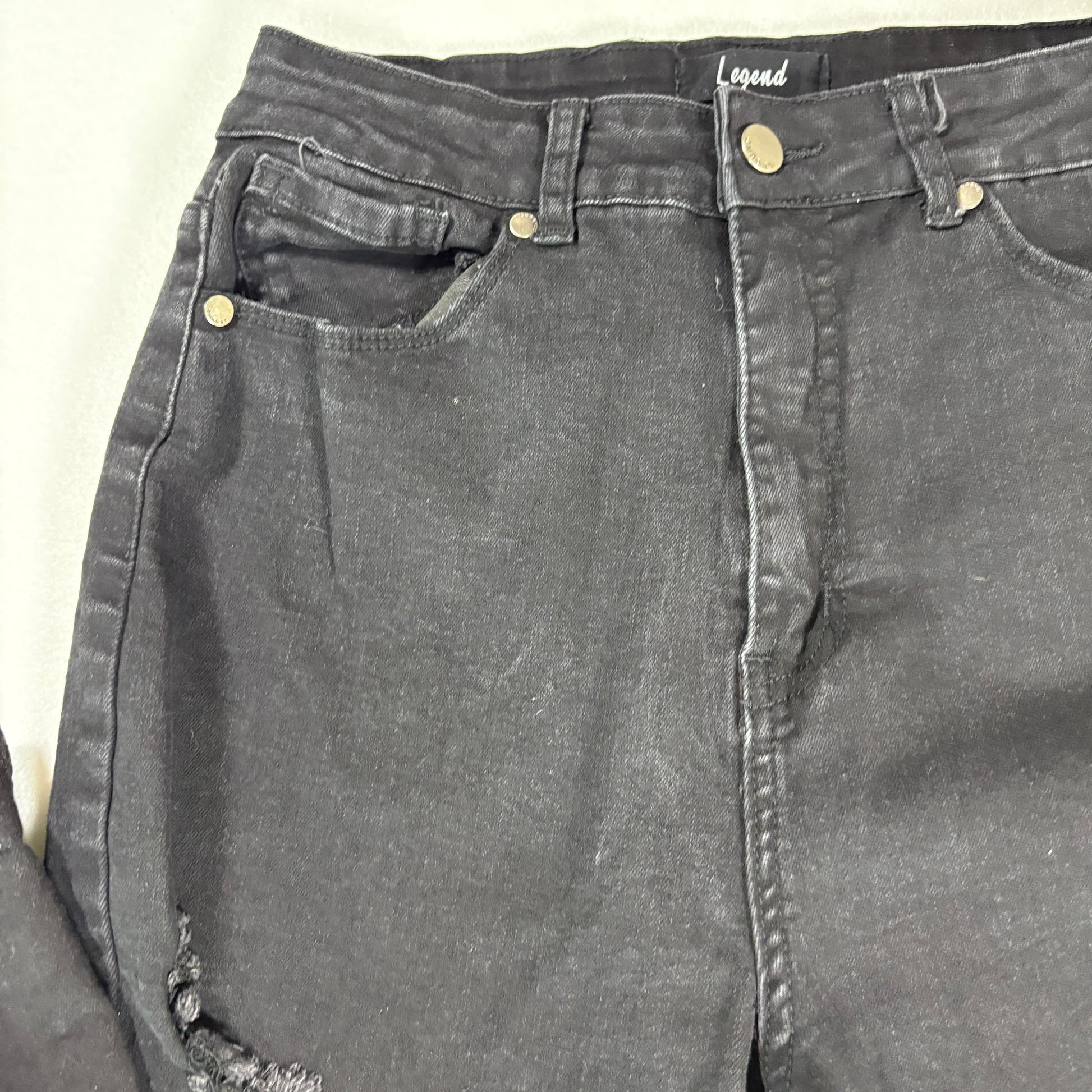 Legend jeans, distressed denim, black jeans, high rise pants, women’s size 7, stretch jeans, trendy style