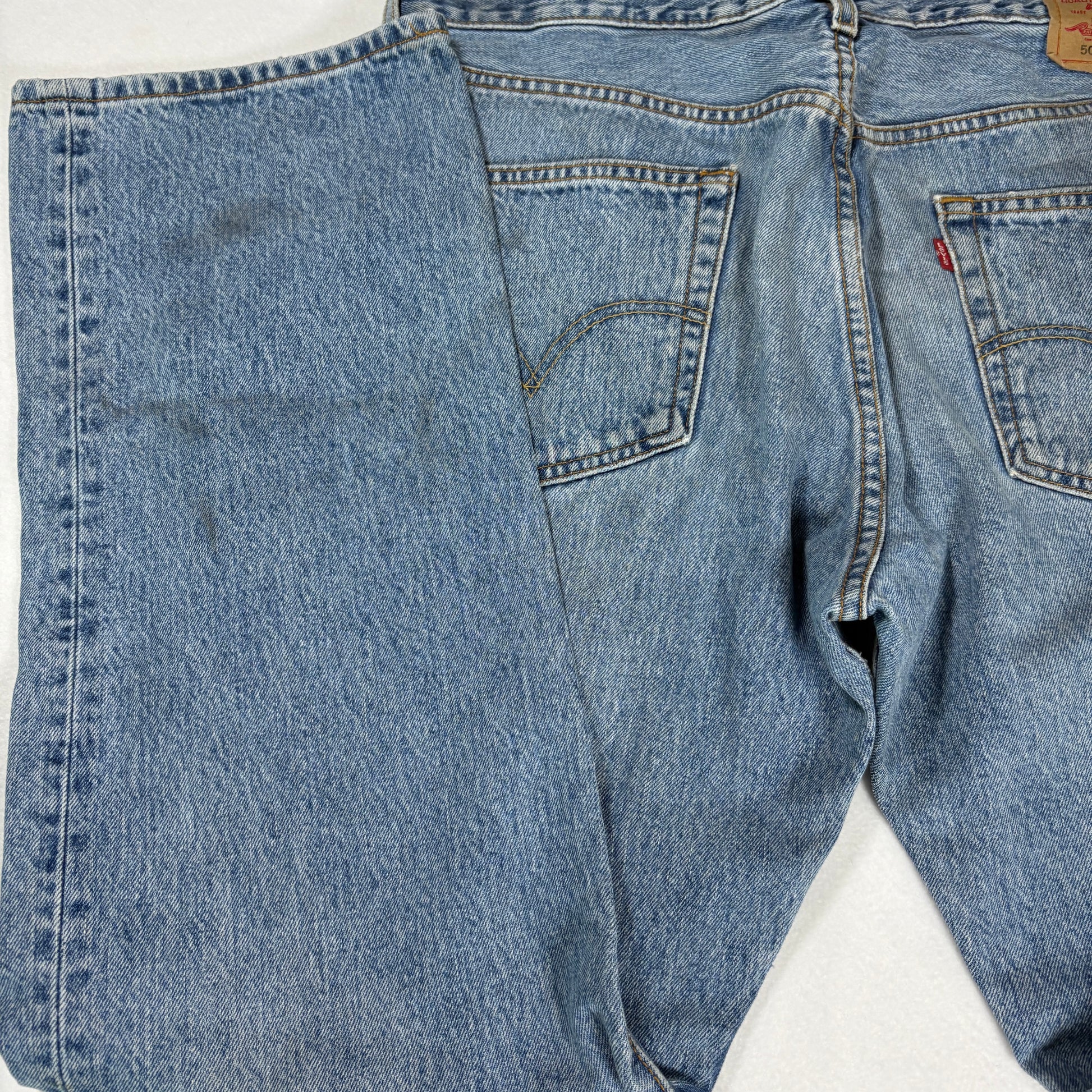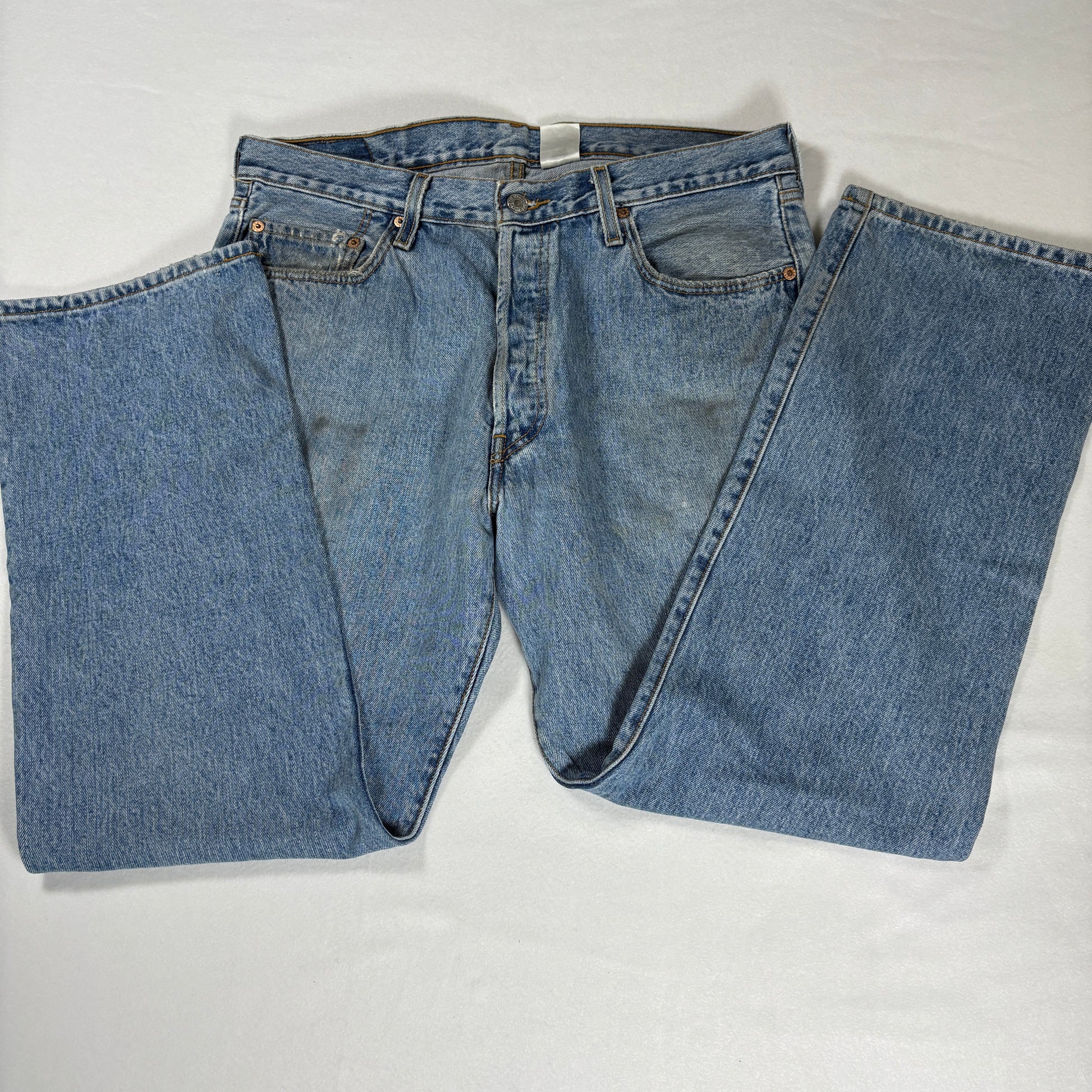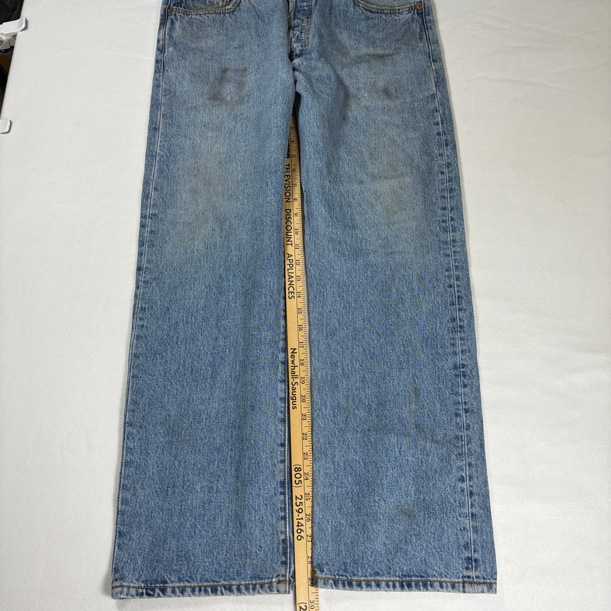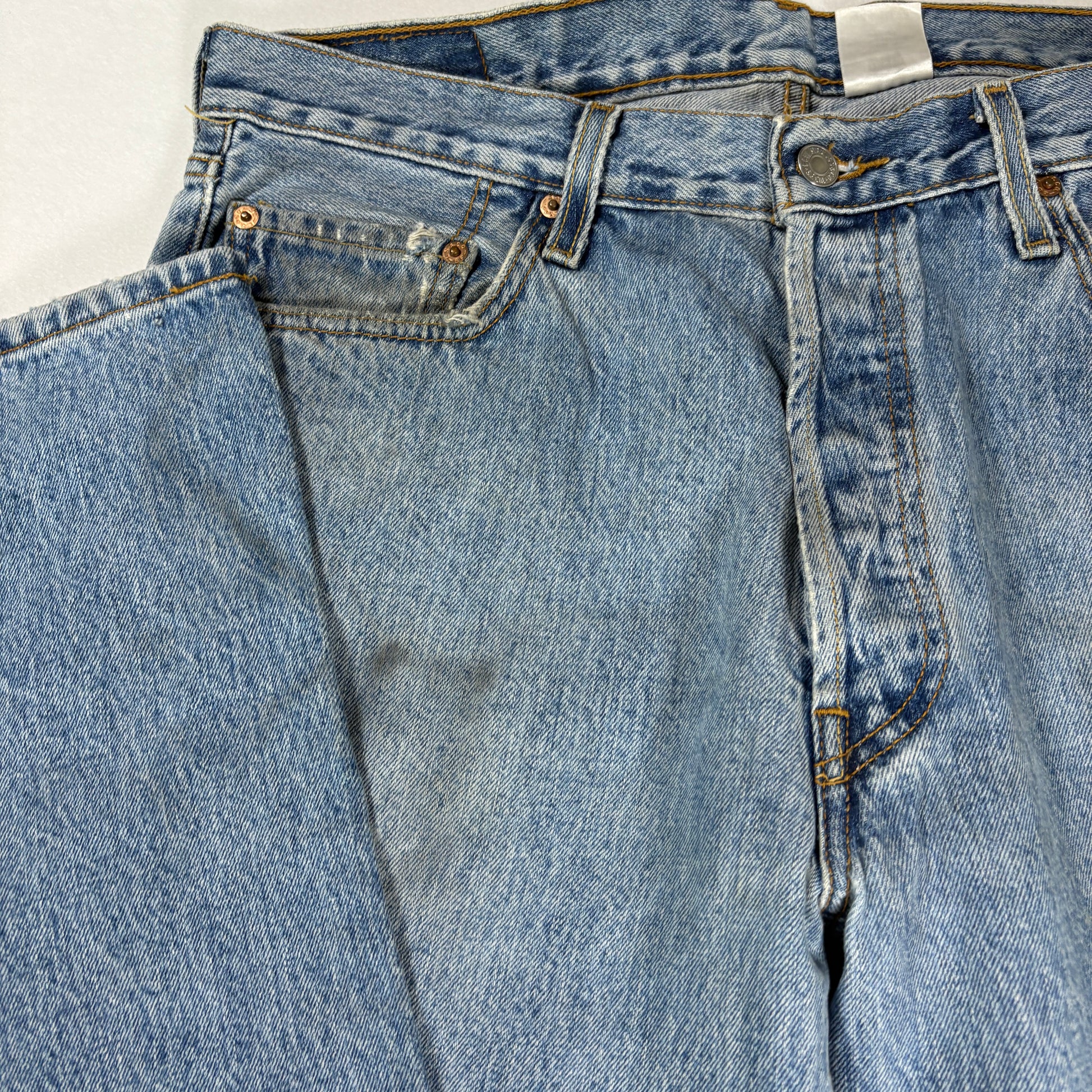 Levi’s 501 Jeans Men 36x30 Blue Denim Button Fly Vintage Distressed Stained USA Style