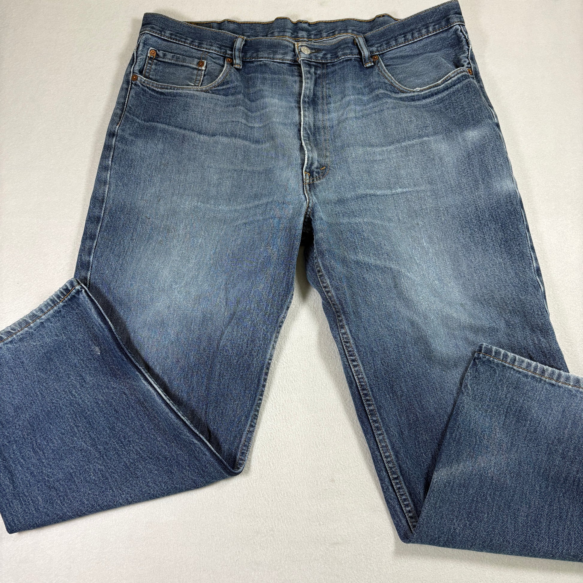 Levi’s 501 Mens Jeans 42x30 Blue Distressed Button Fly Straight Leg