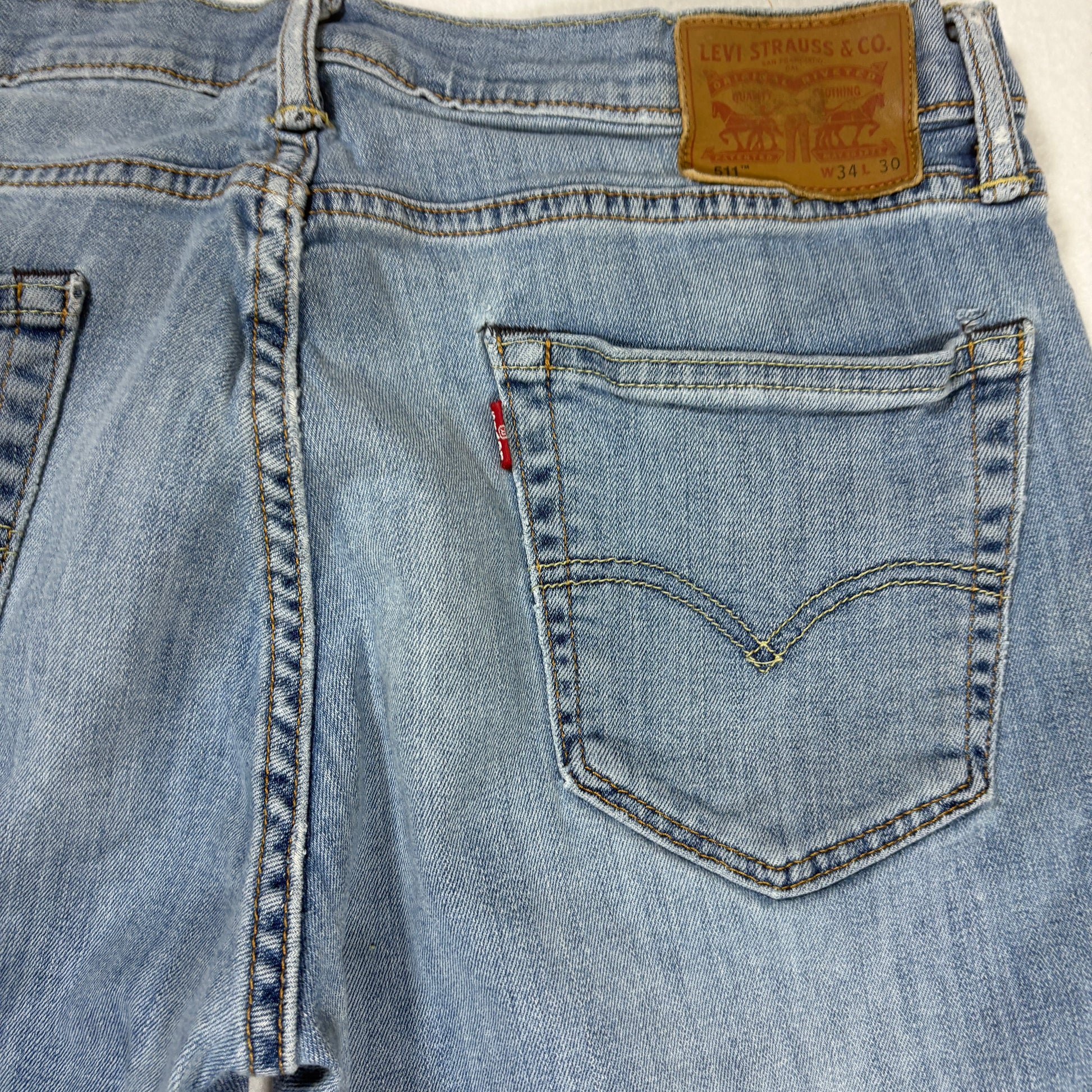 levi’s 511 jeans, men’s slim fit denim, light wash jeans 34x30, levi’s stretch pants, casual denim blue jeans