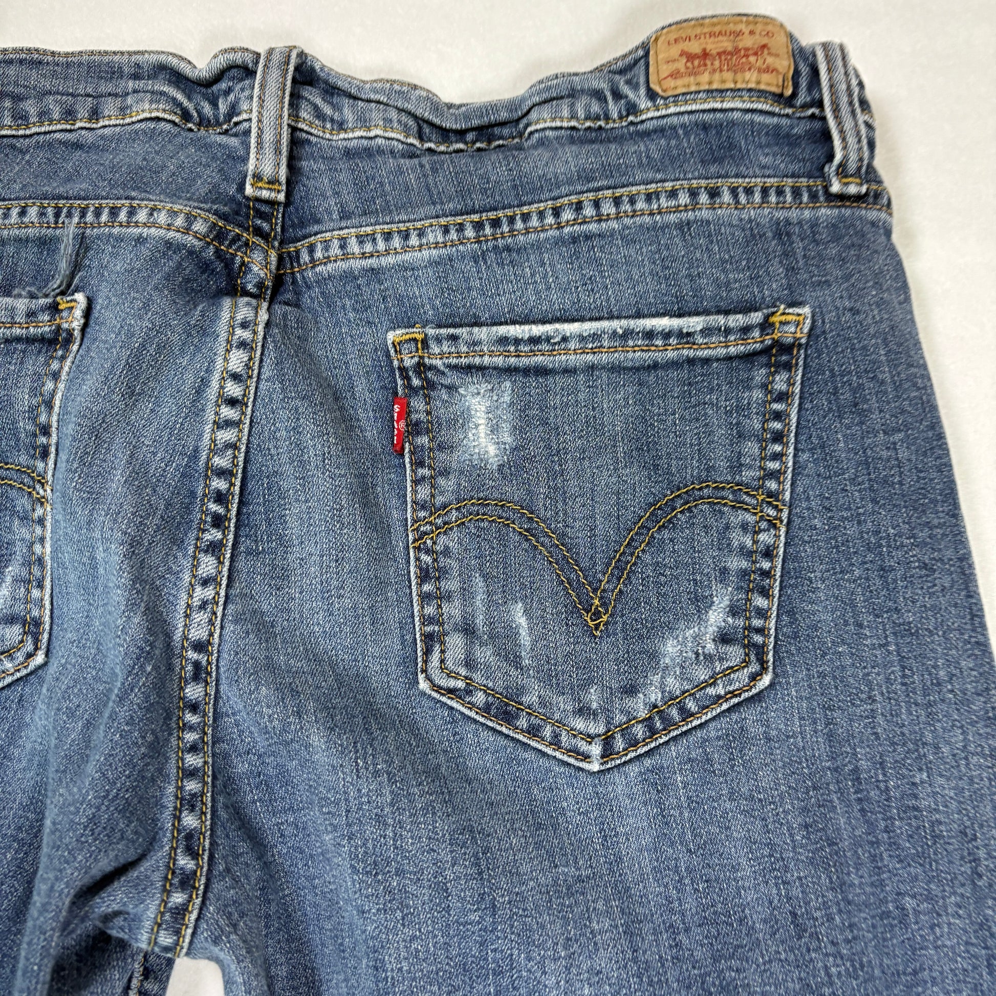 Levi’s jeans, women’s skinny, distressed ripped denim, medium wash stretch jeans, size 9