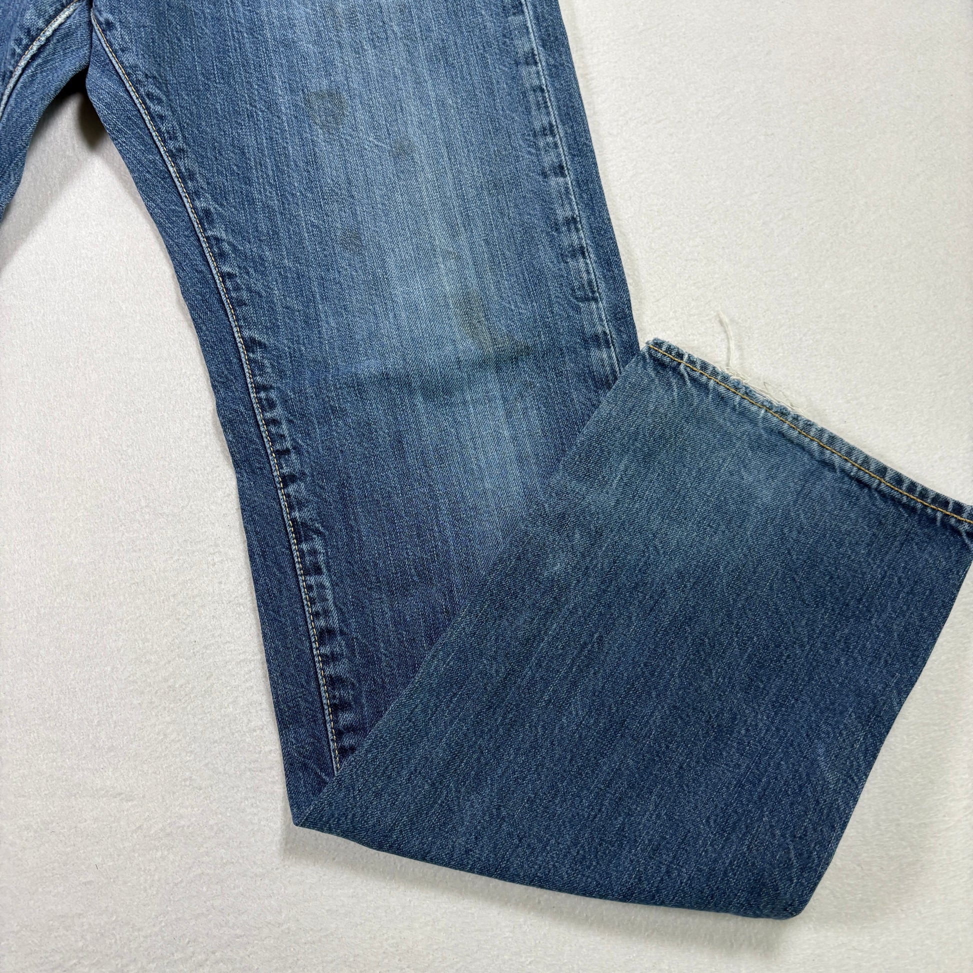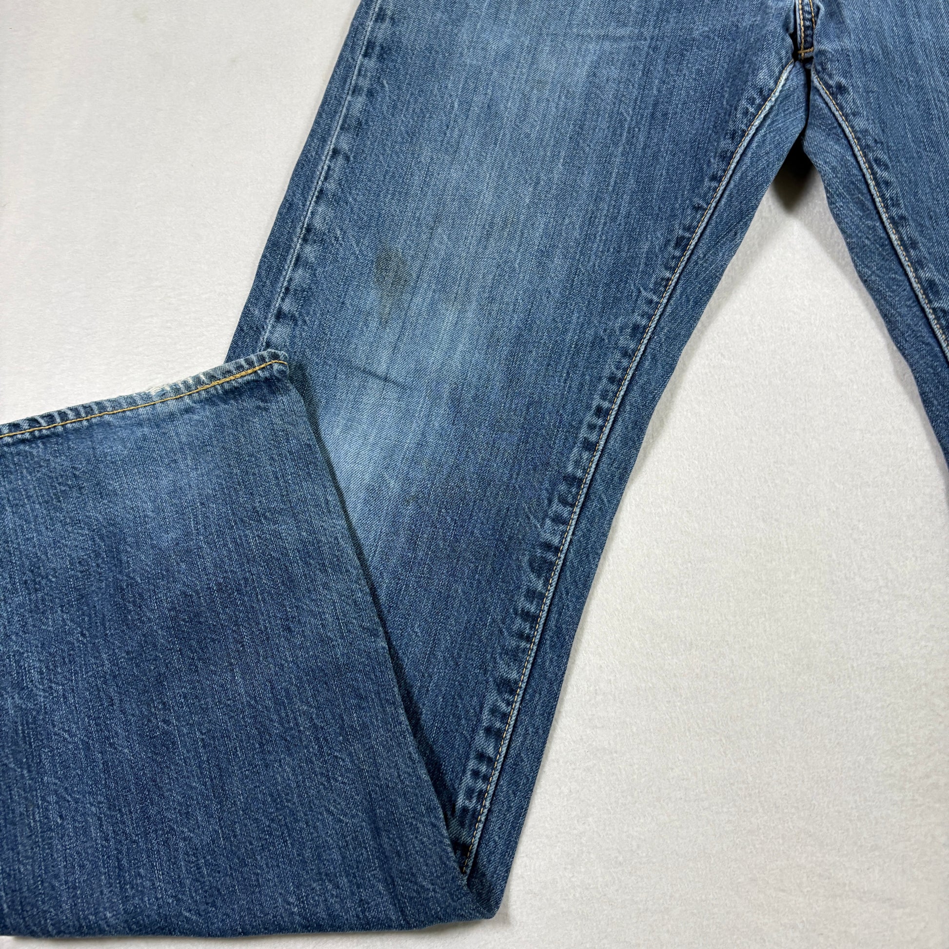 ✓ Details: Classic 5-pocket, zip fly, leather patch, vintage fade
