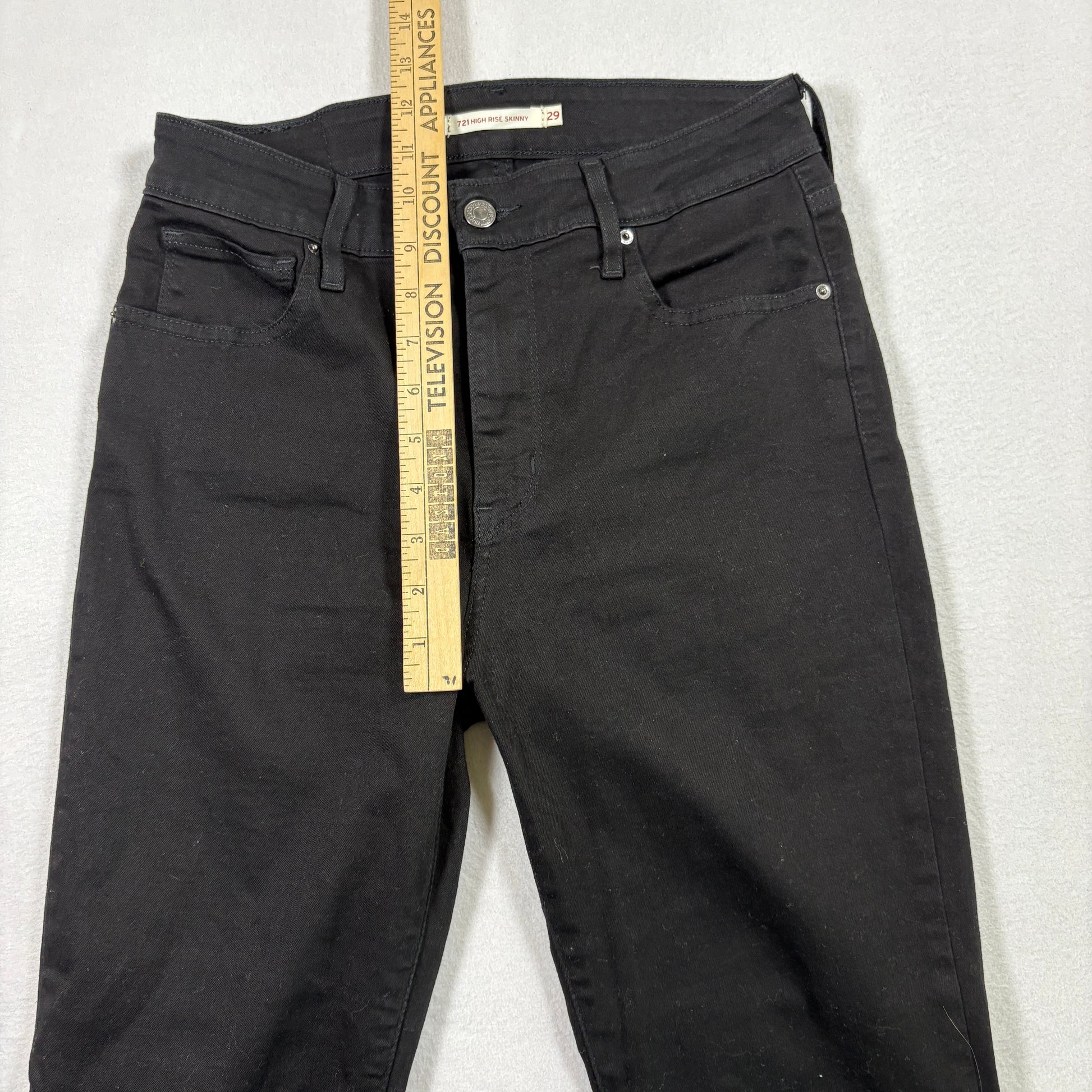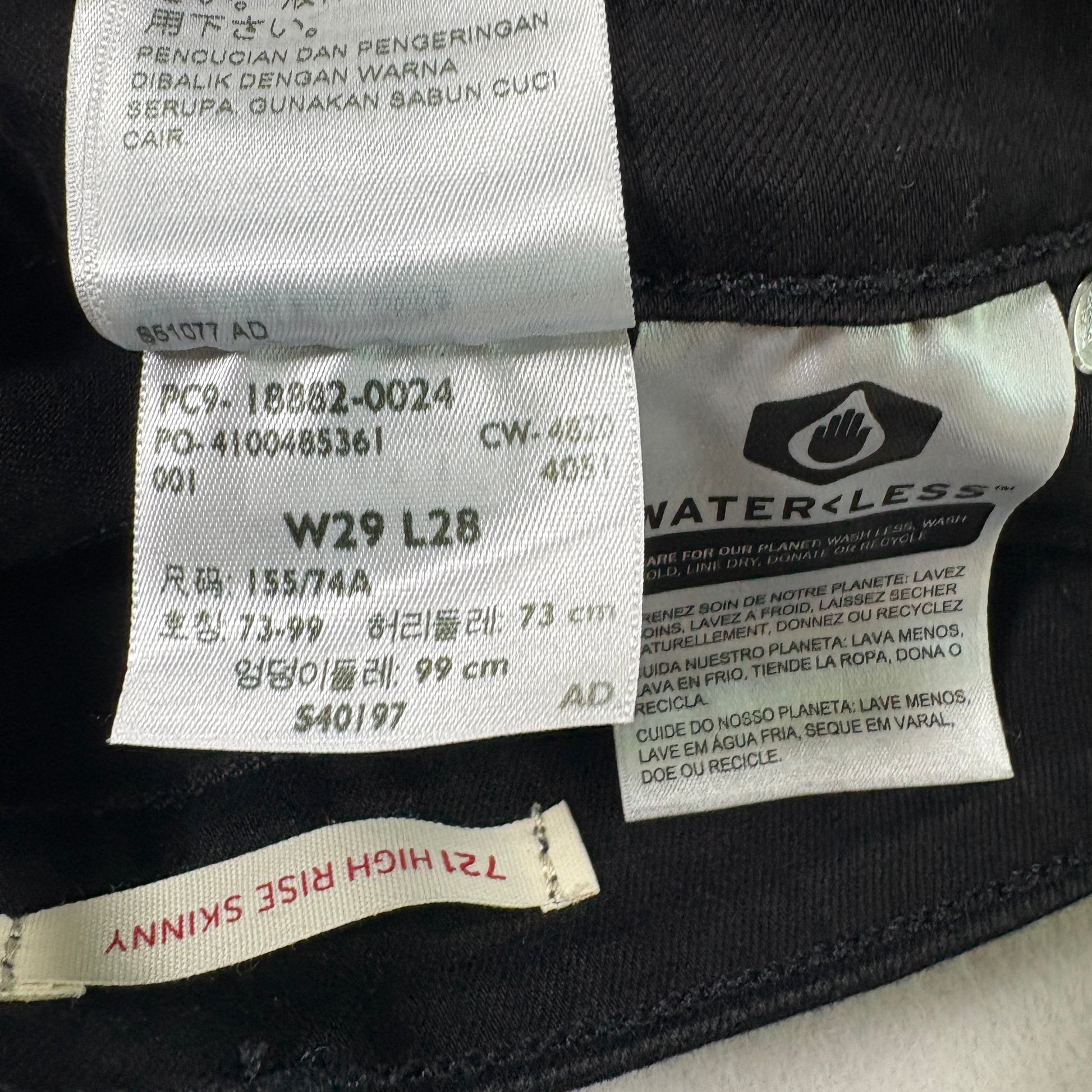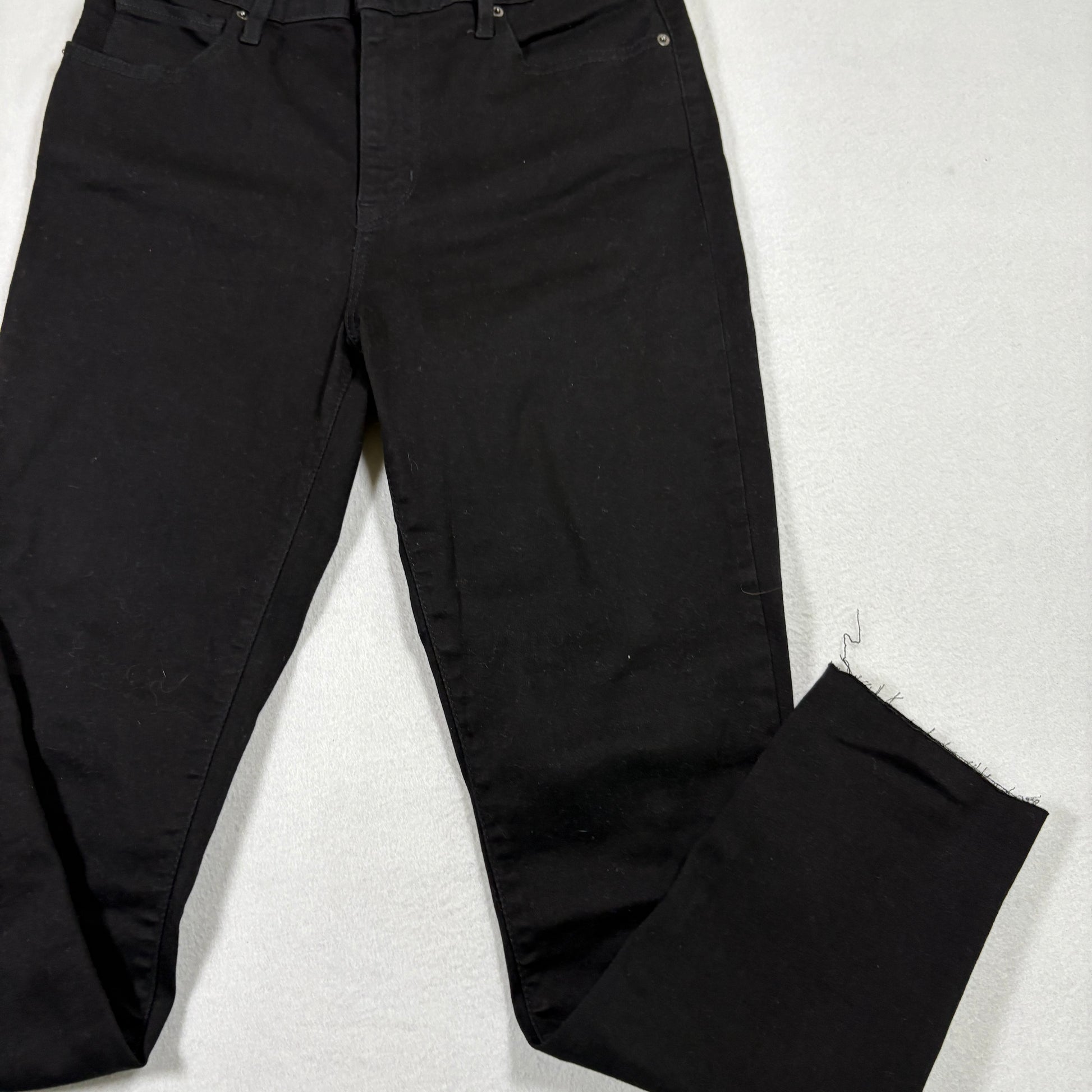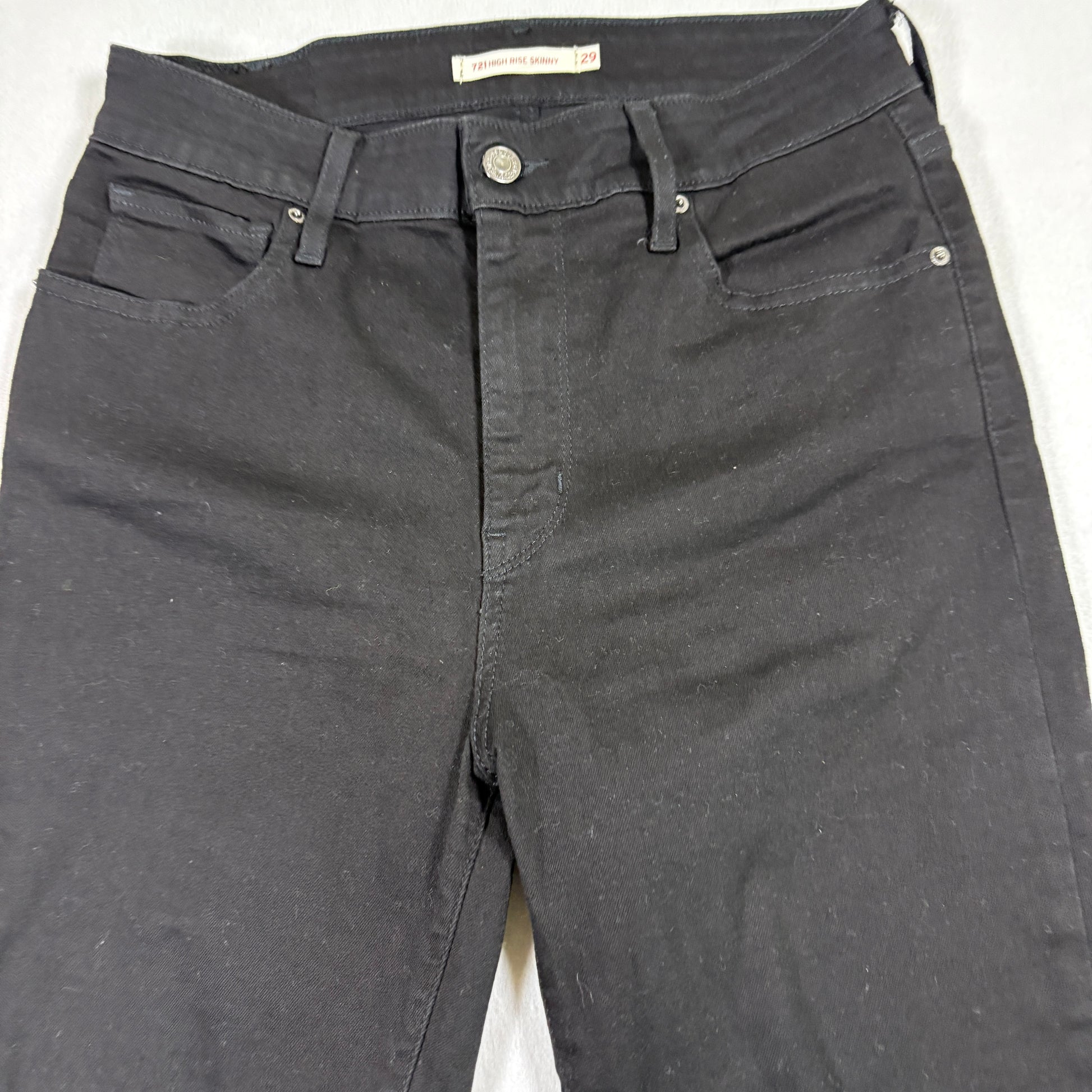 levi’s jeans, womens black denim, 721 high rise skinny, size 29x28, raw hem jeans, grunge y2k jeans, stretchy denim, levi’s waterless, vintage inspired