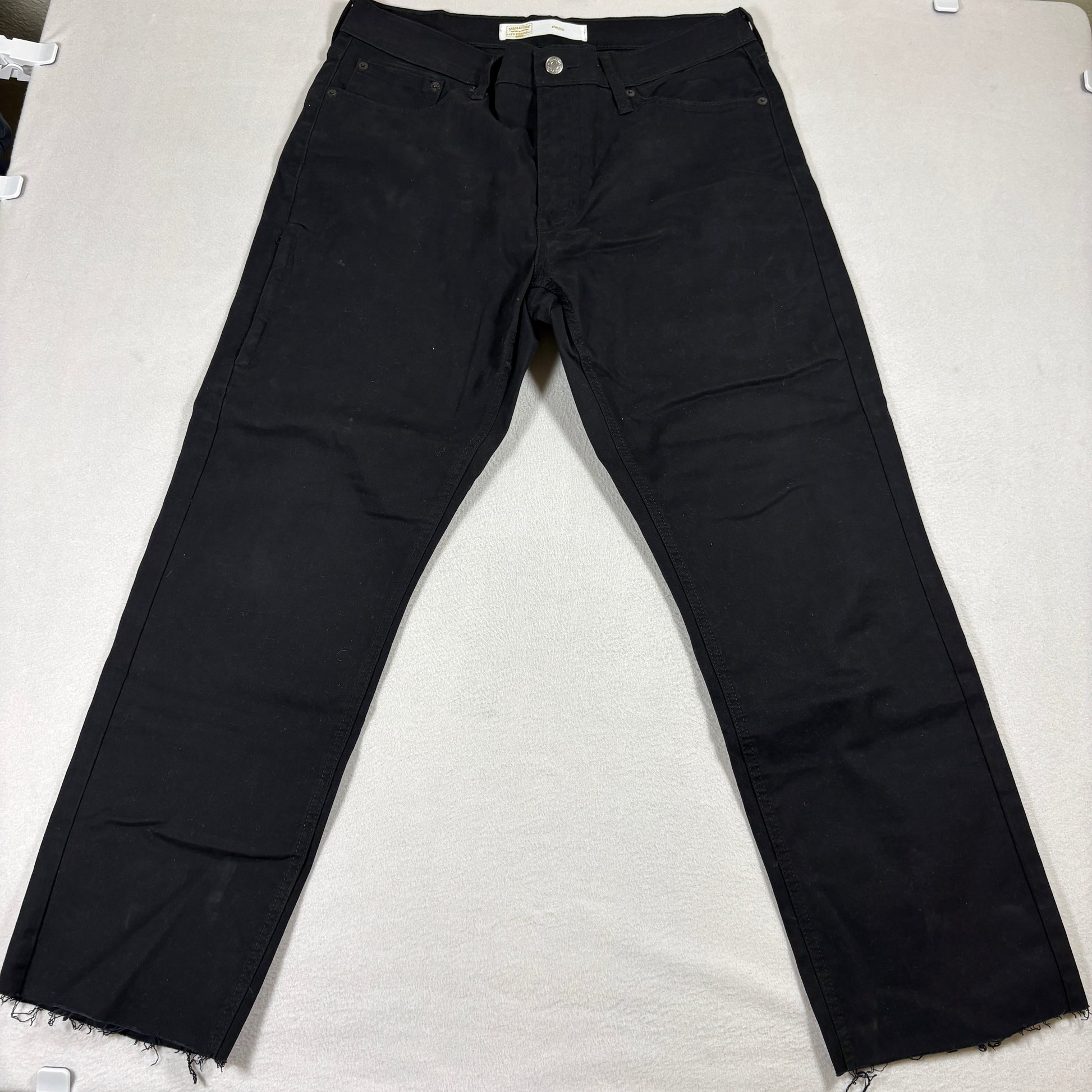 Levi Strauss Signature Jeans Mens 33x32 Black Denim Athletic Fit Frayed Hem
