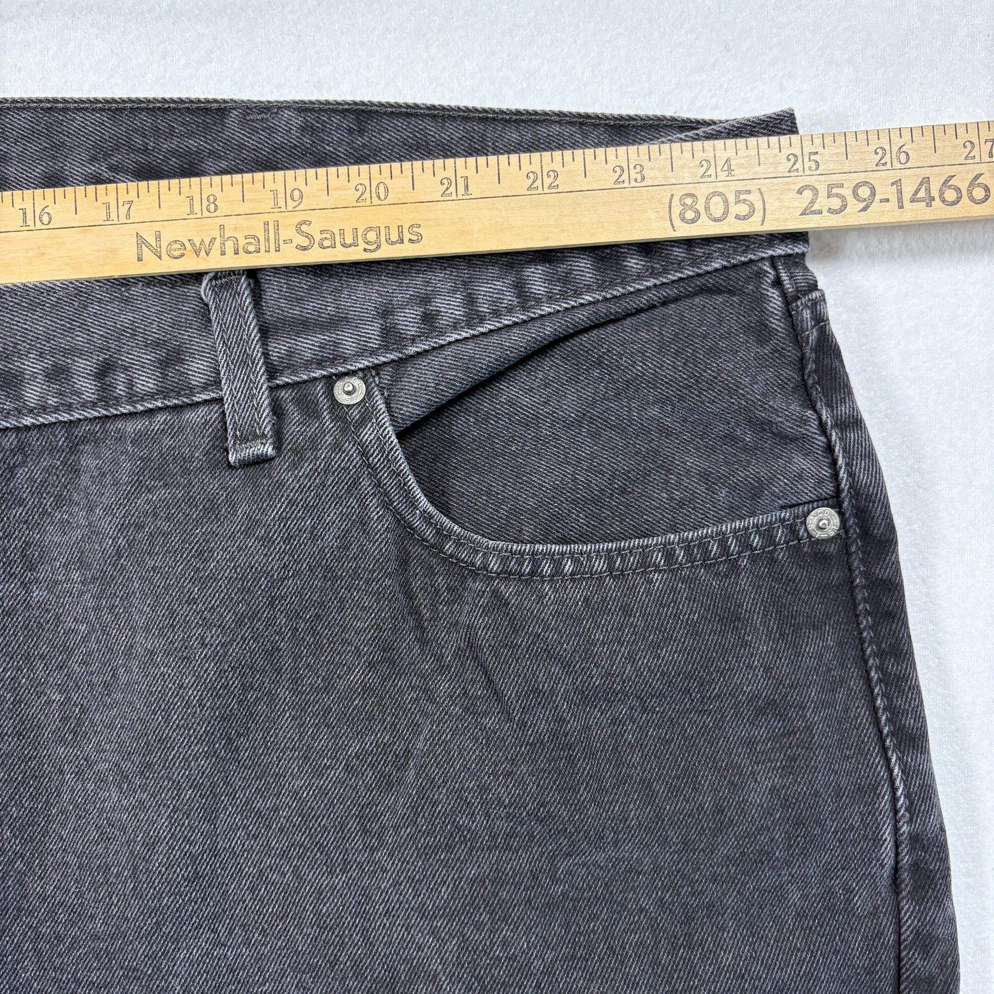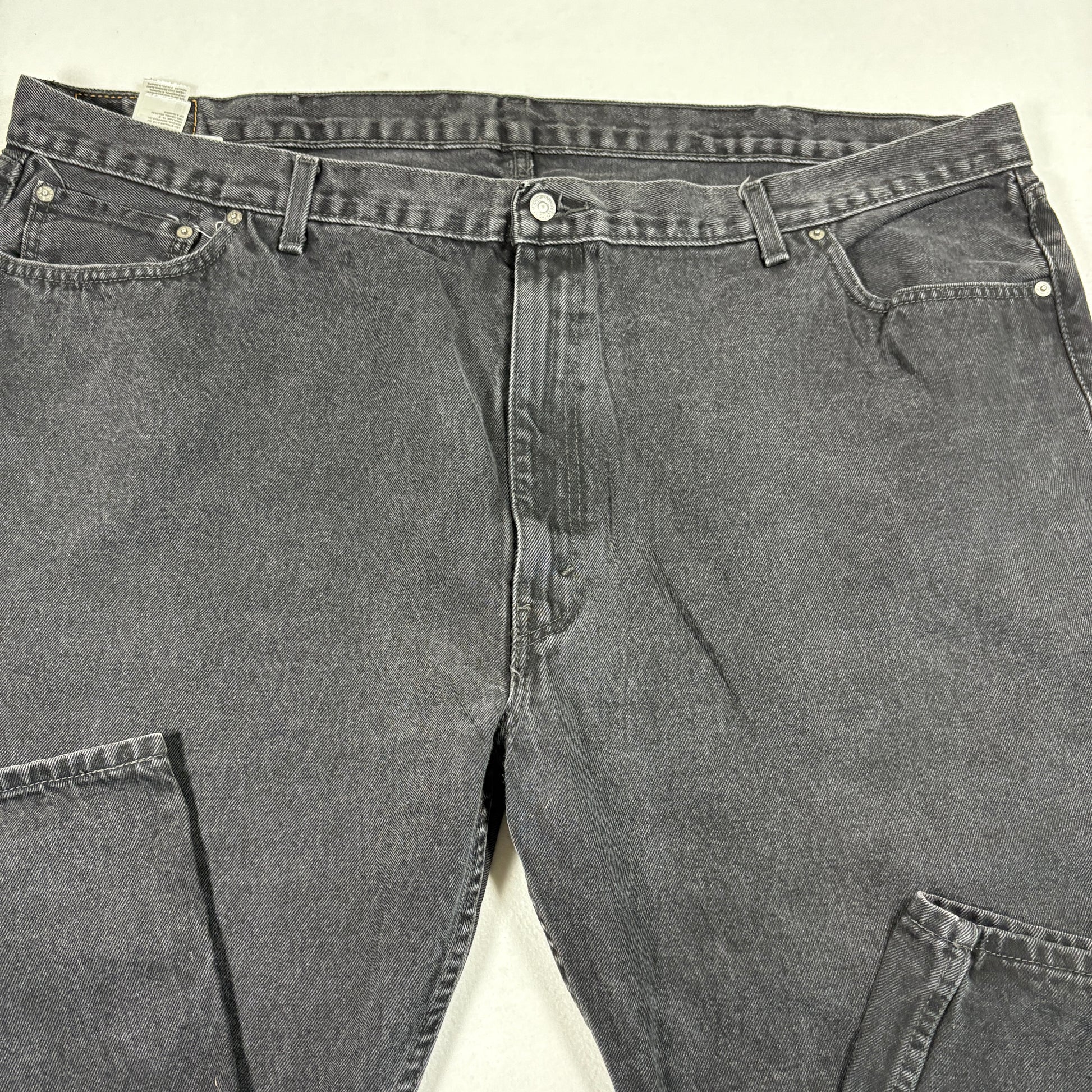 Levi’s 505 jeans in a hard-to-find big men’s size with a true vintage Y2K grunge aesthetic. The classic black wash pairs easily with tees, flannels, or hoodies, making these a staple piece for both retro and modern fits. Large sizes like this move quickly thanks to their rarity and comfort.