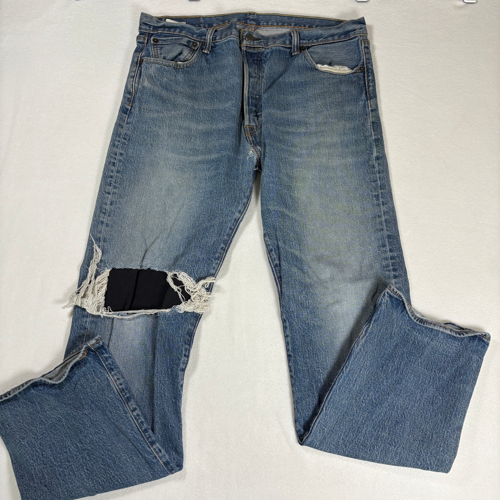 levis mens jeans, ripped denim, distressed grunge jeans, 90s y2k vintage baggy 36x32