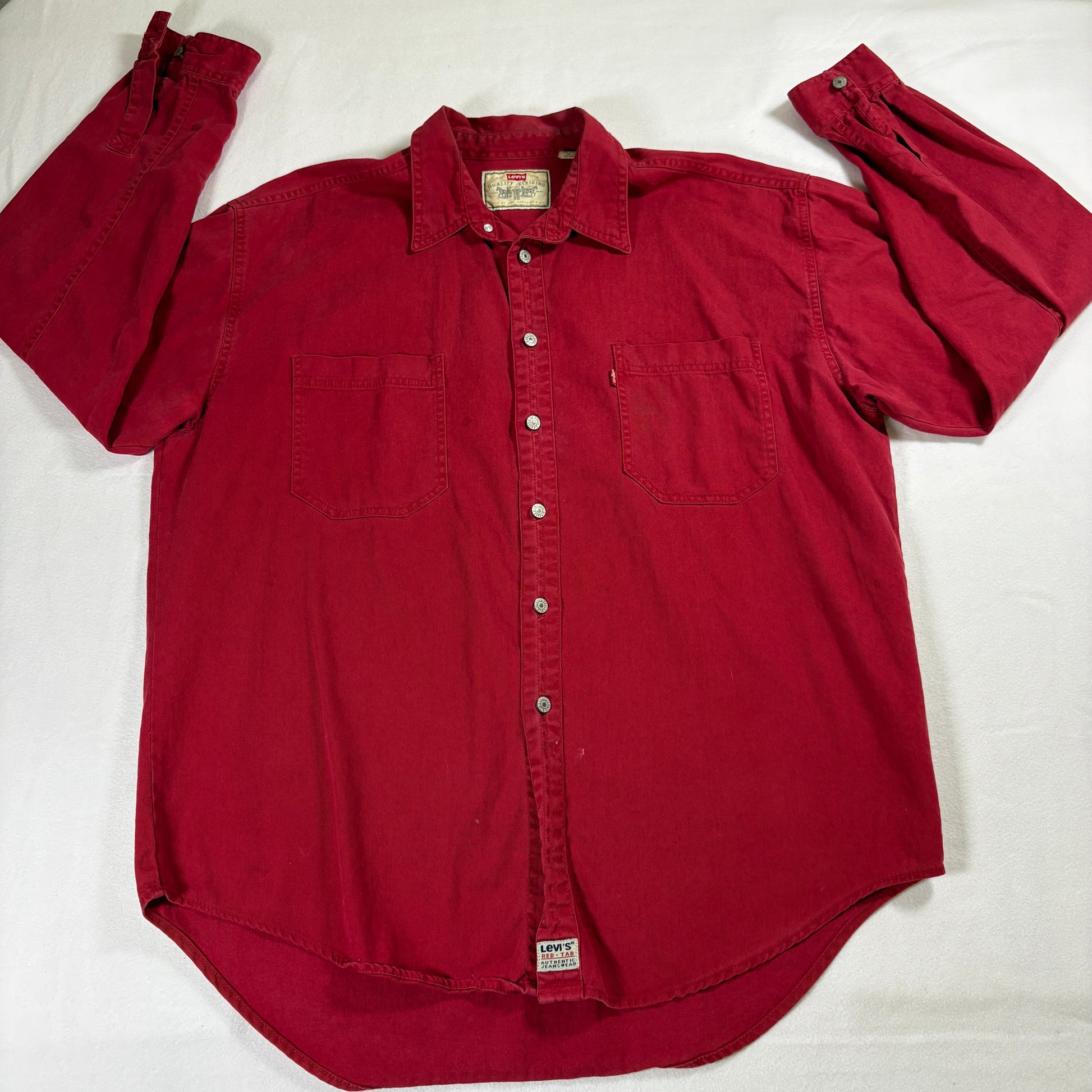 Levis Shirt Mens XL Red Button Up Denim Western Casual Vintage Style Long Sleeve