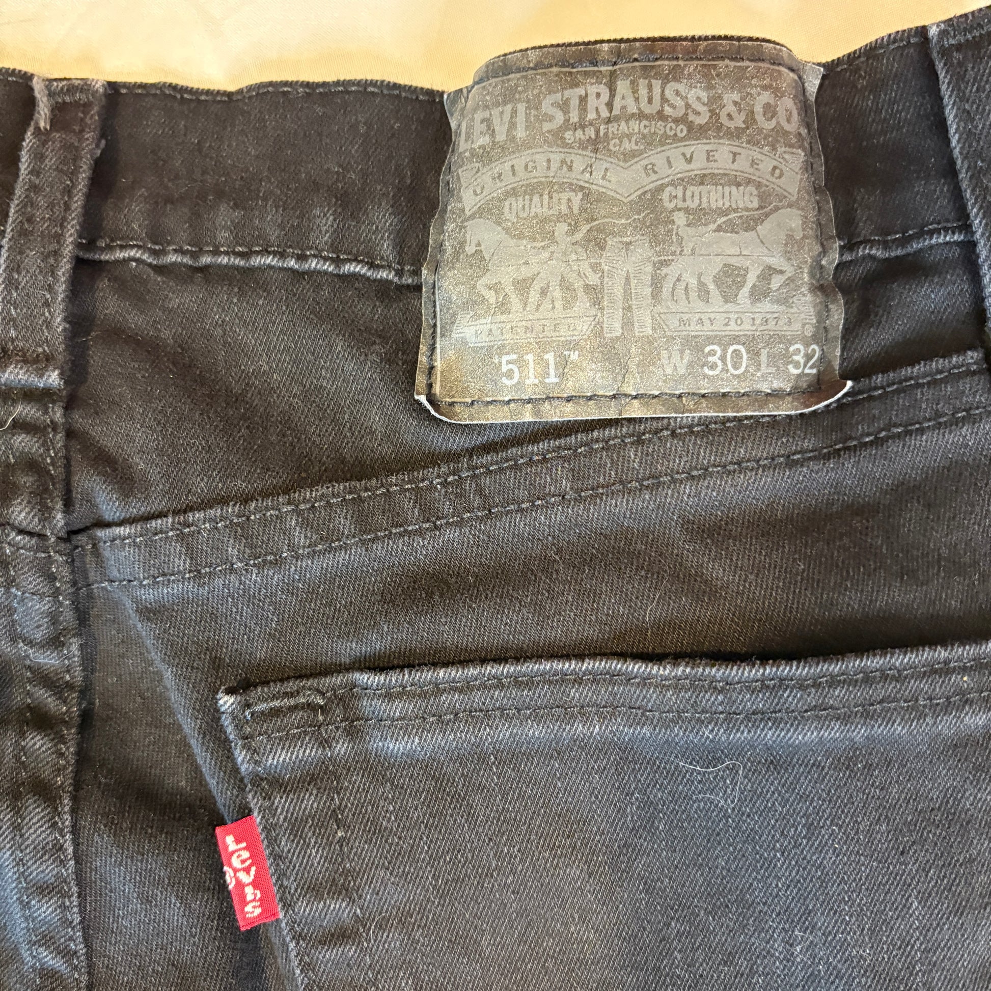 Levi’s WaterLess jeans, black men’s denim, W30 L32 slim jeans, straight leg jeans, eco-friendly jeans, Levi’s black jeans, men’s size 30x32 denim, Waterless process jeans, sustainable clothing