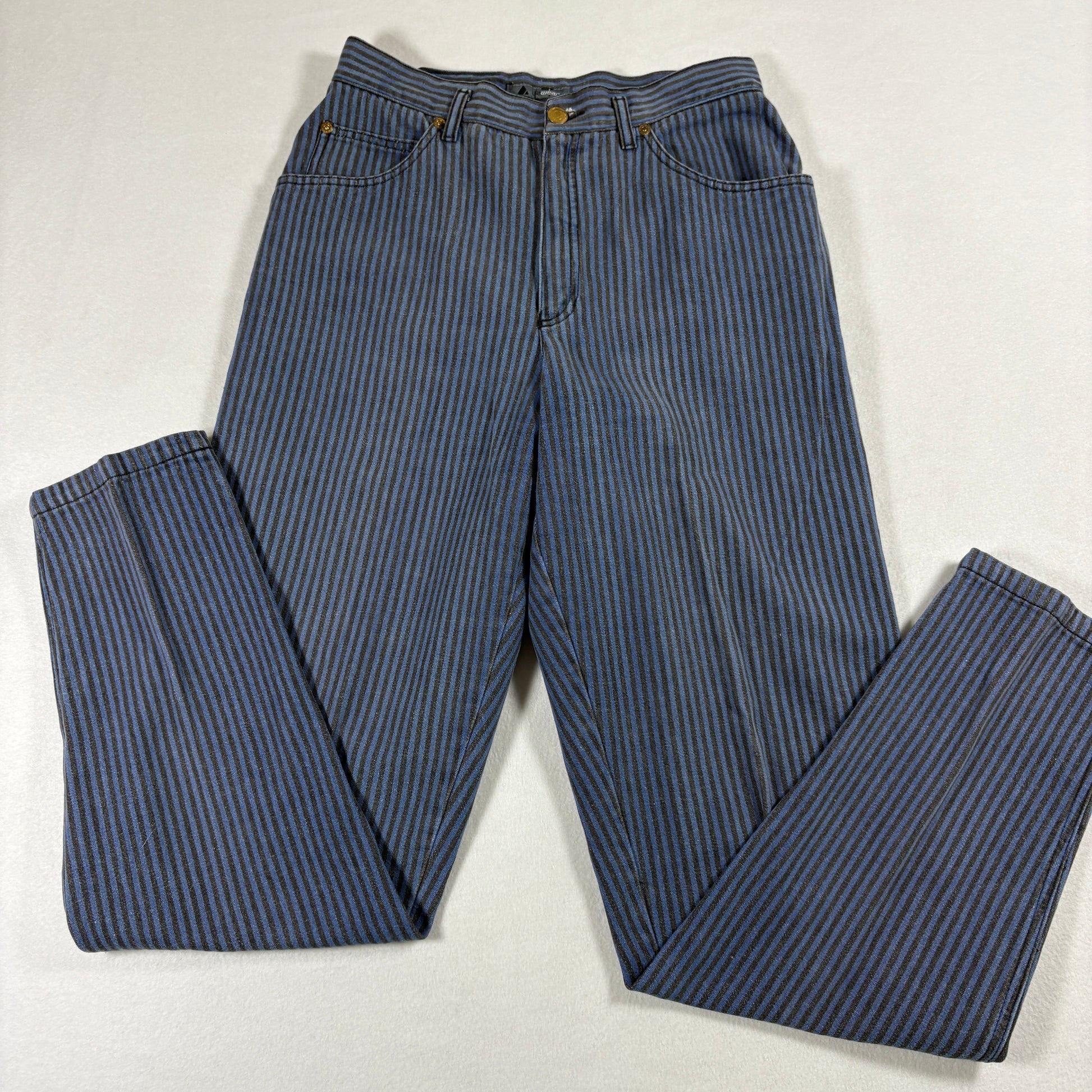 Lizwear Womens Vintage Jeans 12 Blue Black Stripe High Rise 90s Y2K Grunge Denim