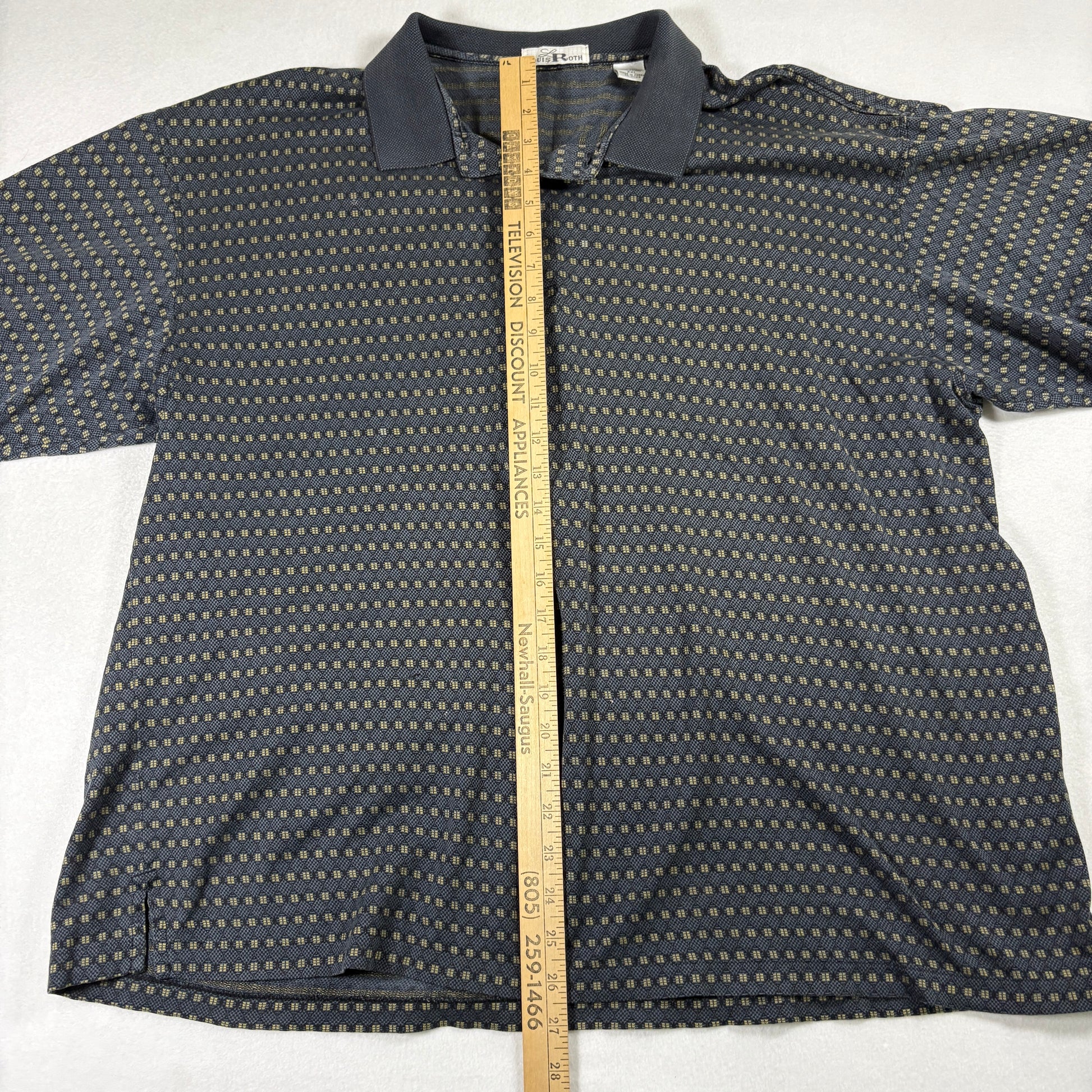 Louis Roth Mens Polo Shirt XXL Black Gold Pattern 90s Vintage Made in Korea
