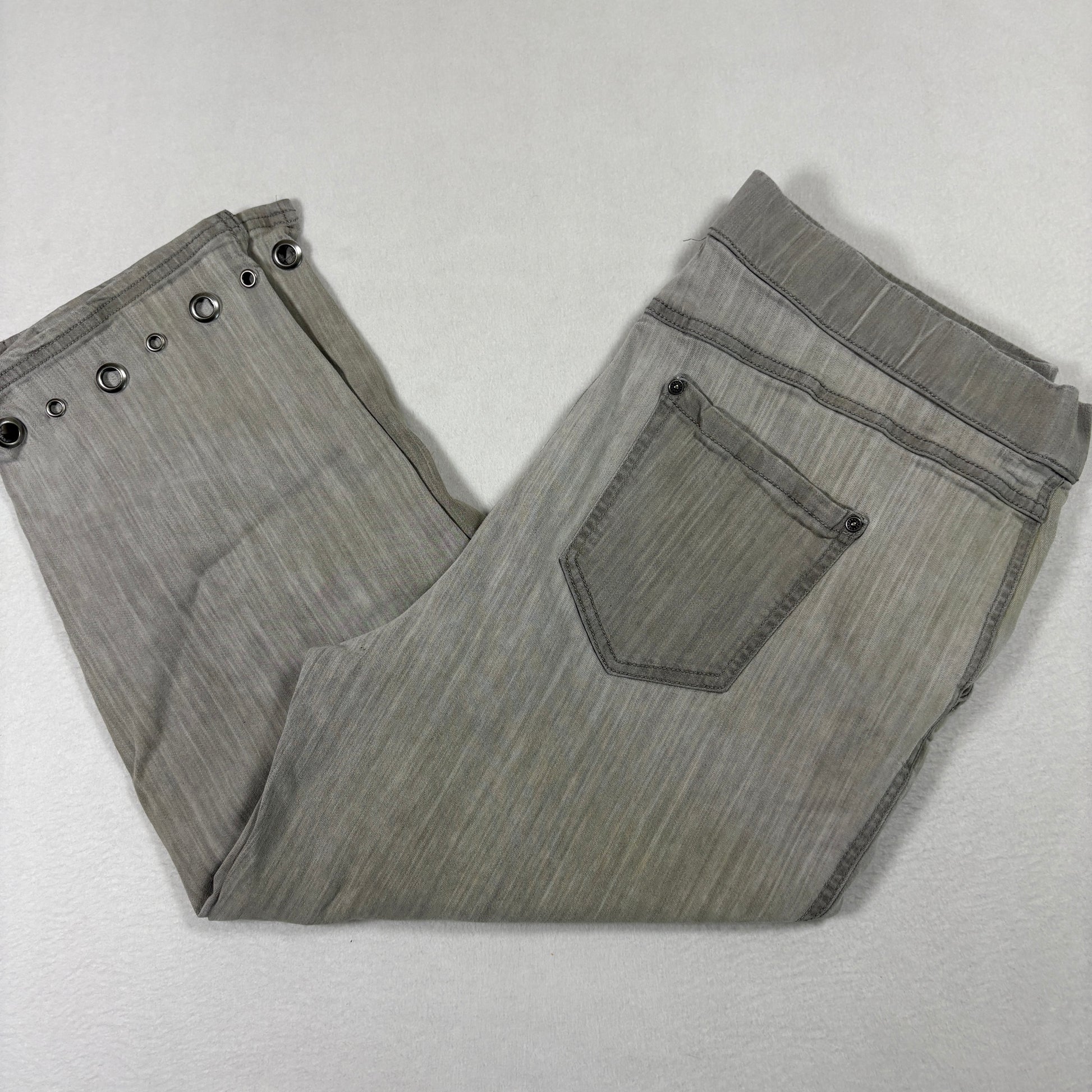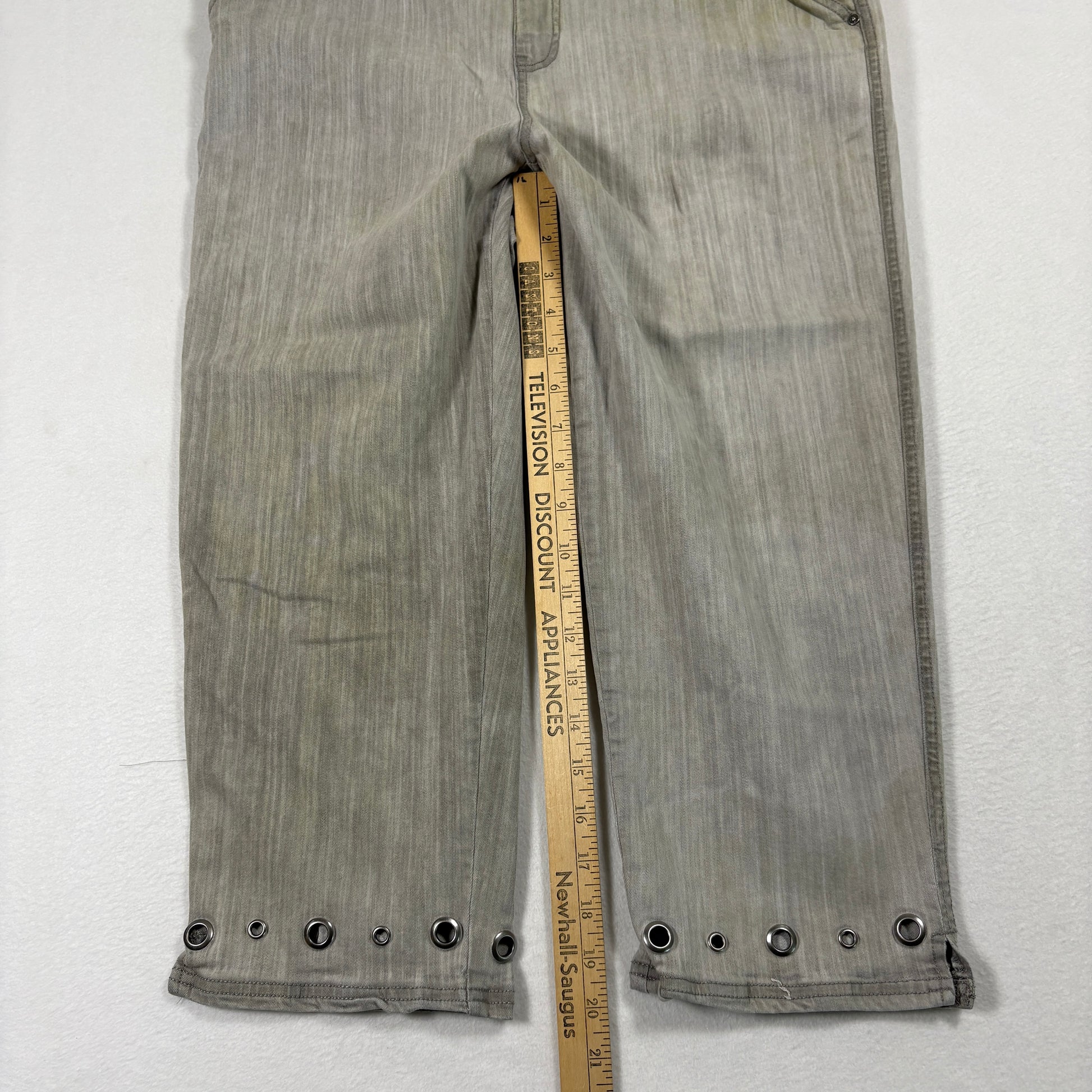 Love The Fit Womens Jeans 14 Gray Cropped Stretch Grommet Hem Y2K Vintage Capri