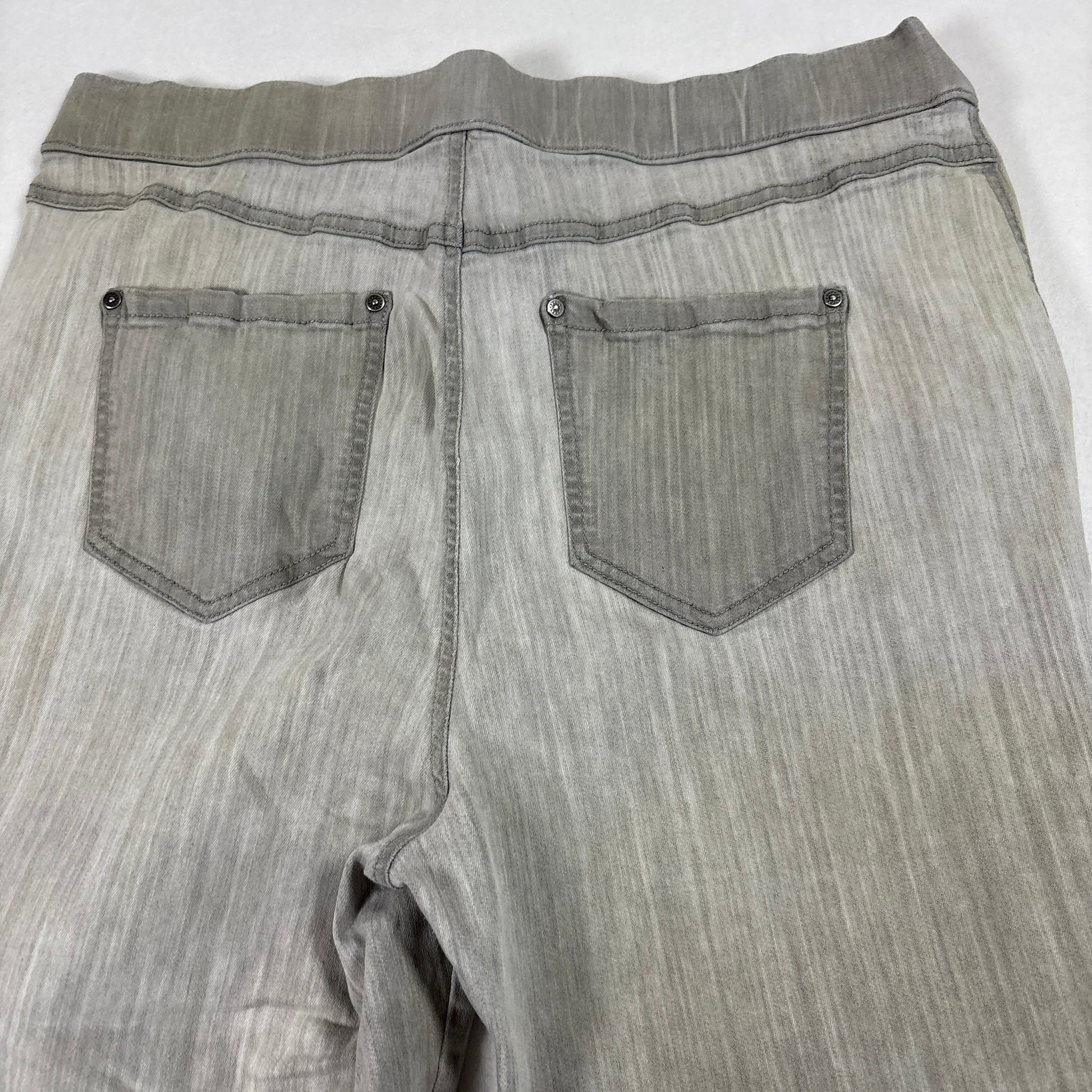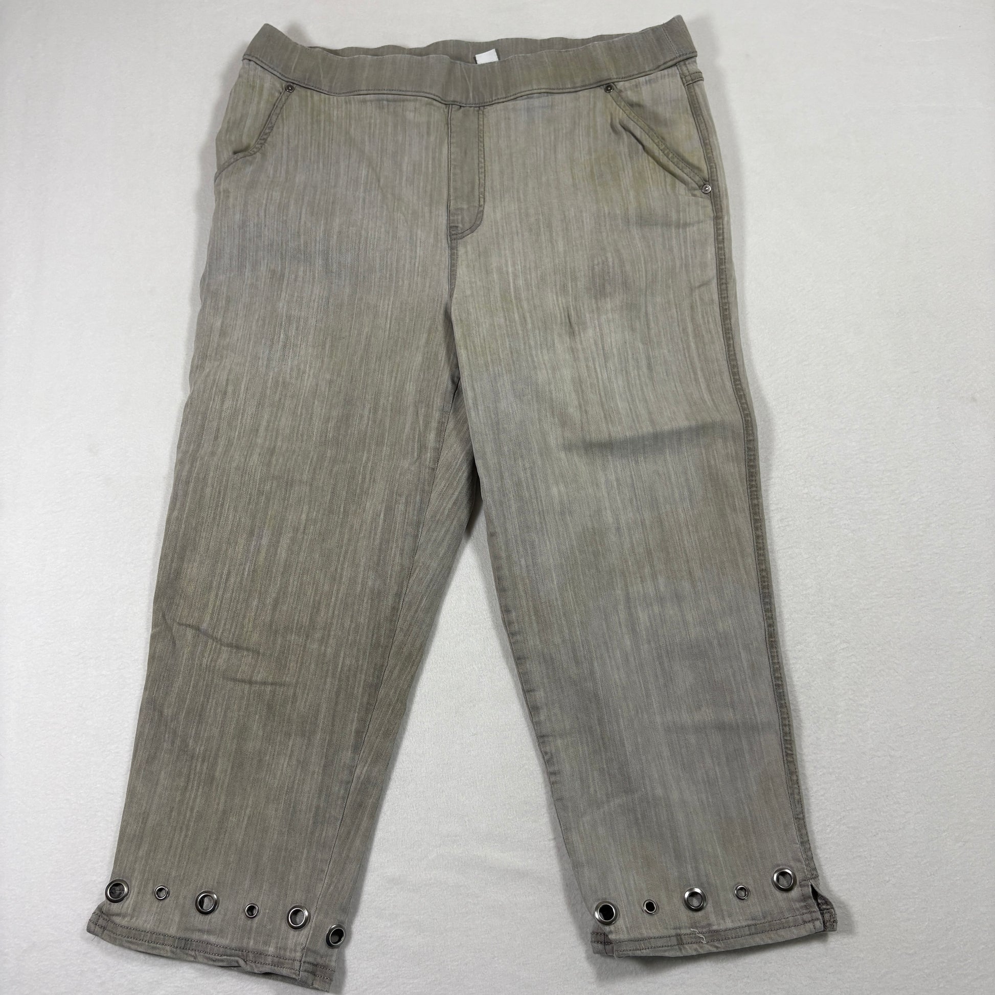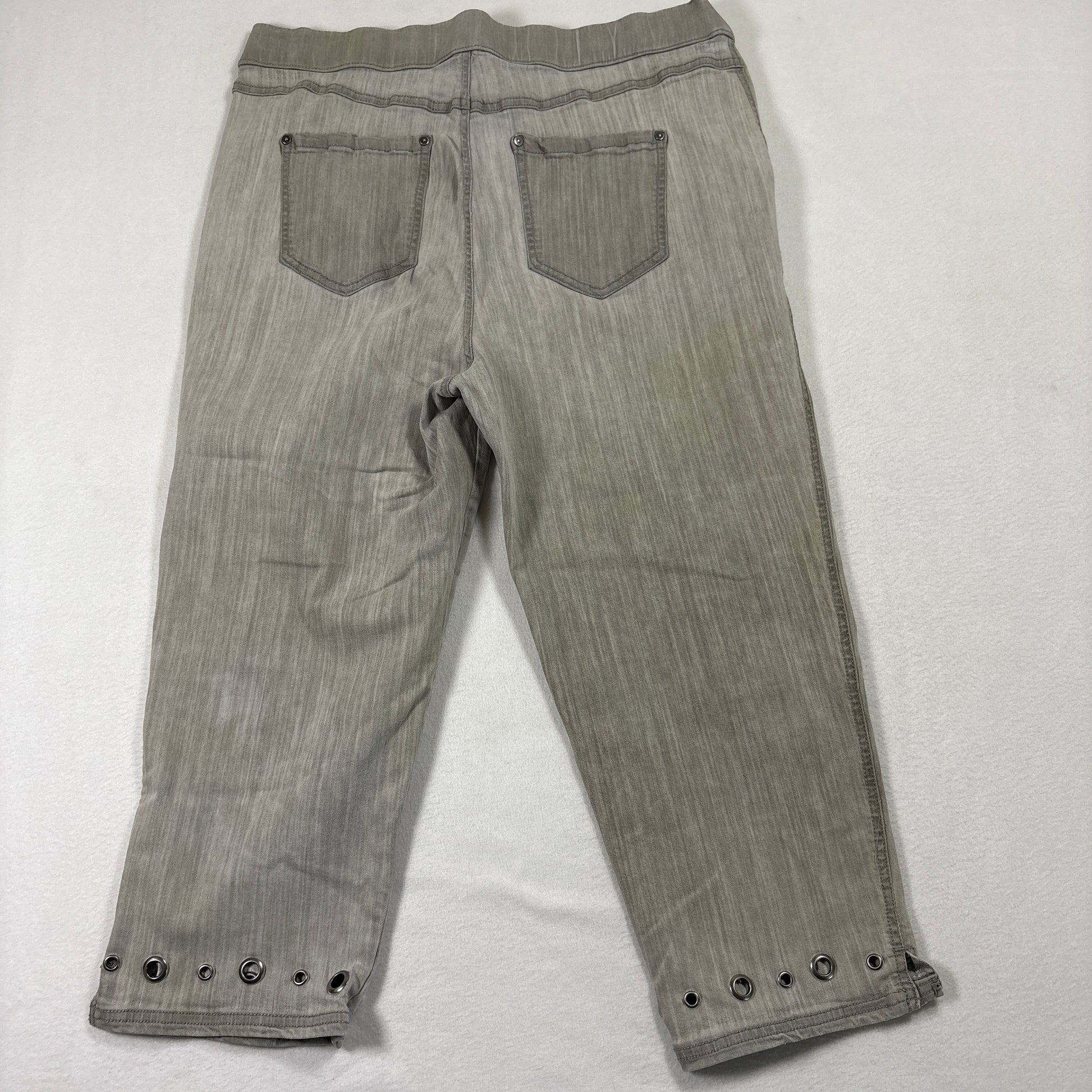 Love The Fit, womens jeans, size 14, gray denim, cropped capri, grommet hem, stretch, Y2K, vintage, casual, plus size, comfort fit